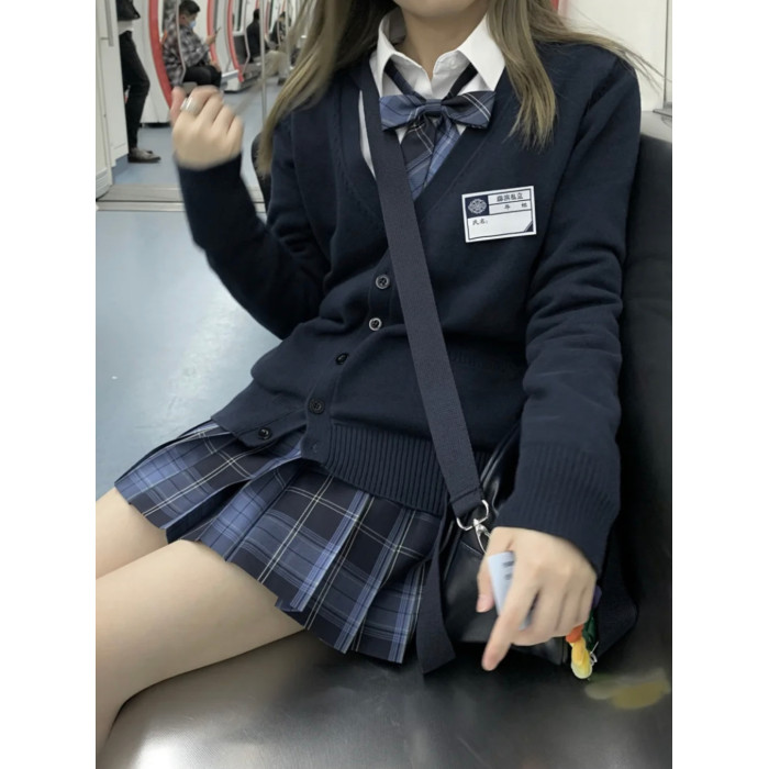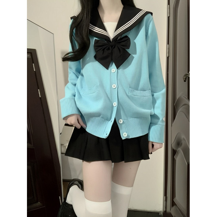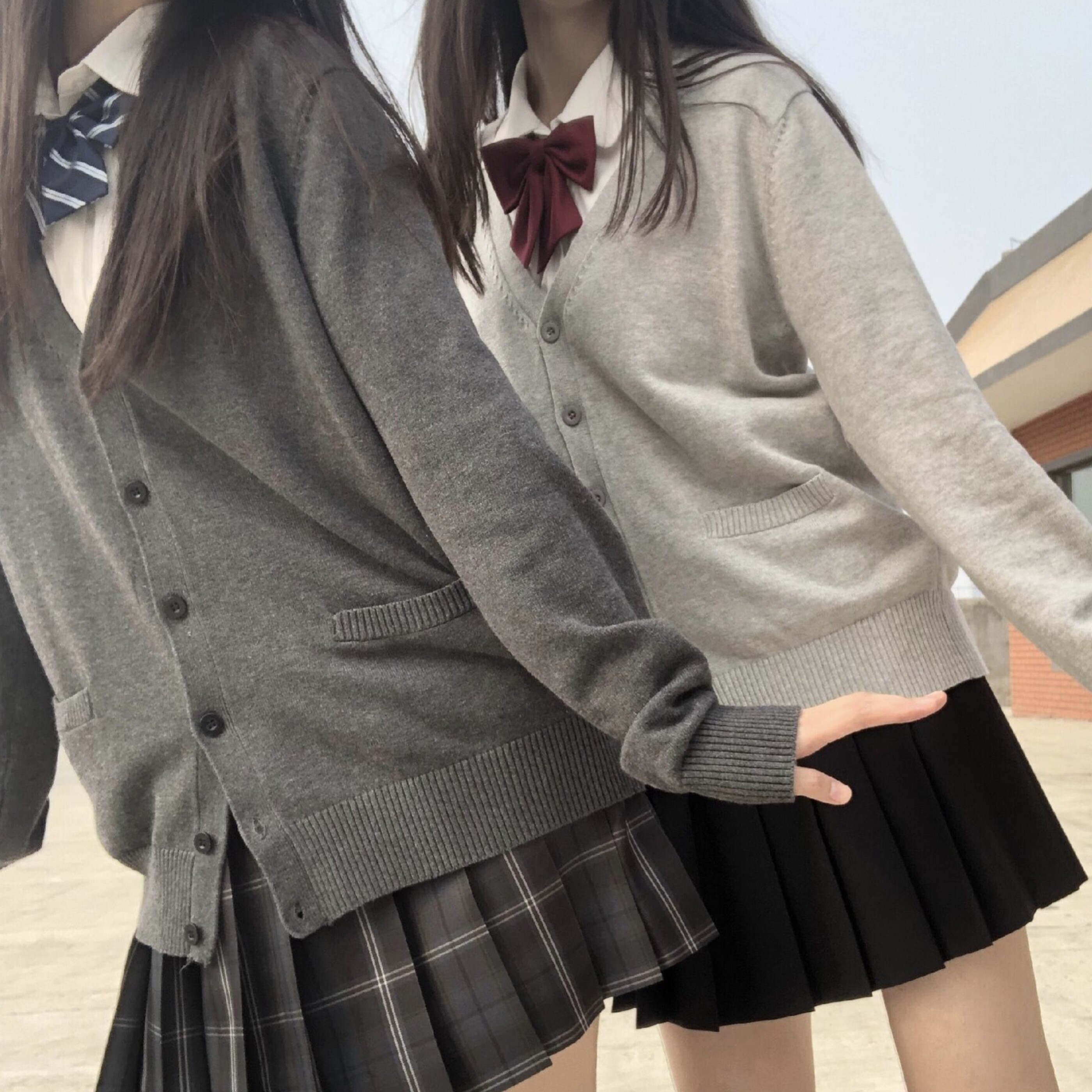 早秋日系原創JK製服毛衣學院風校供感針織開衫長袖寬松百搭外套女