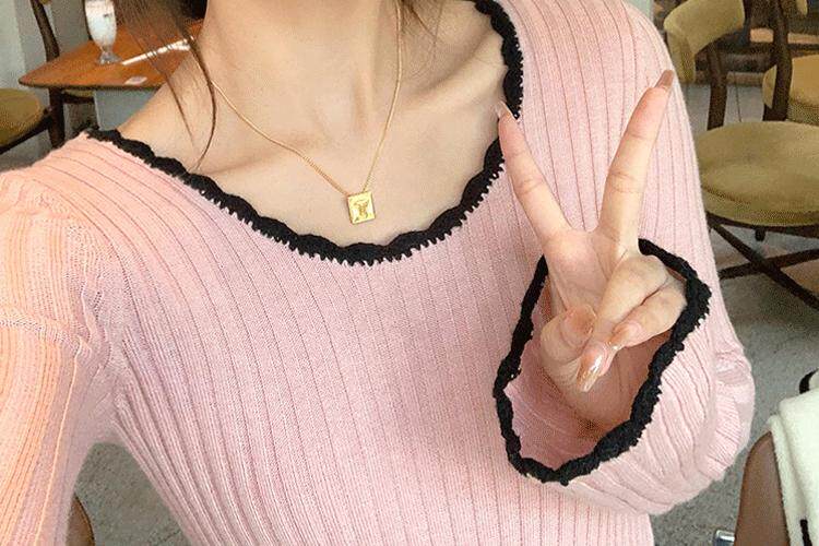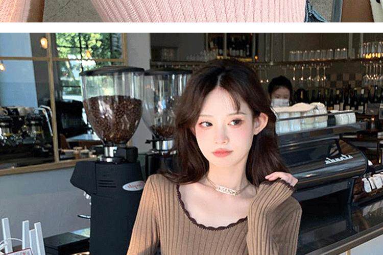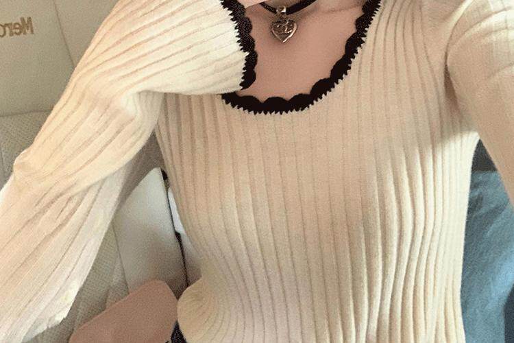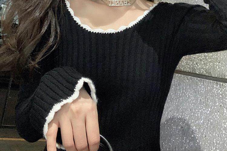 法式小香風喇叭袖木耳邊針織毛衣女秋冬高級感修身內搭打底衫上衣