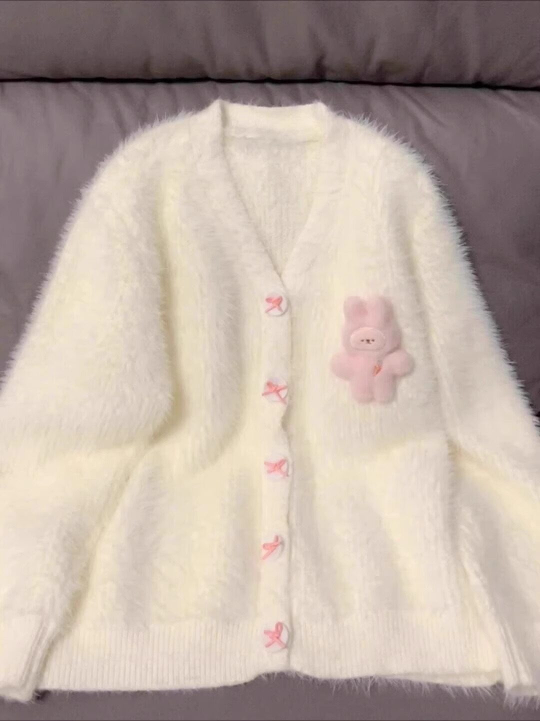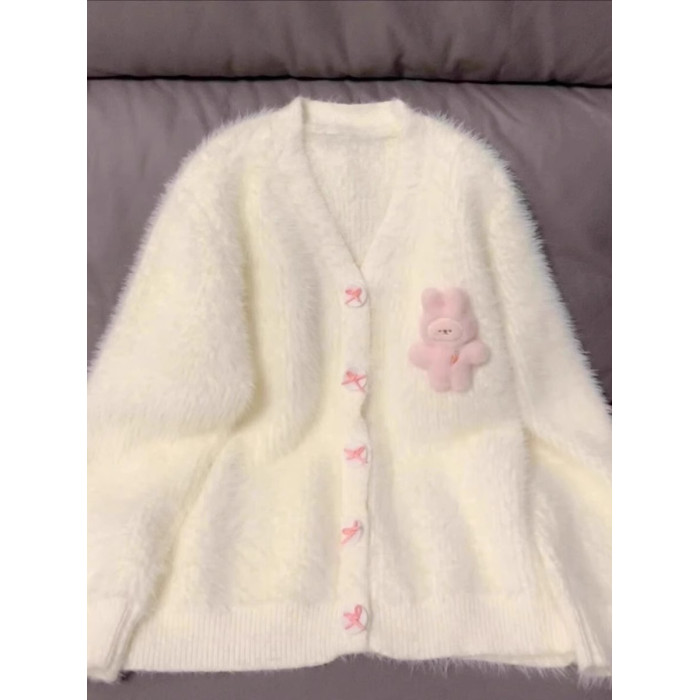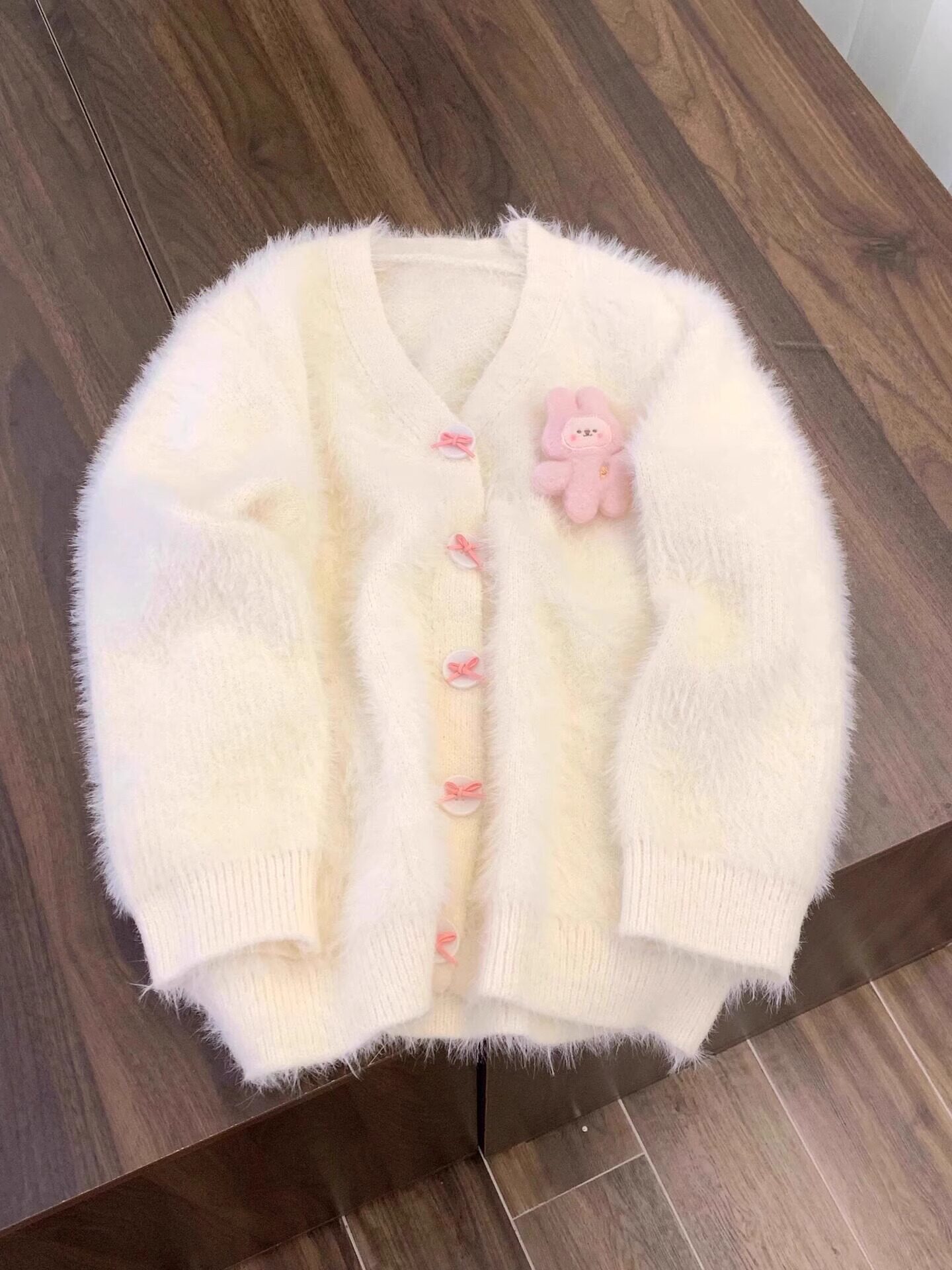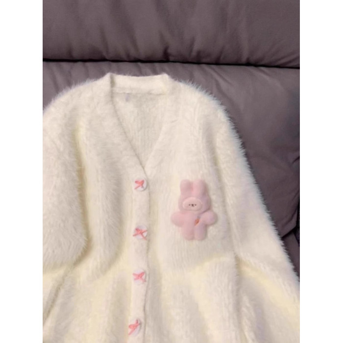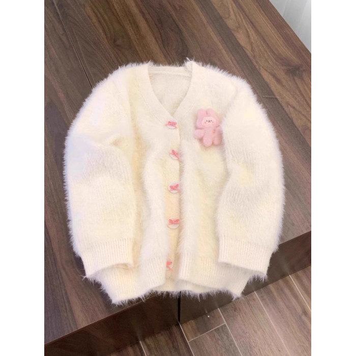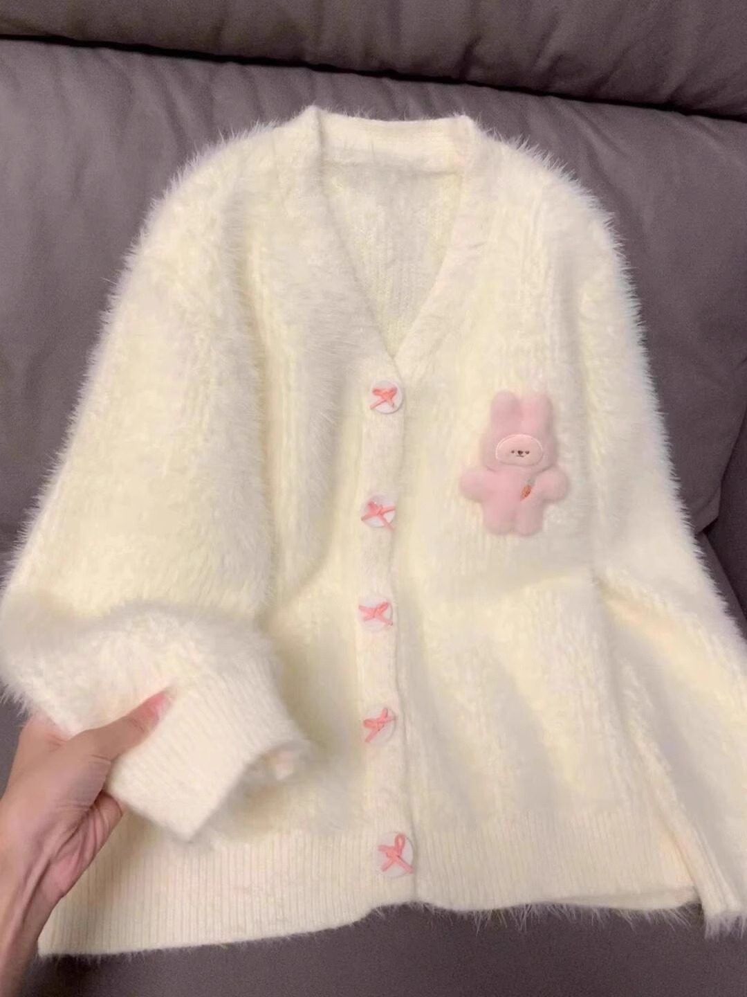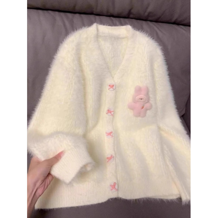 加厚版!慵懶甜美水貂絨毛衣開衫女2025秋裝新款韓版寬松針織上衣