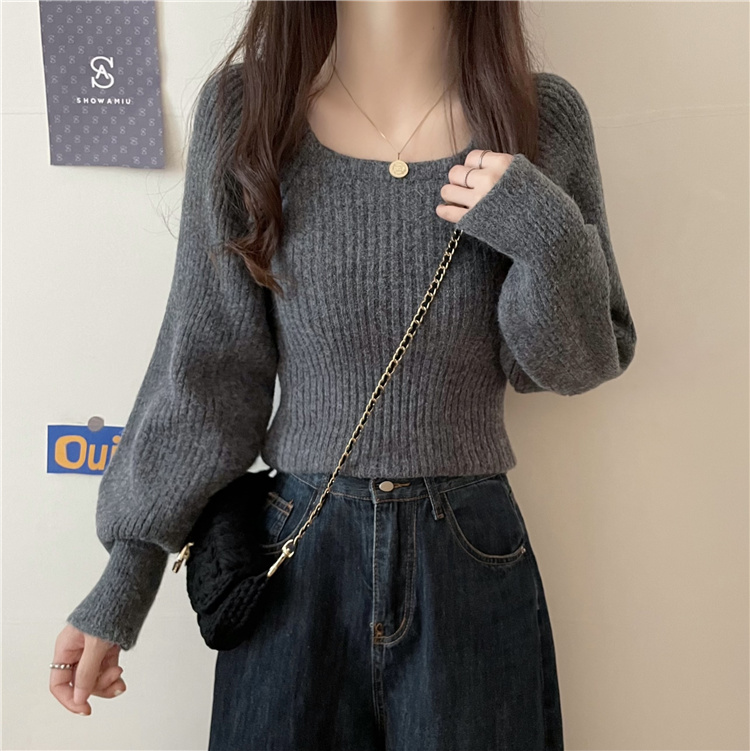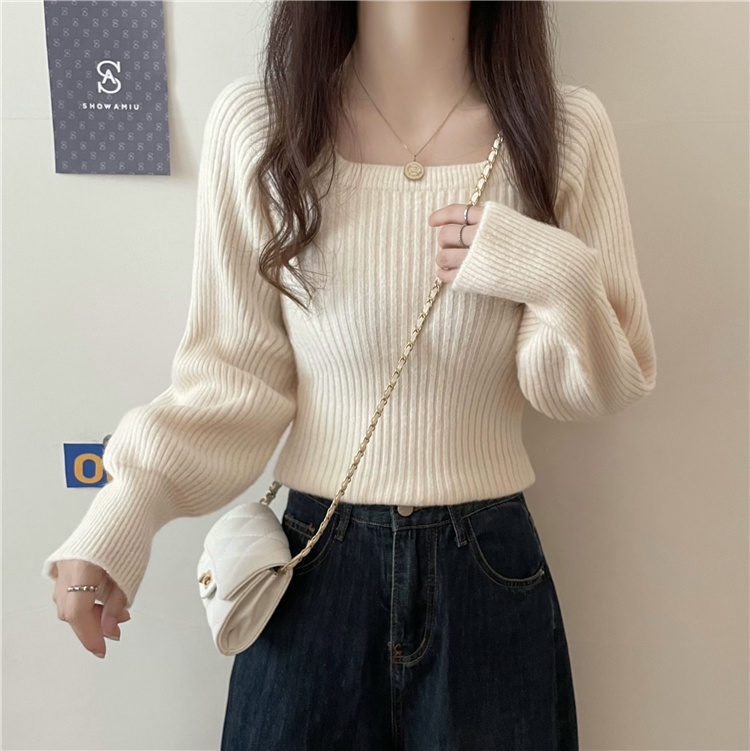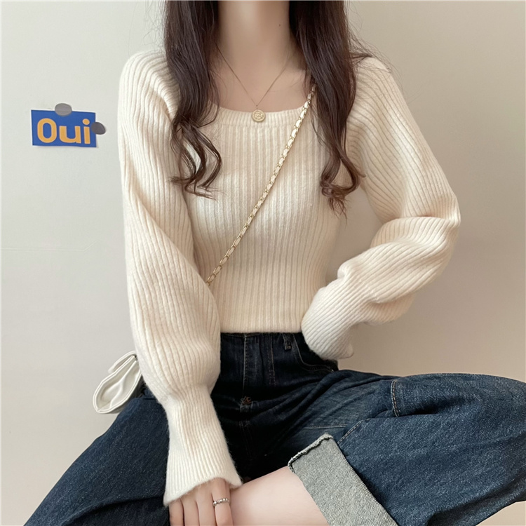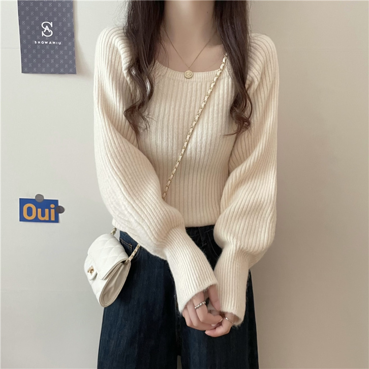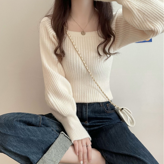 秋冬韓系溫柔慵懶設計感長袖針織衫女寬松顯瘦百搭套頭毛衣打底衫
