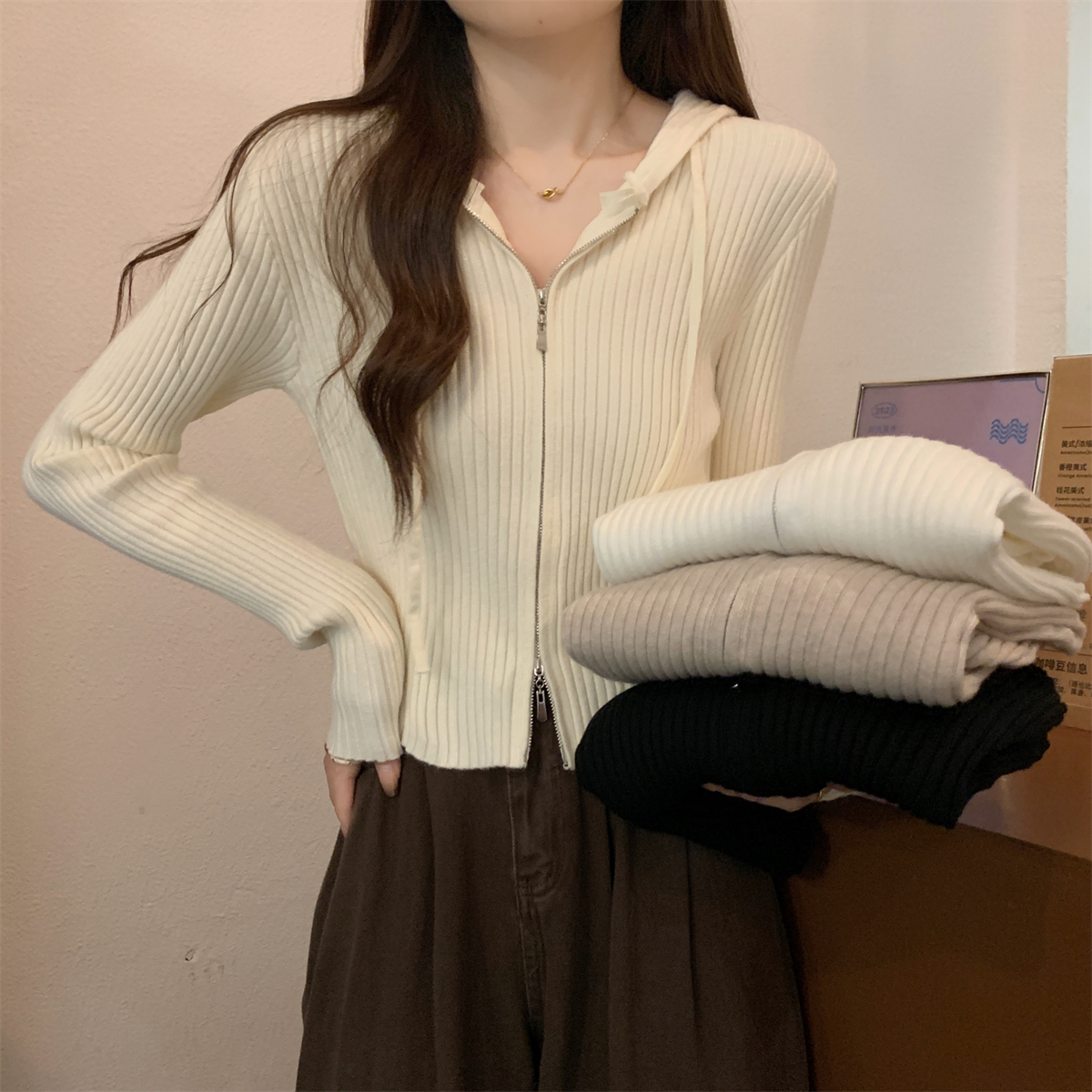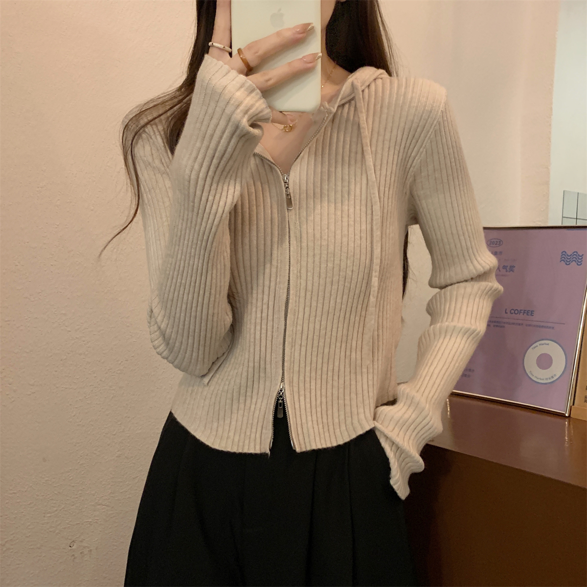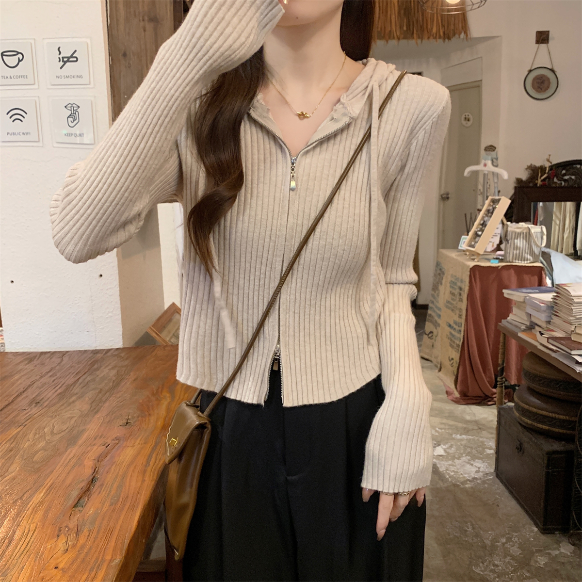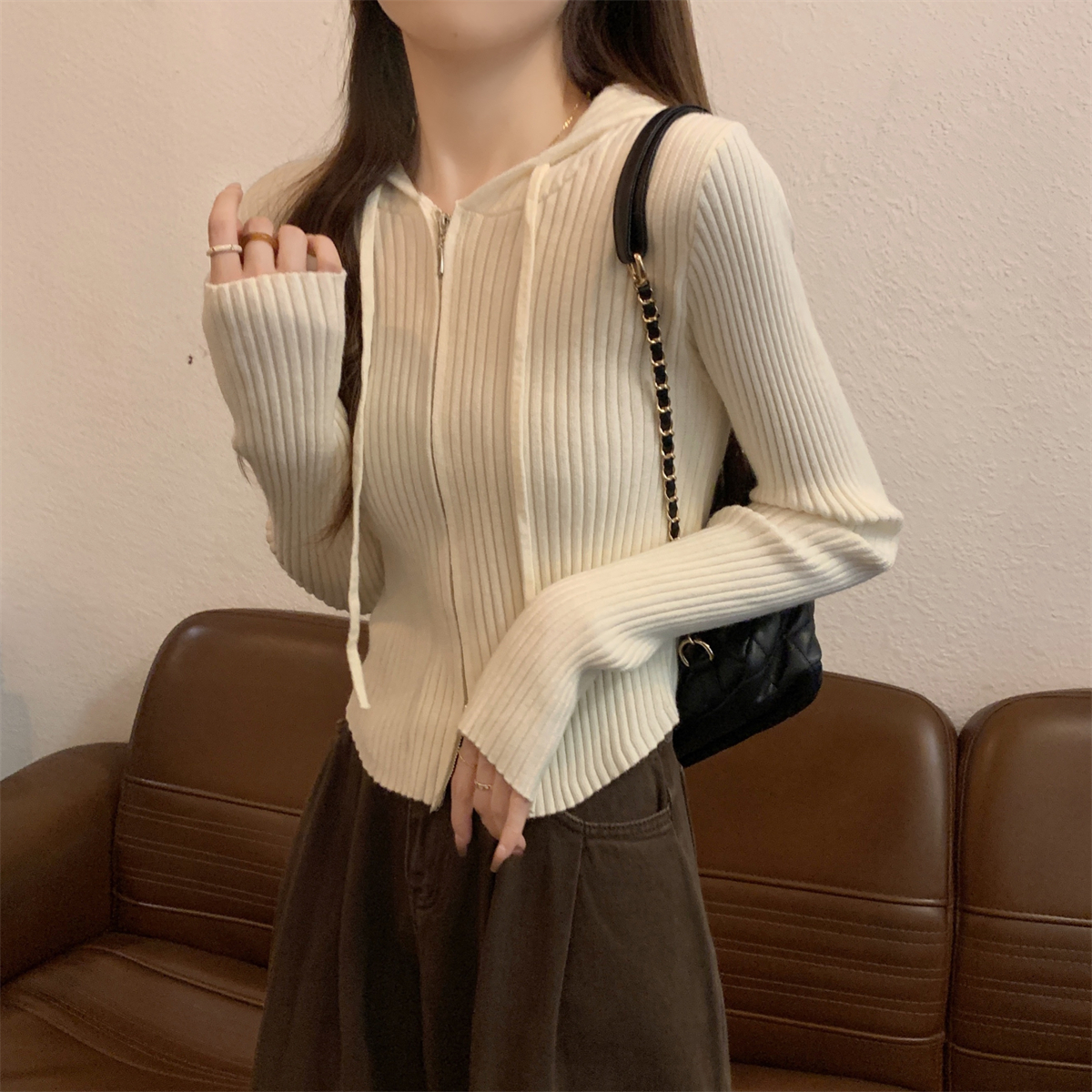 2025秋裝新款韓系早秋氛圍感穿搭毛衣秋季連帽針織開衫初秋上衣