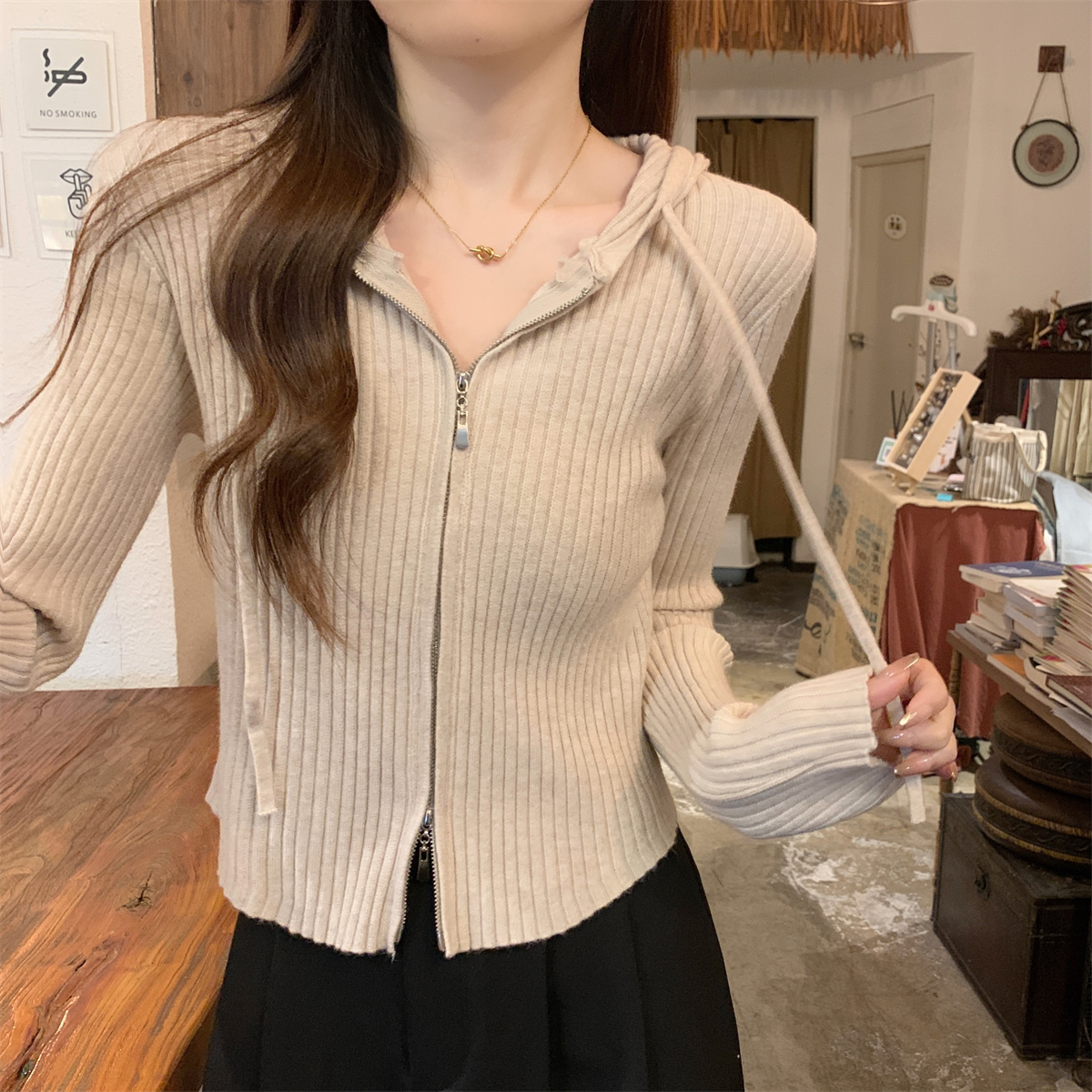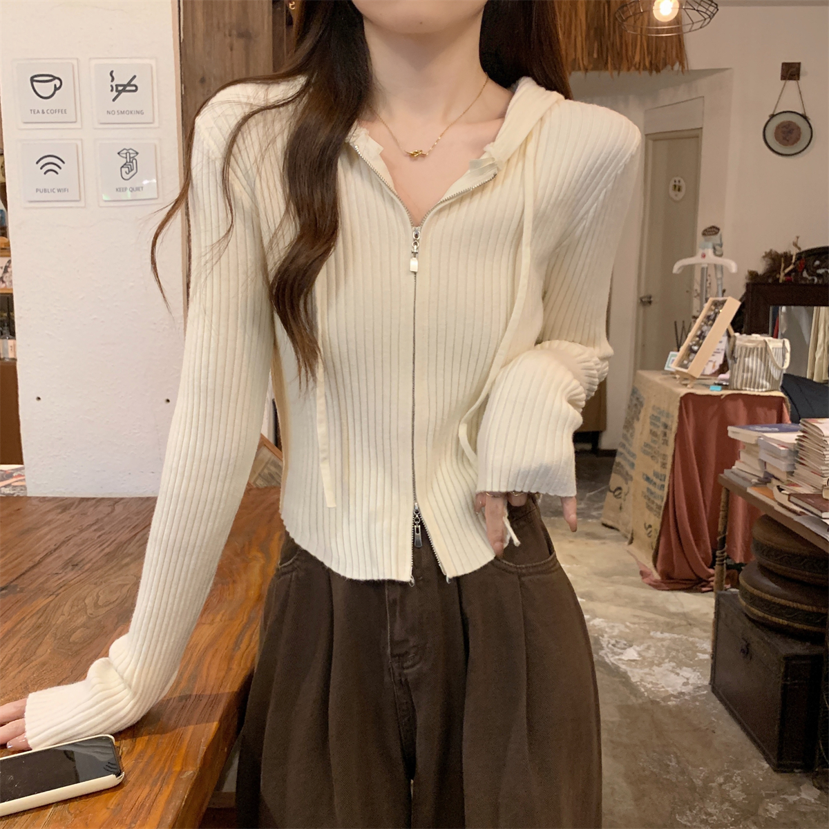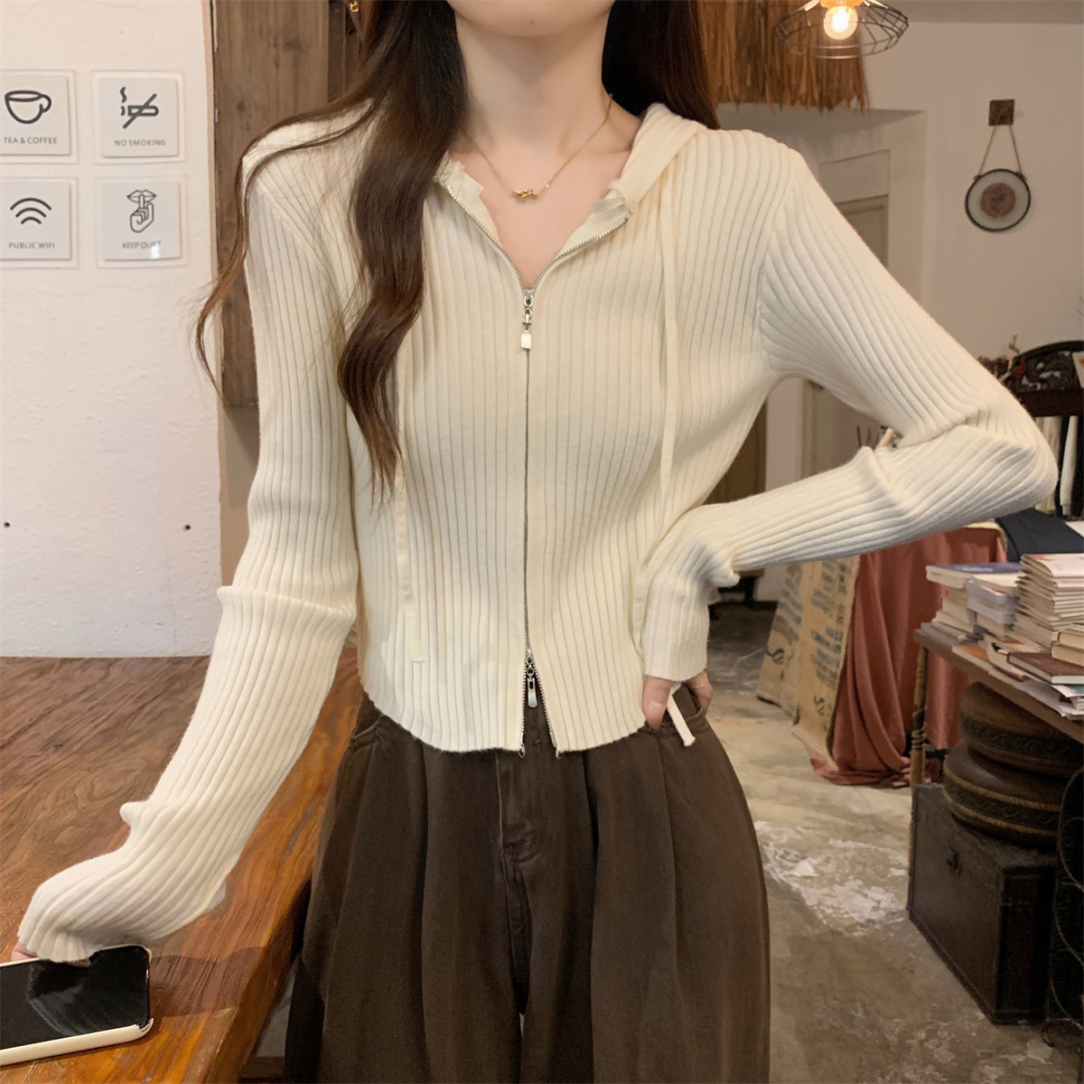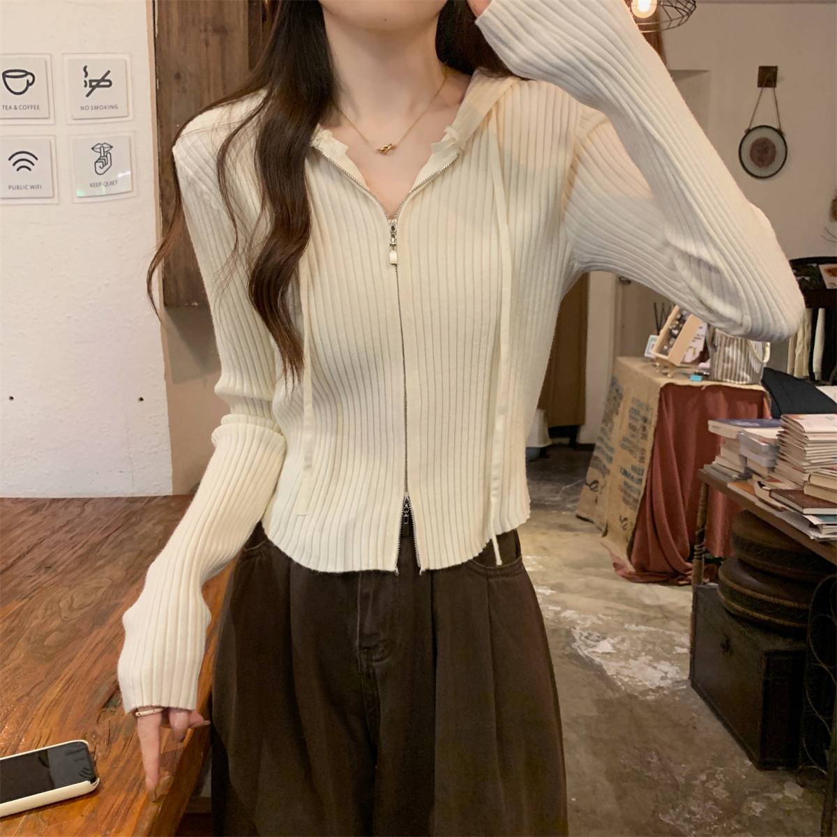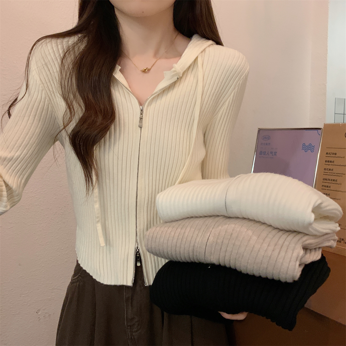 2025秋裝新款韓系早秋氛圍感穿搭毛衣秋季連帽針織開衫初秋上衣
