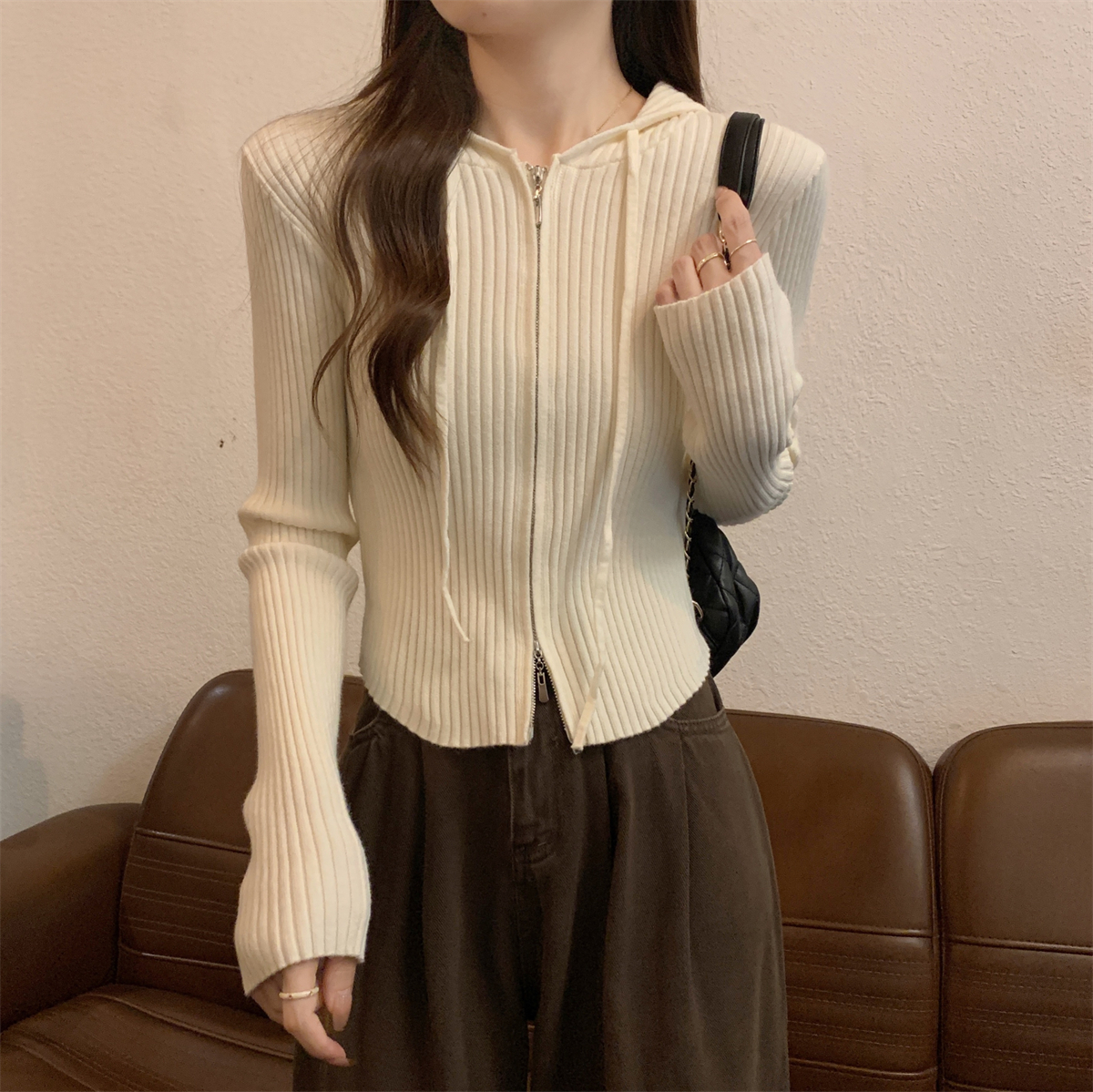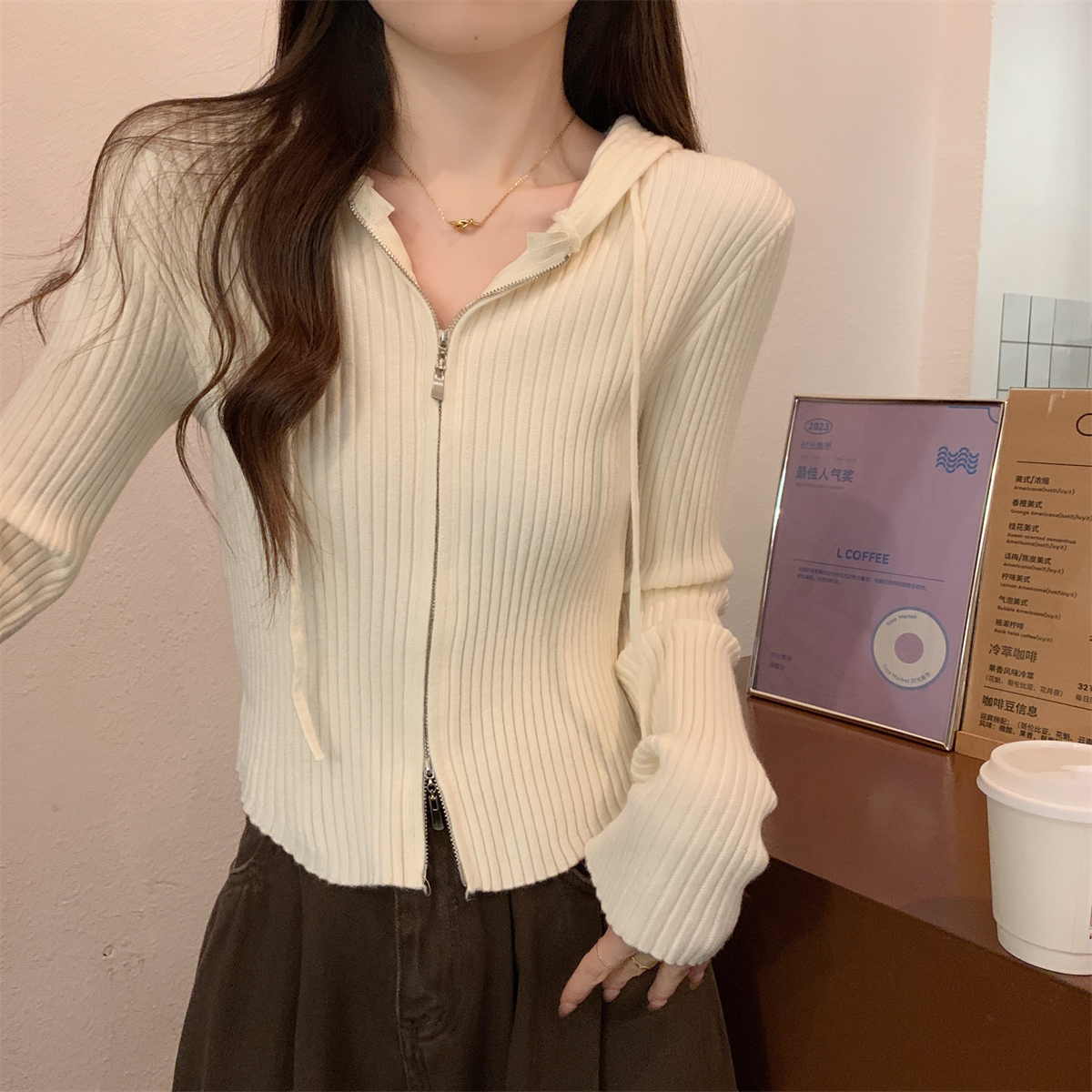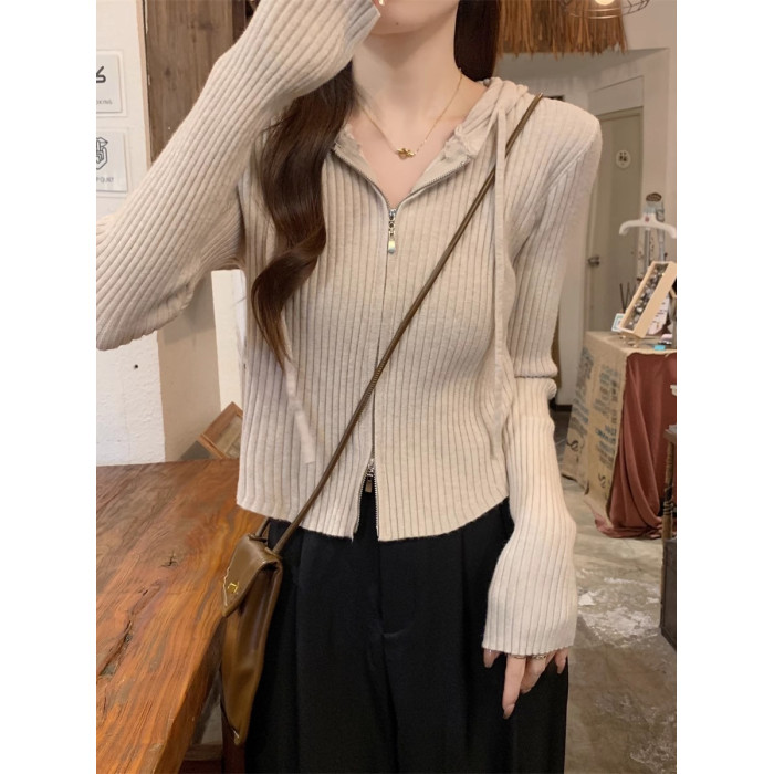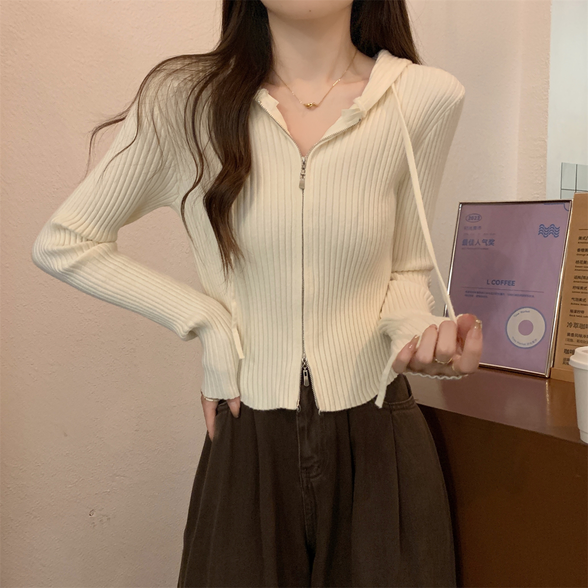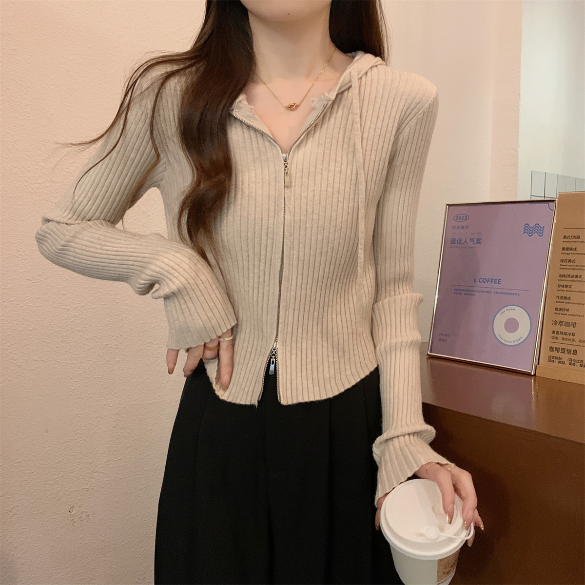 2025秋裝新款韓系早秋氛圍感穿搭毛衣秋季連帽針織開衫初秋上衣