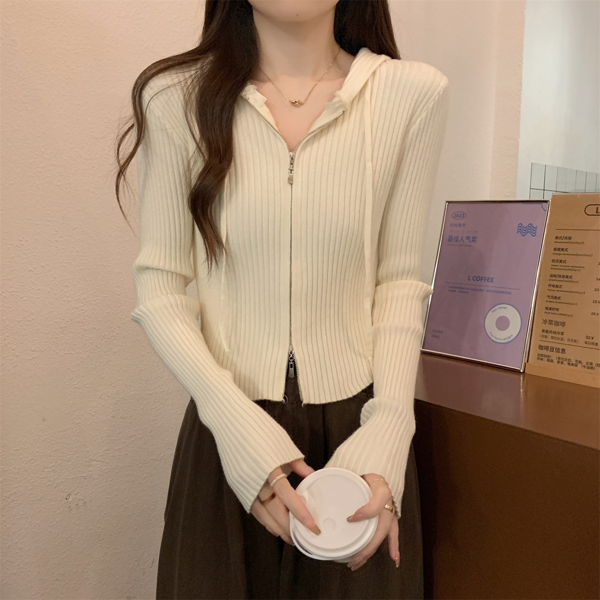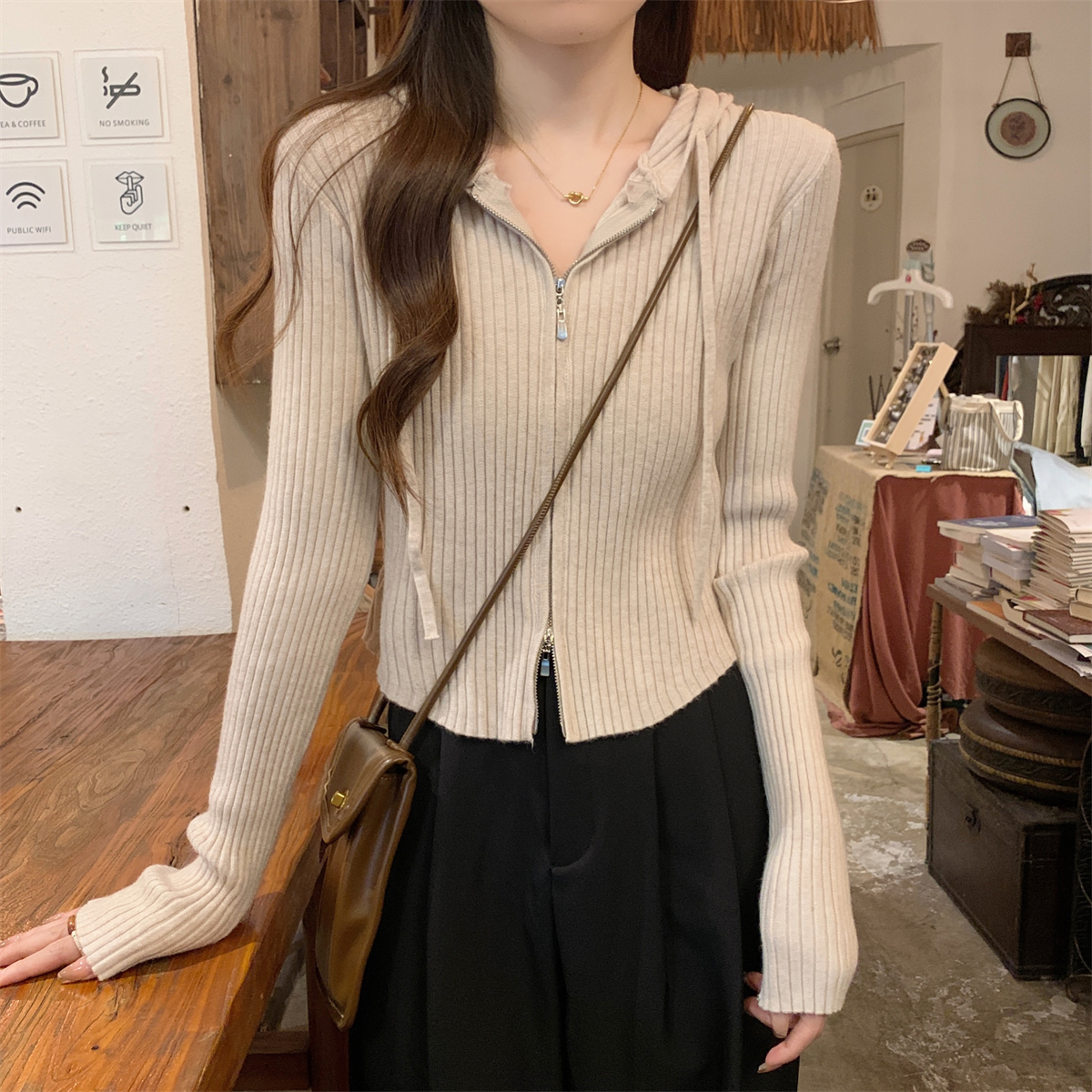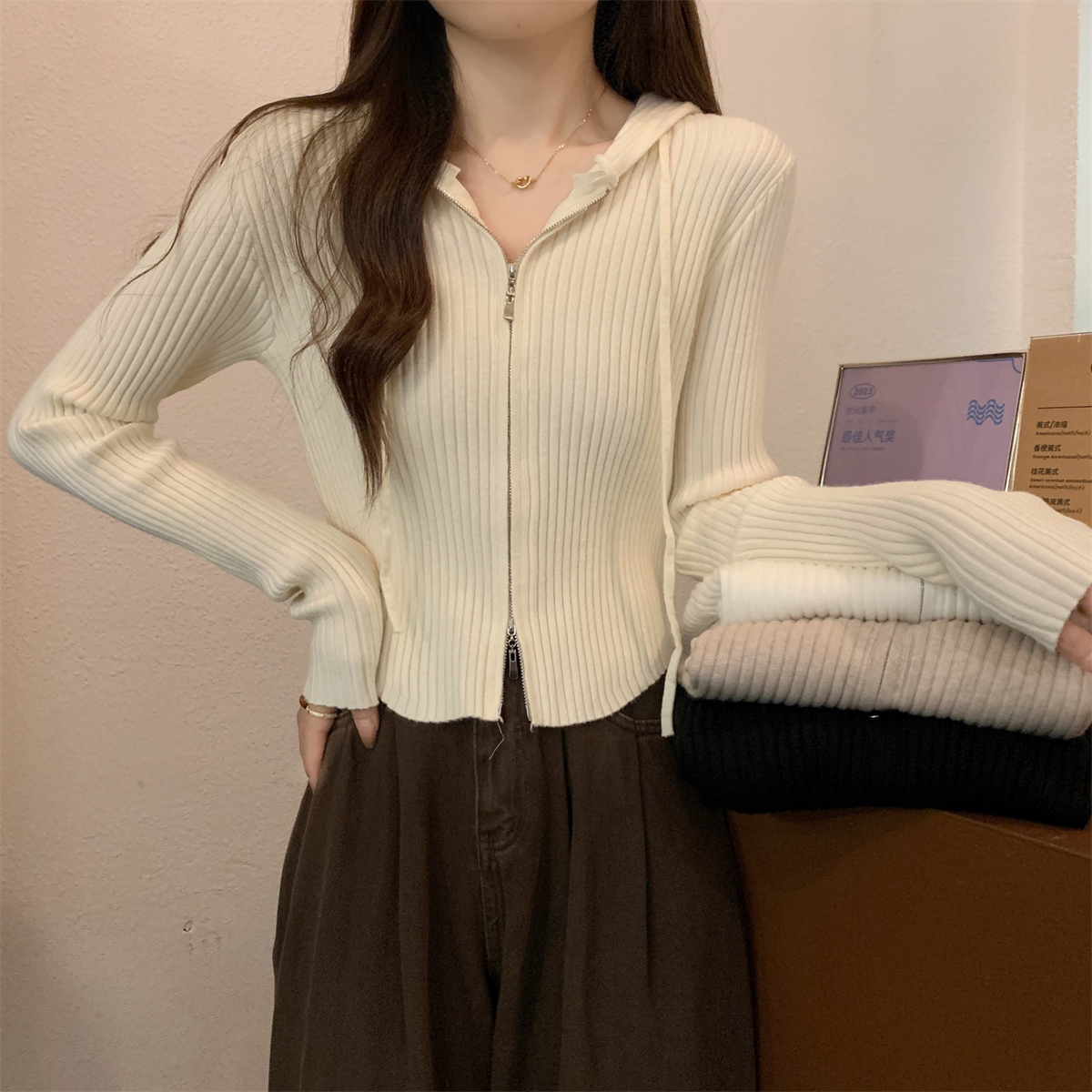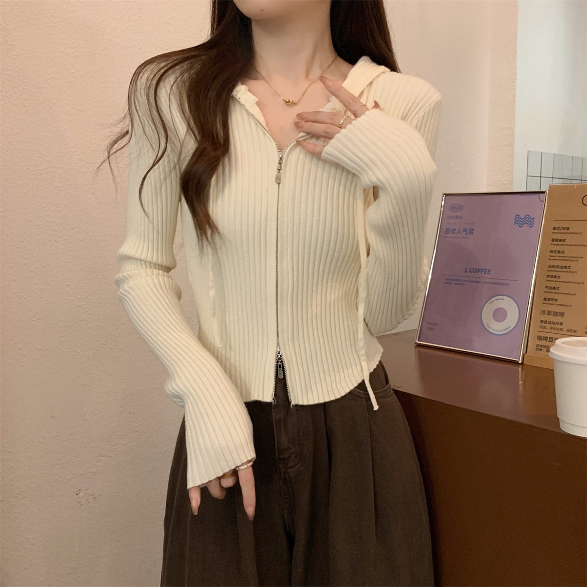 2025秋裝新款韓系早秋氛圍感穿搭毛衣秋季連帽針織開衫初秋上衣
