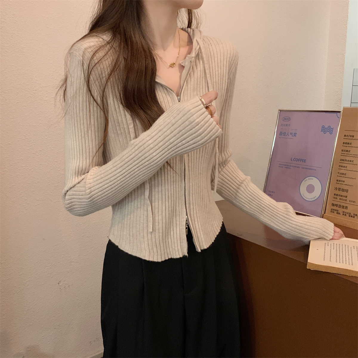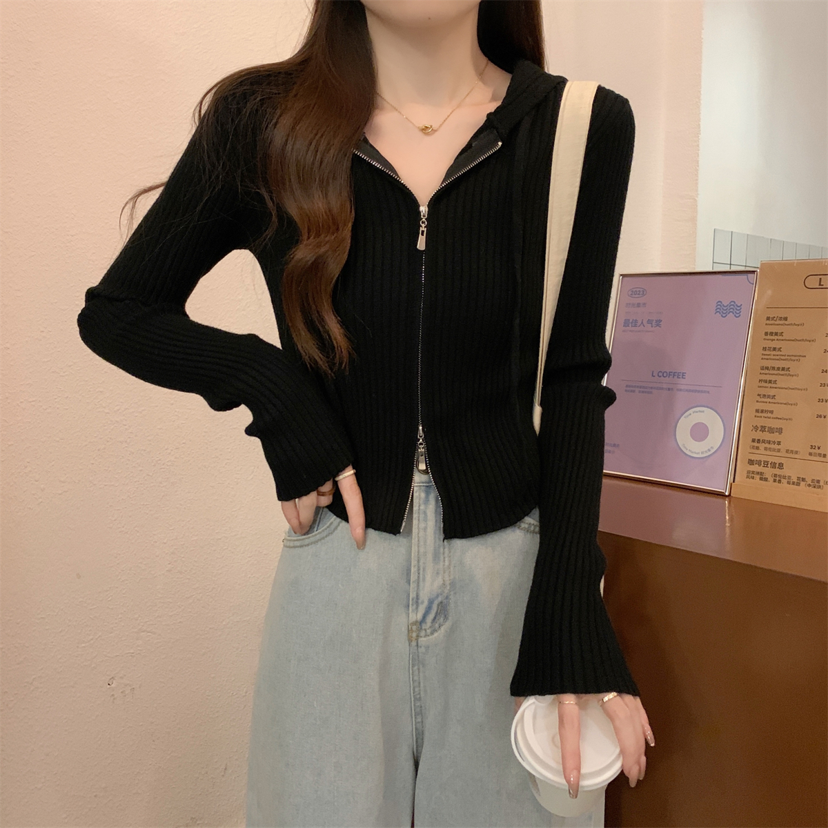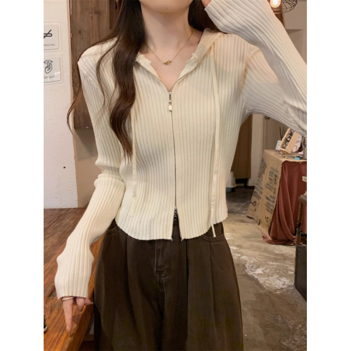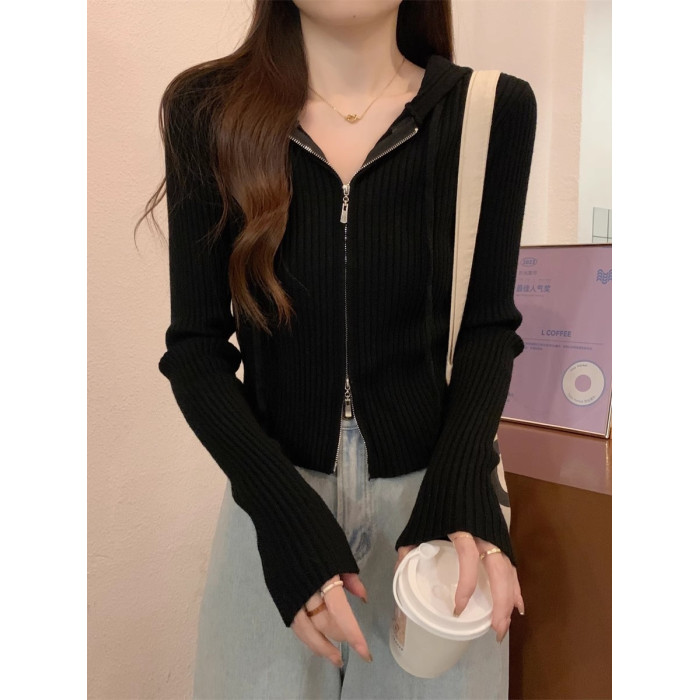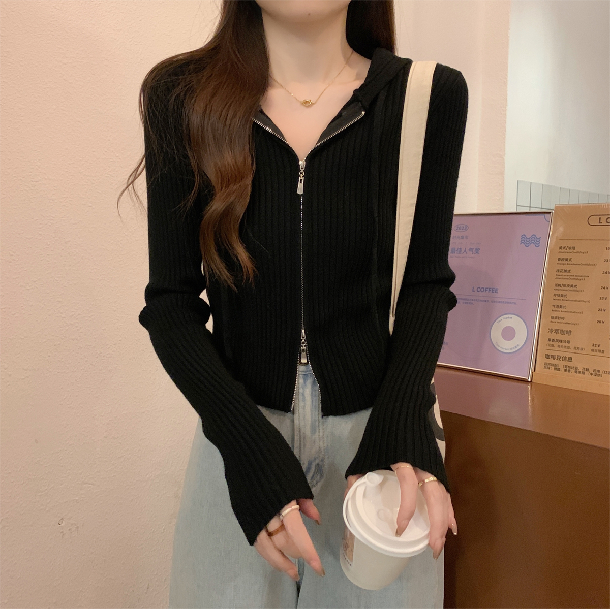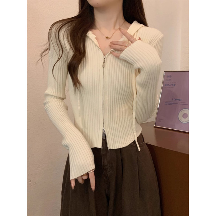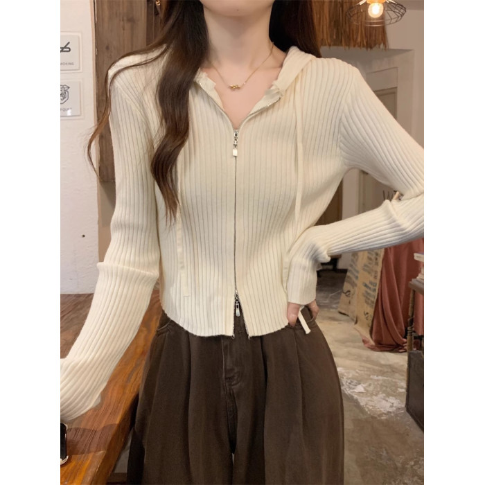 2025秋裝新款韓系早秋氛圍感穿搭毛衣秋季連帽針織開衫初秋上衣