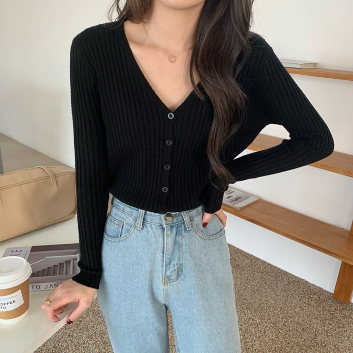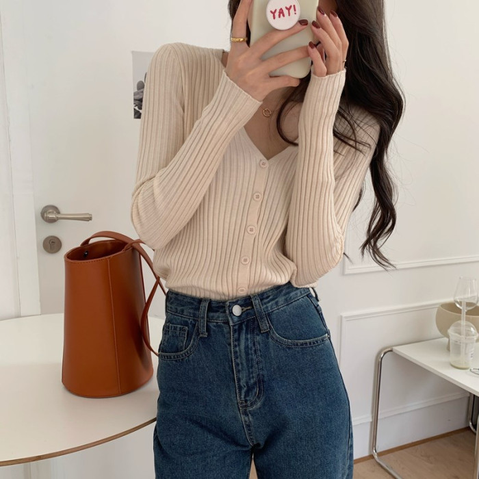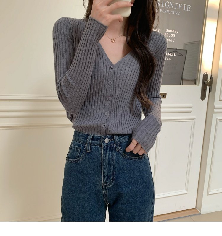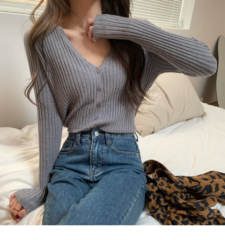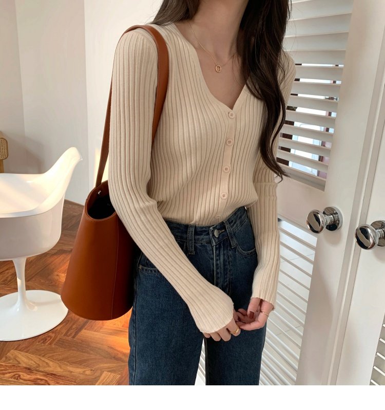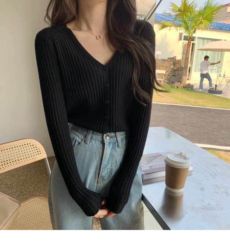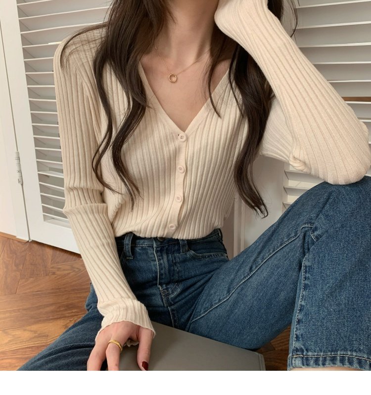 V領長袖針織開衫女秋冬裝法式寬松慵懶風百搭設計感小衆毛衣ins潮