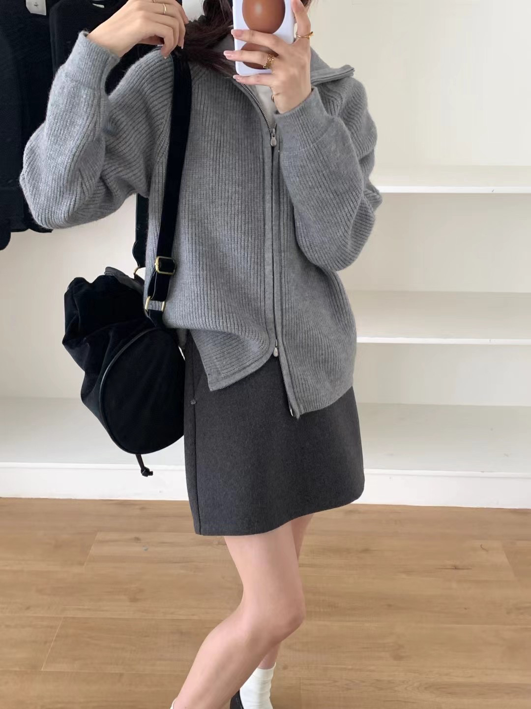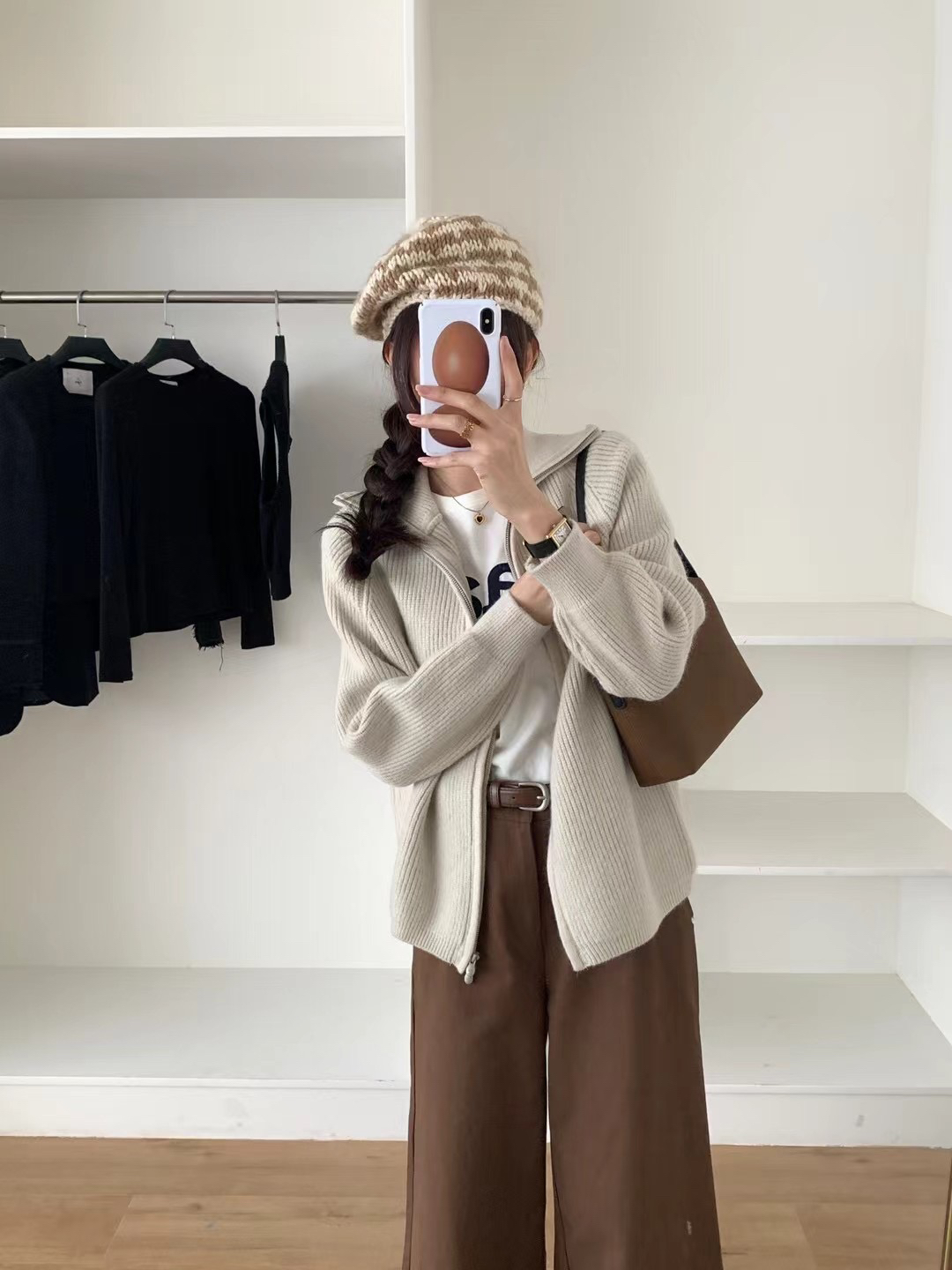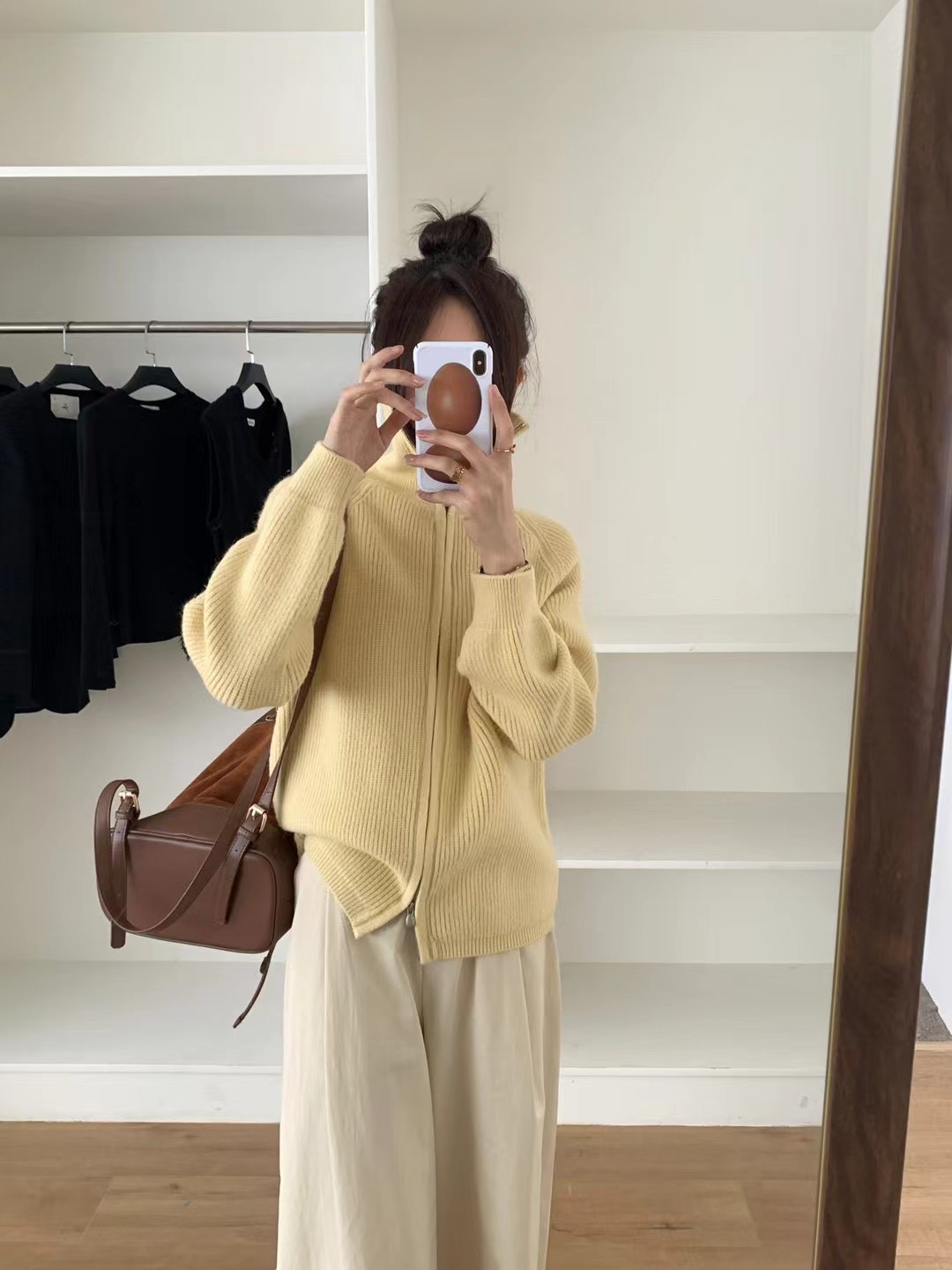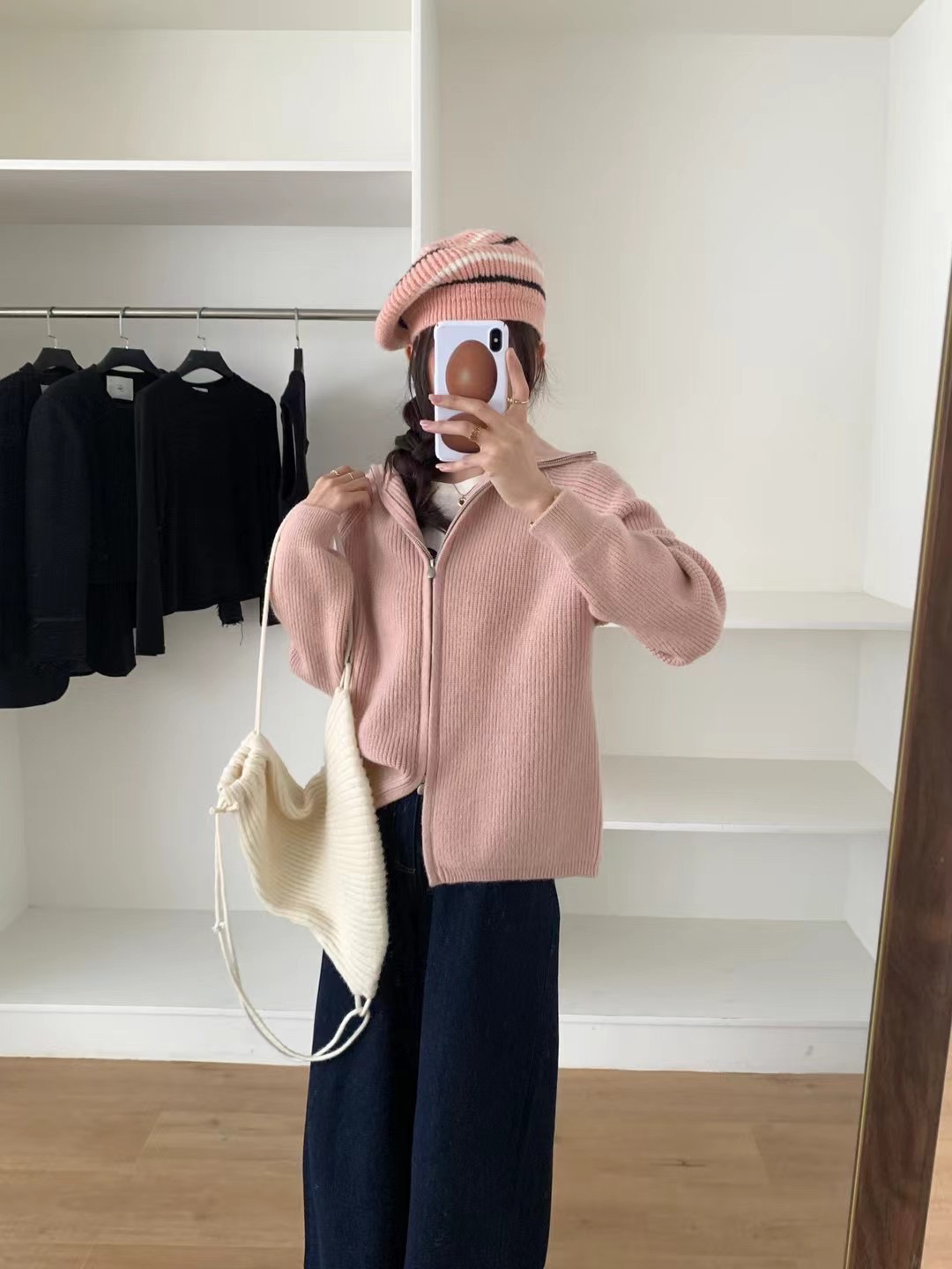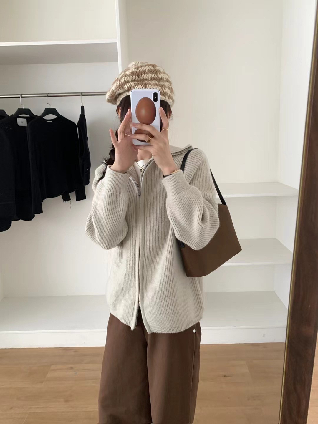 韓國東大門egg雞蛋 檔口店 零售 雙拉鍊翻領外套厚實針織毛衣外穿