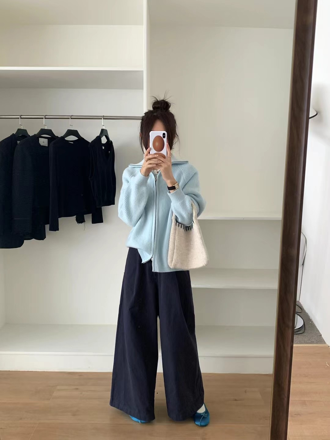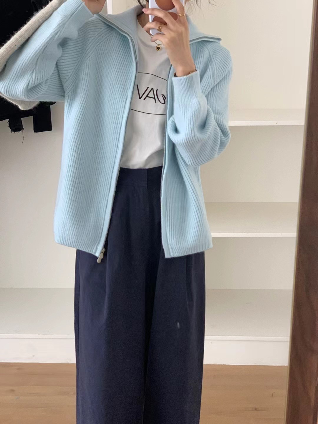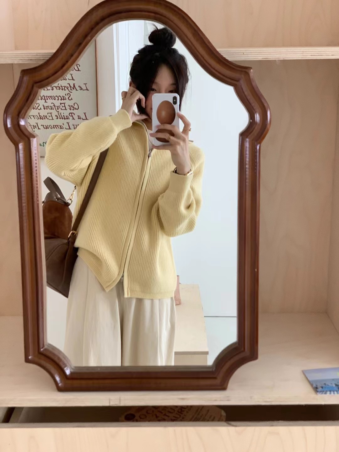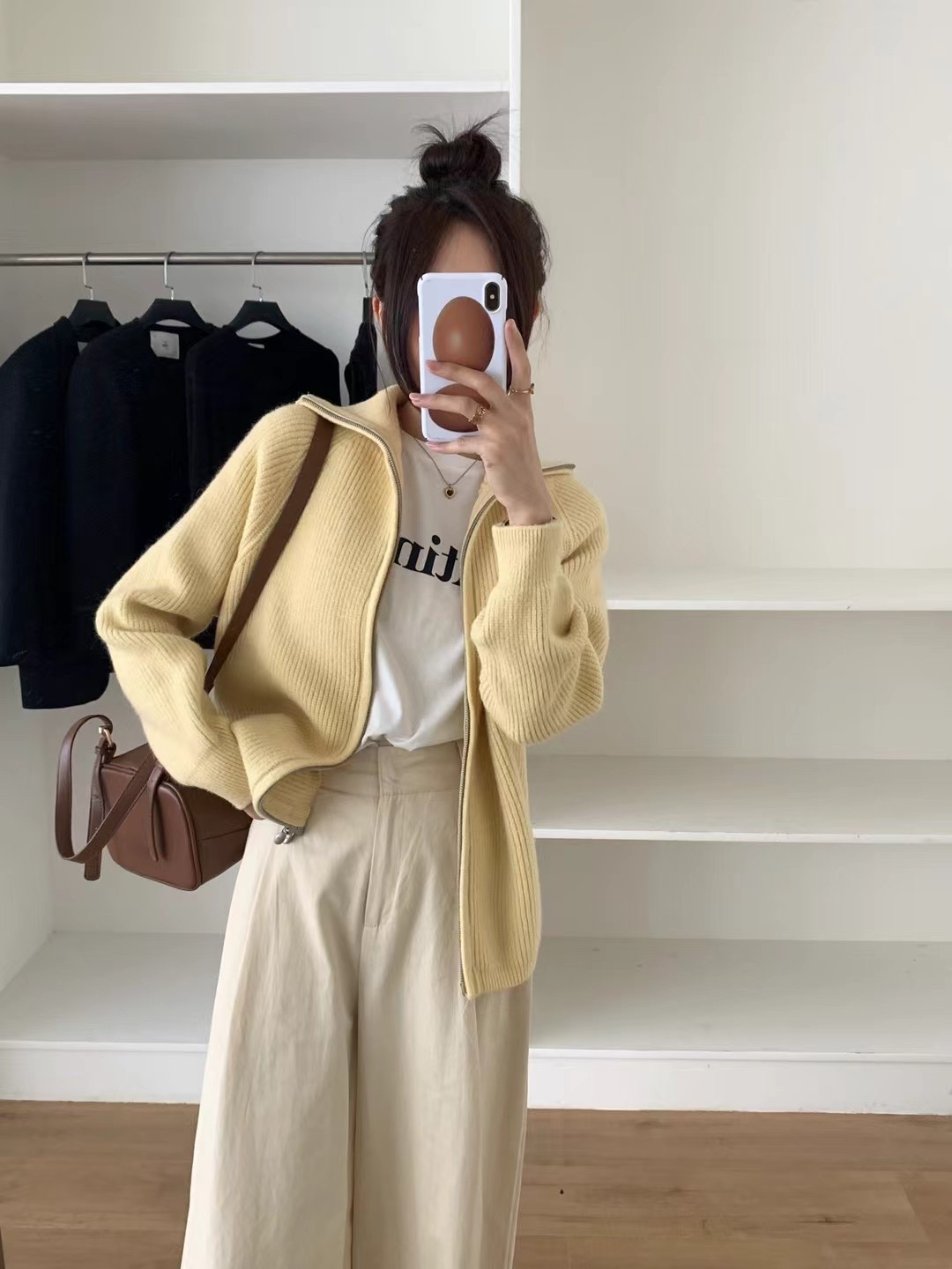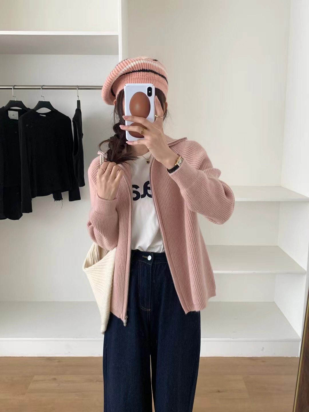 韓國東大門egg雞蛋 檔口店 零售 雙拉鍊翻領外套厚實針織毛衣外穿