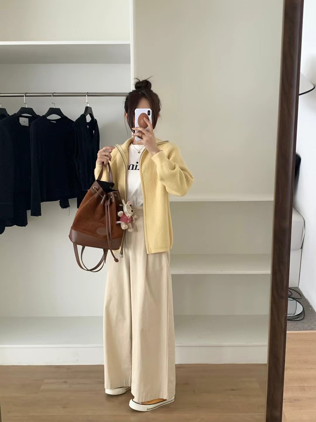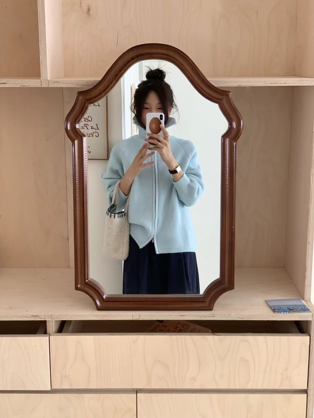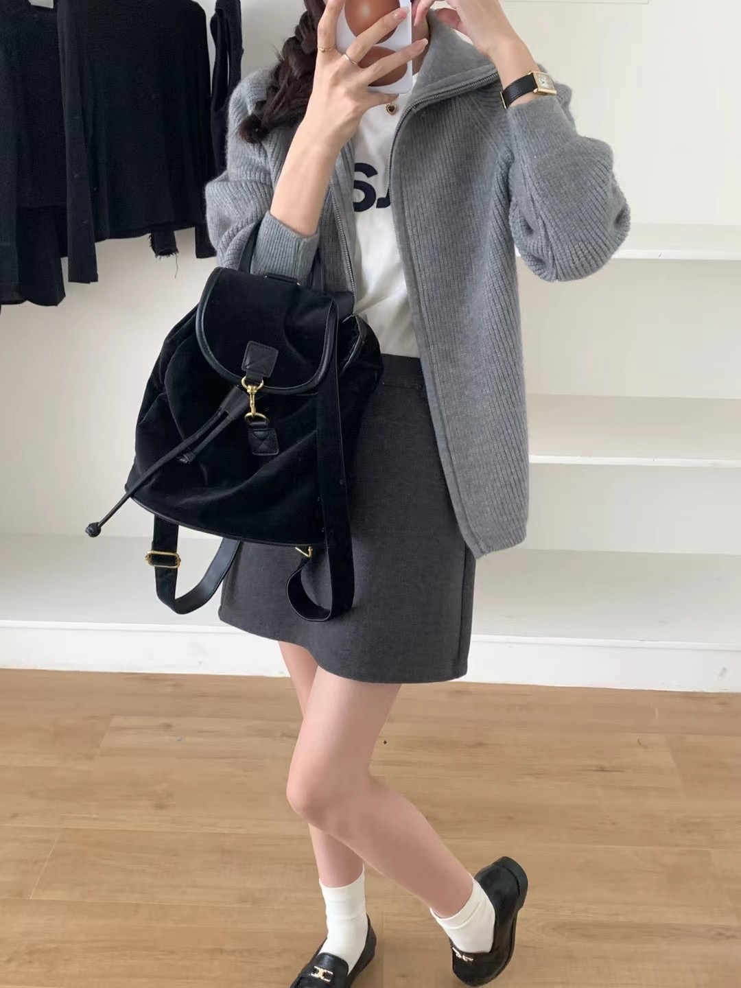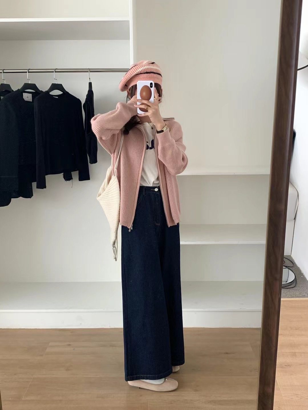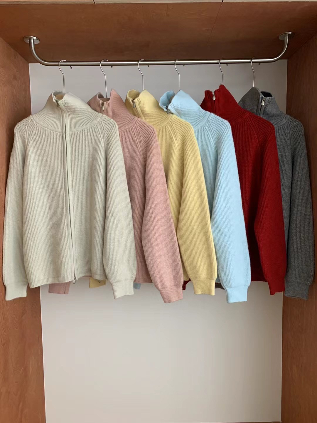韓國東大門egg雞蛋 檔口店 零售 雙拉鍊翻領外套厚實針織毛衣外穿