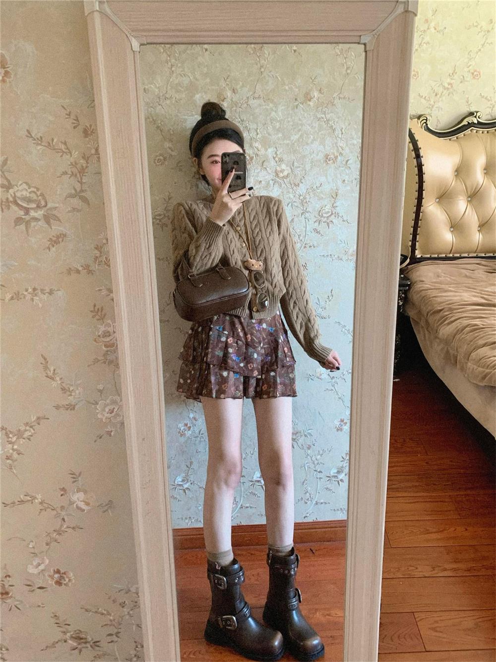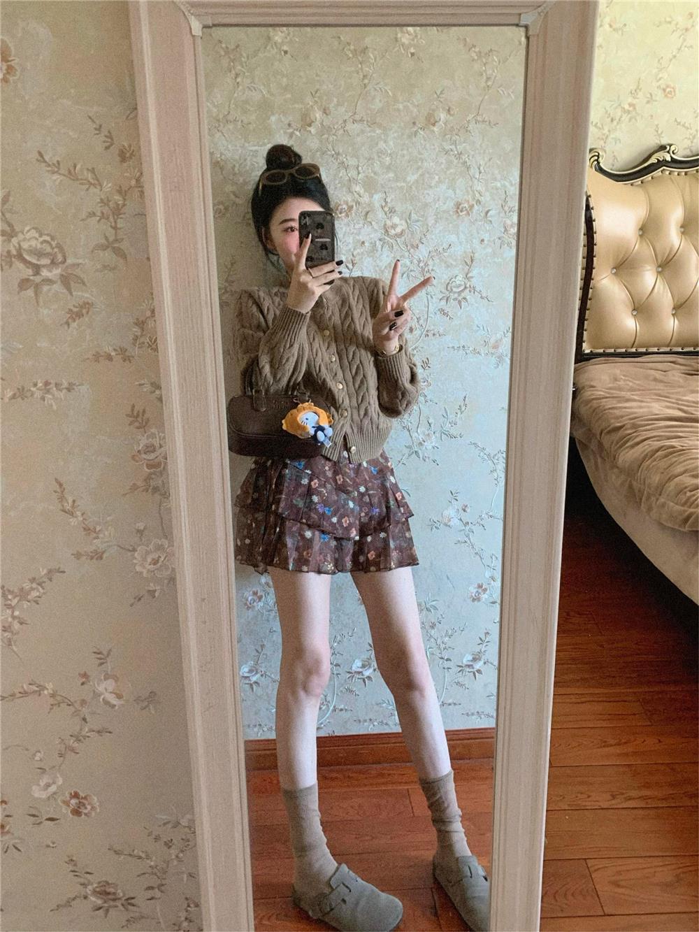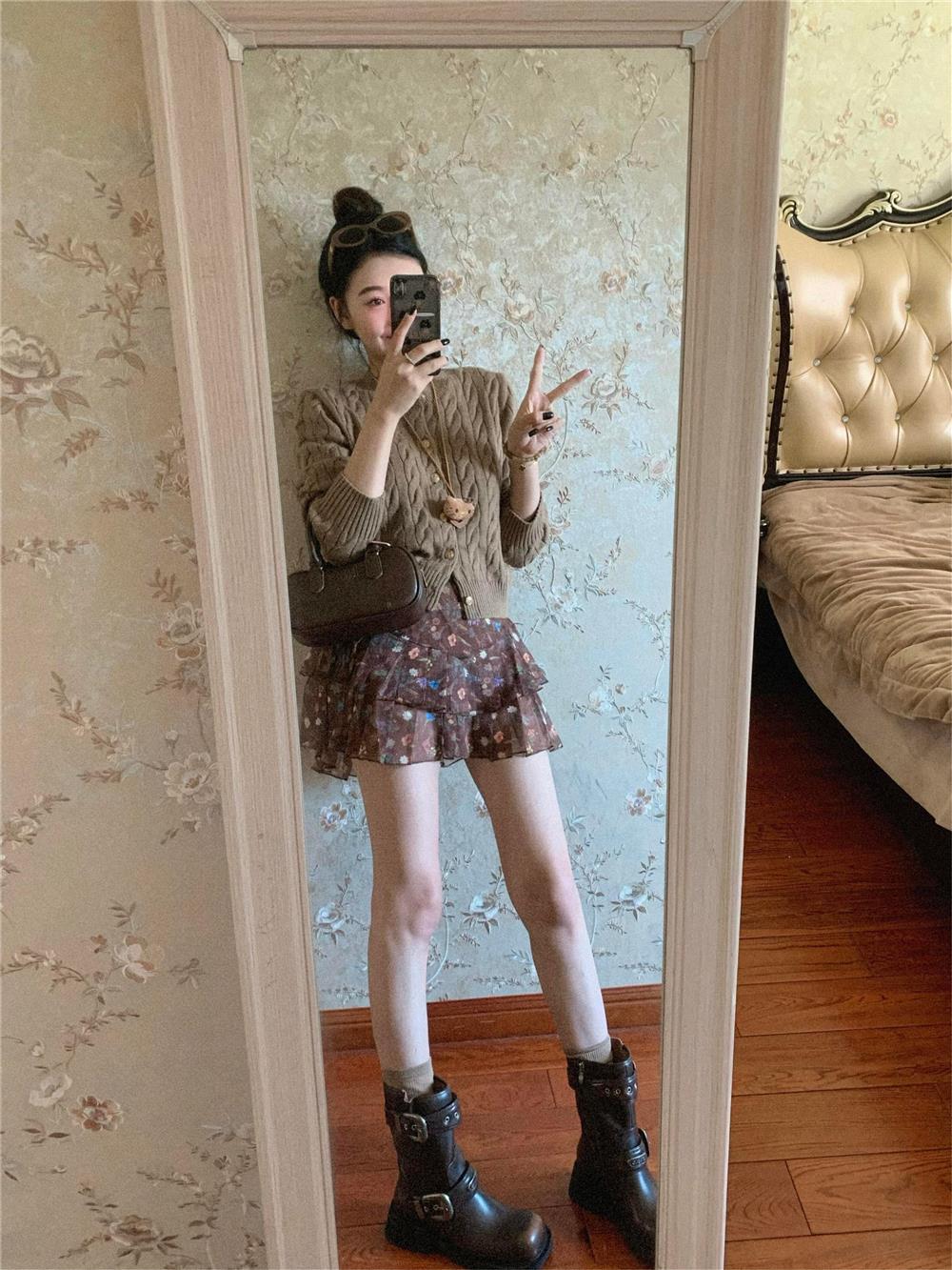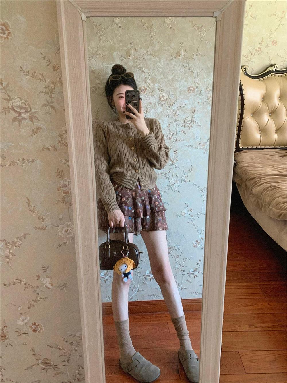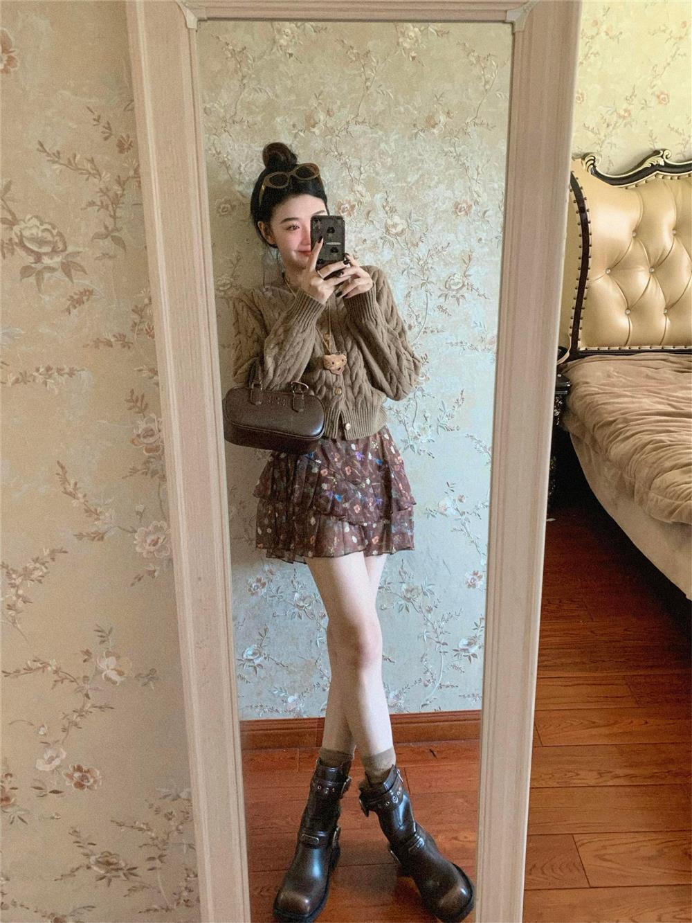 復古棕色粗條麻花紋理軟糯開衫毛衣女秋季新款修身厚實外搭上衣潮