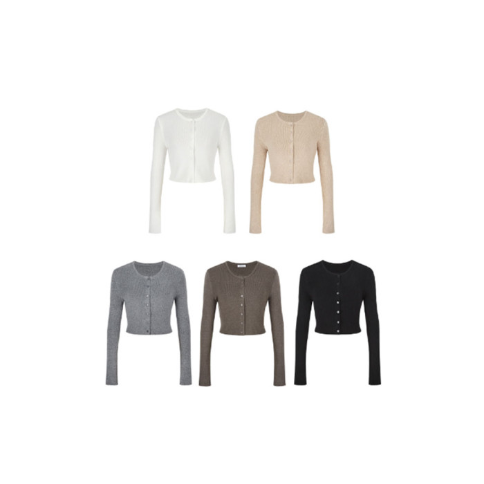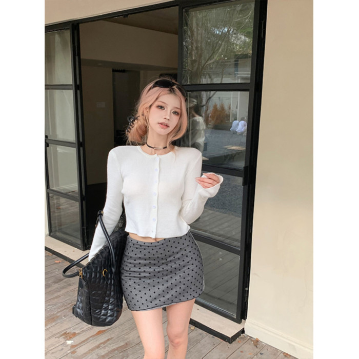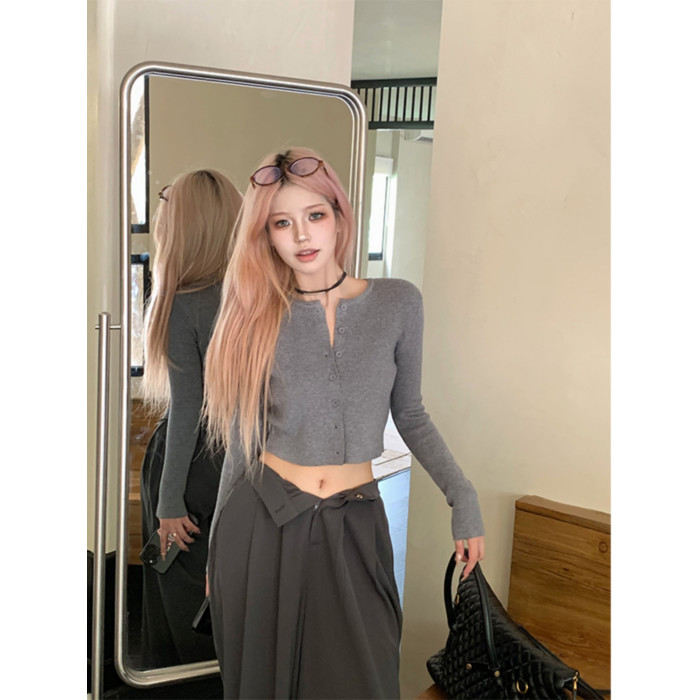 MosesQueen魔西女王紐釦針織衫女2025新款短款灰色顯瘦辣妹上衣
