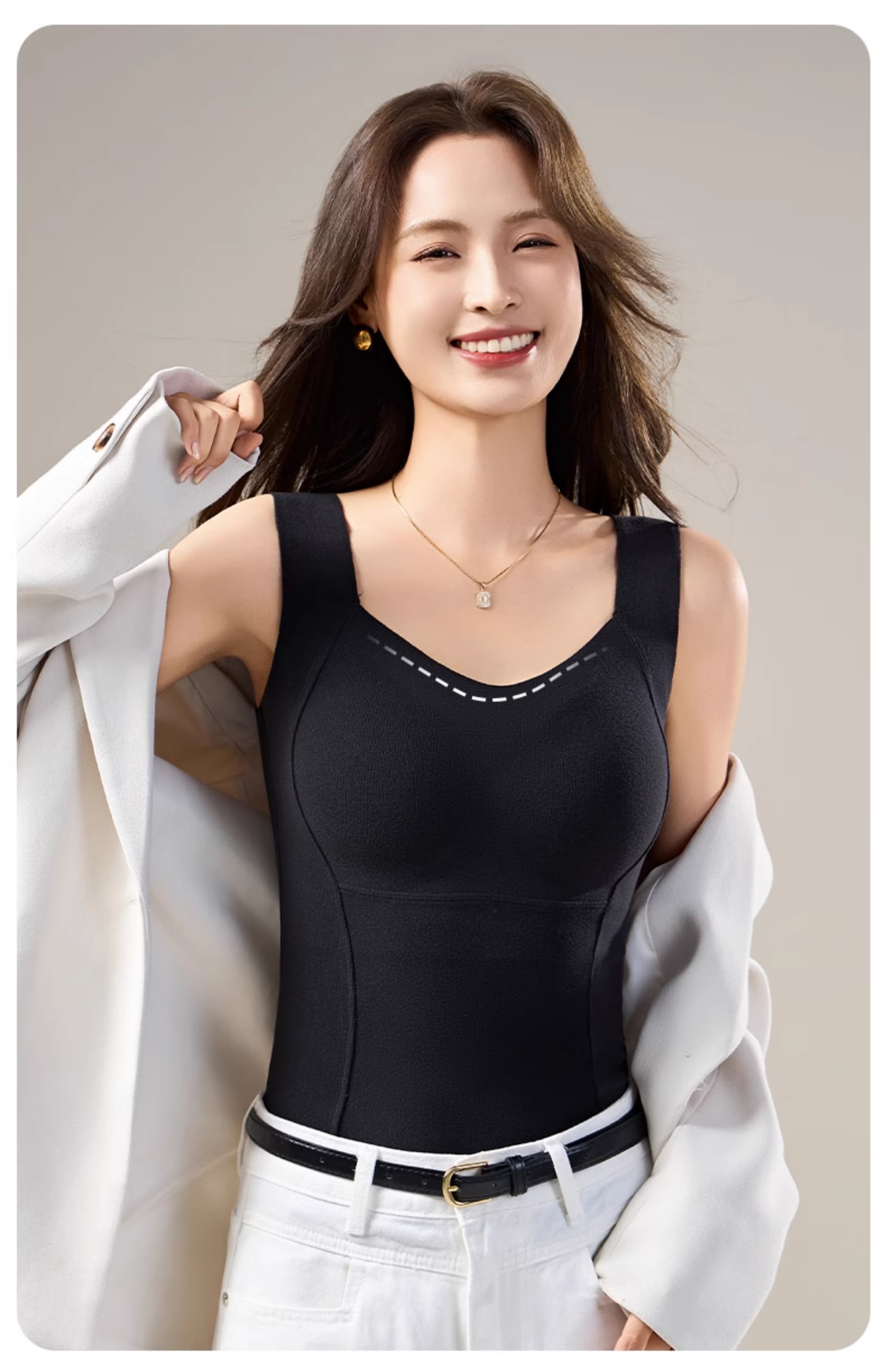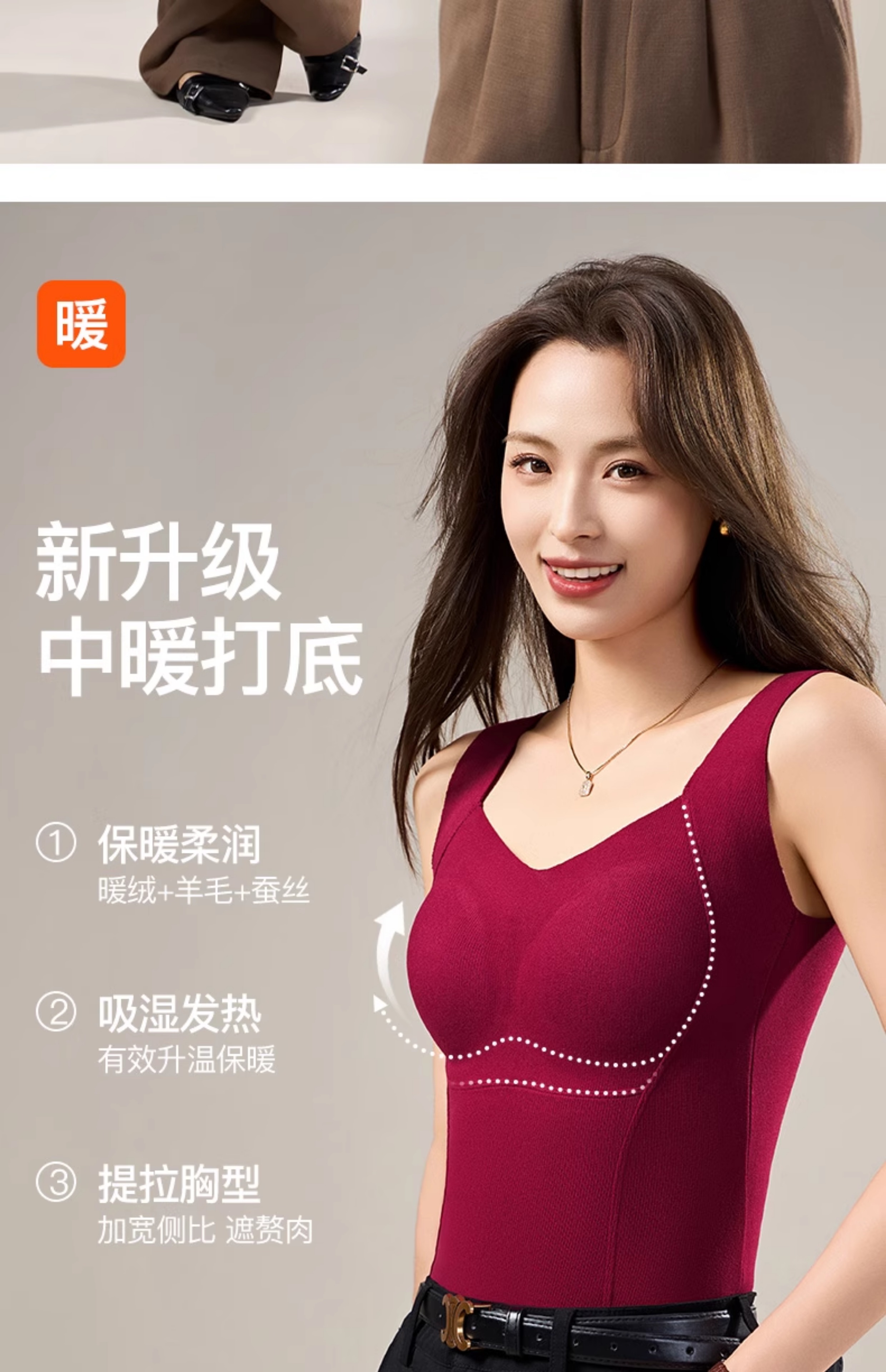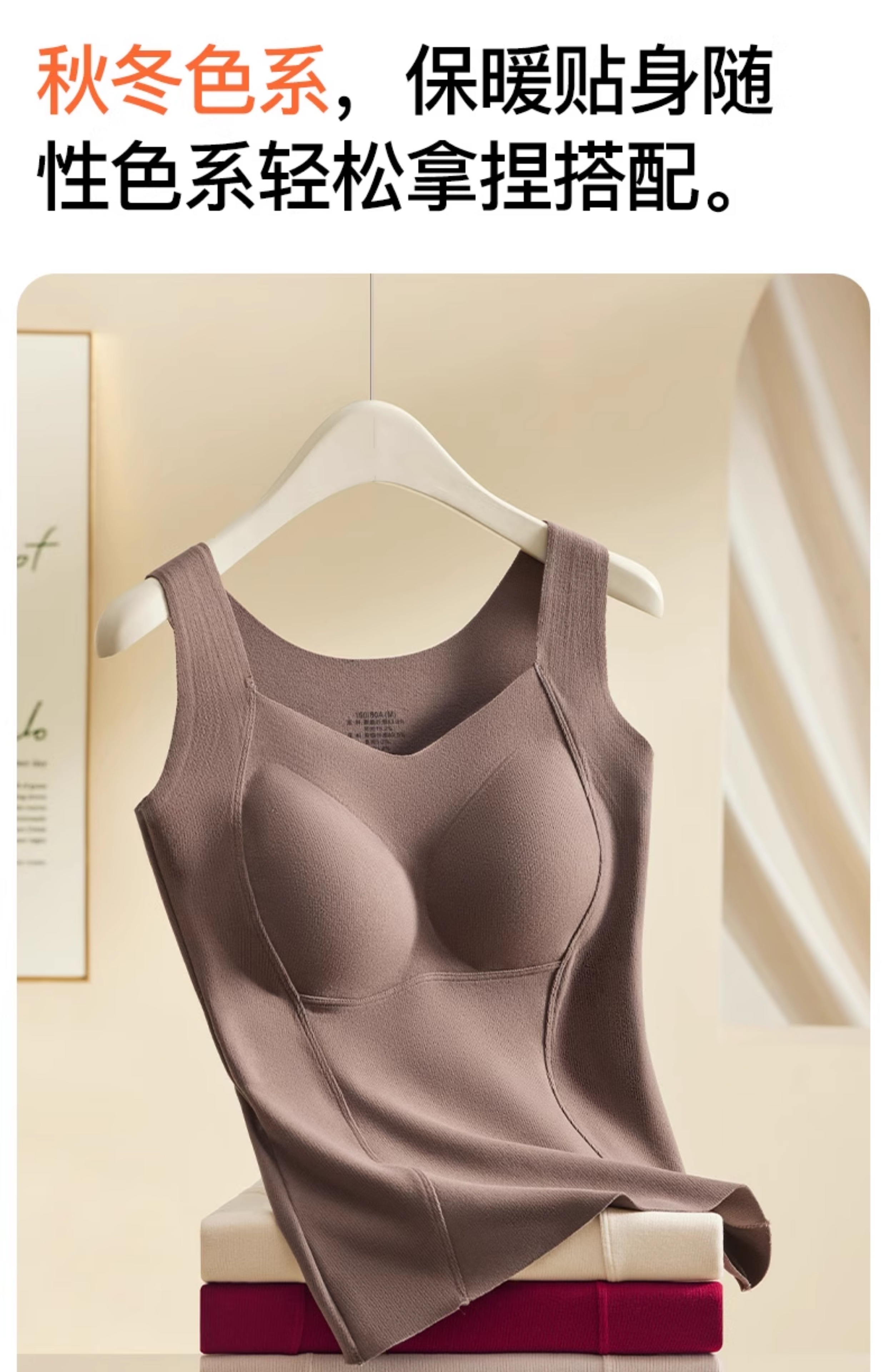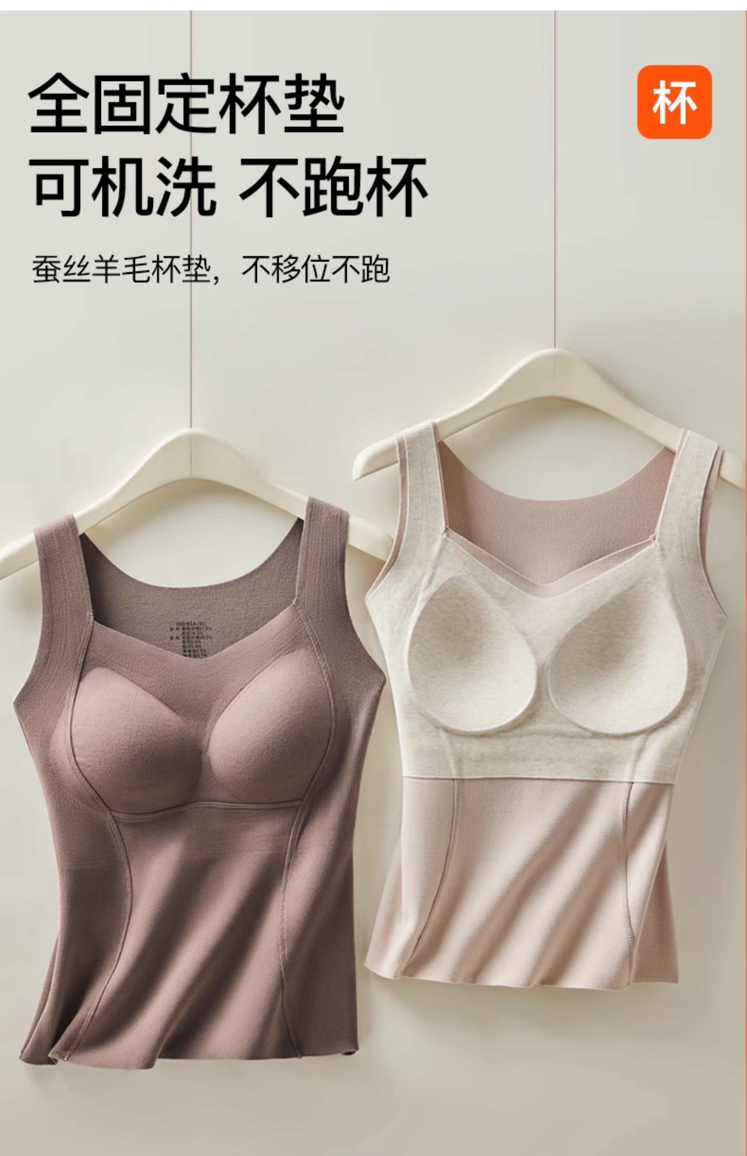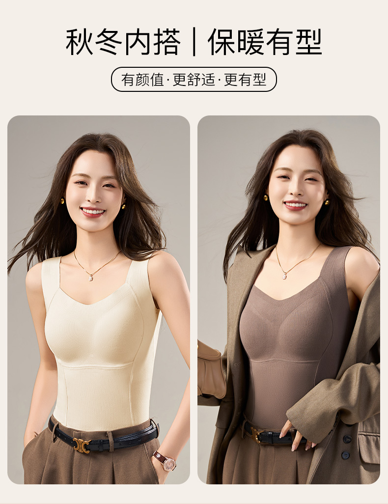 德絨保暖背心女款帶胸墊一體2025新款加絨加厚秋冬季羊絨蠶絲內衣