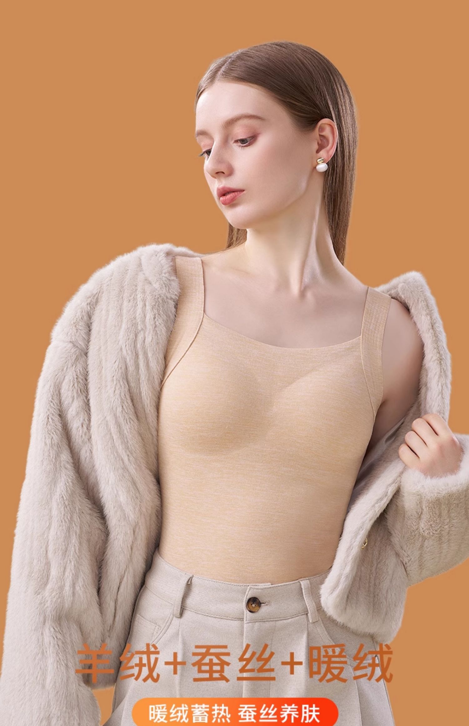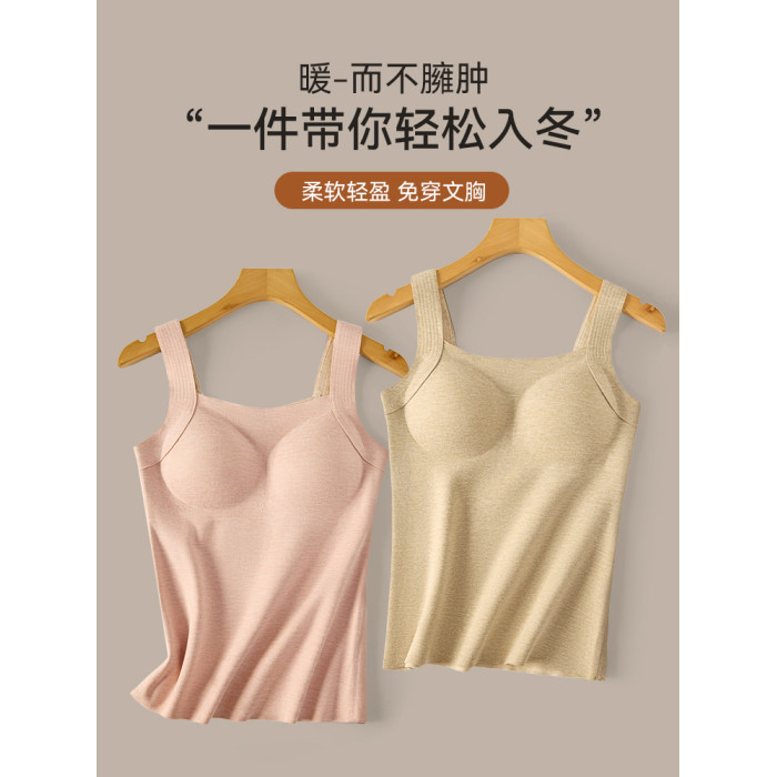 貓人無痕保暖背心女帶胸墊免穿文胸羊絨蠶絲打底內衣秋冬2025新款