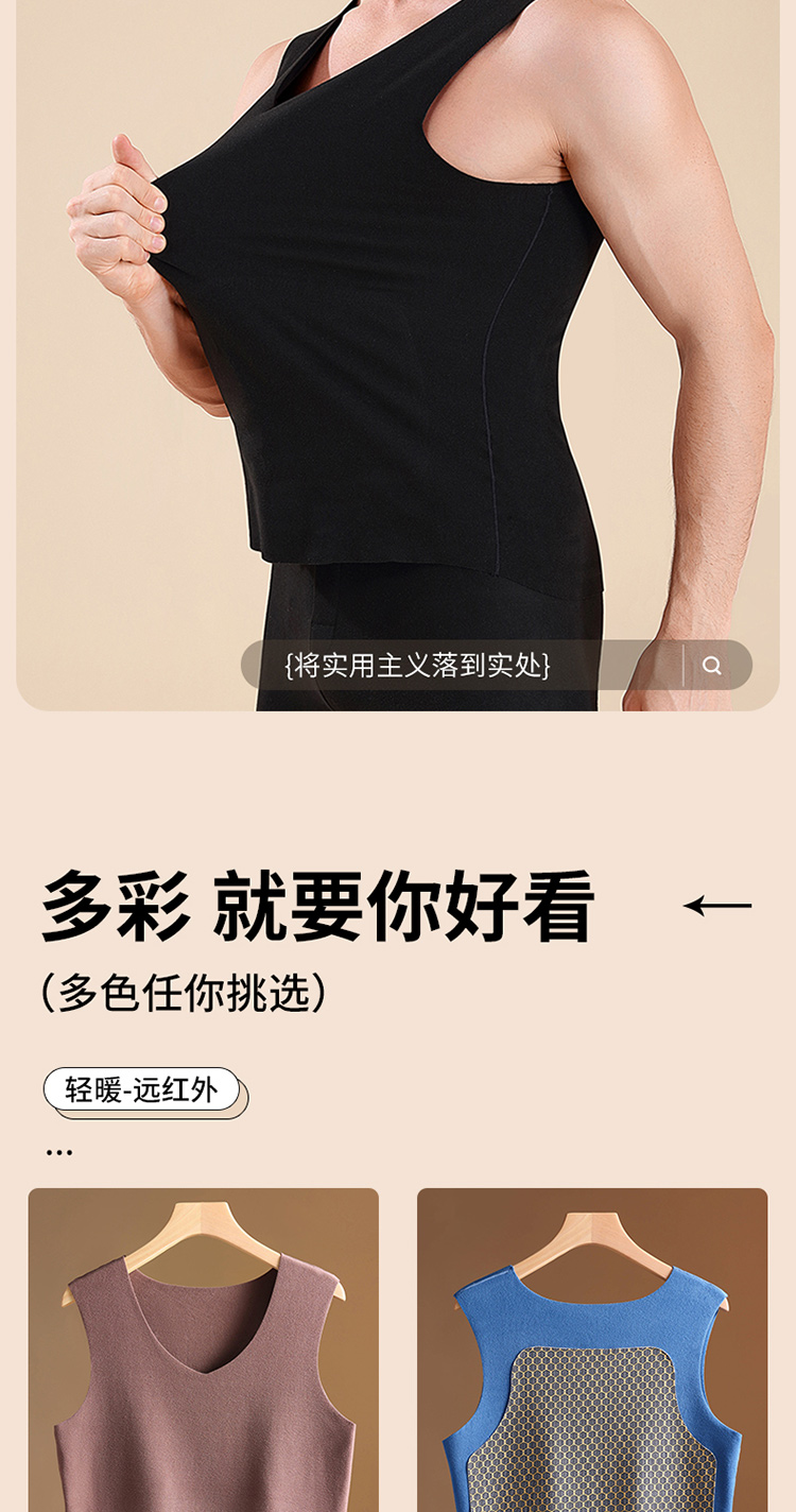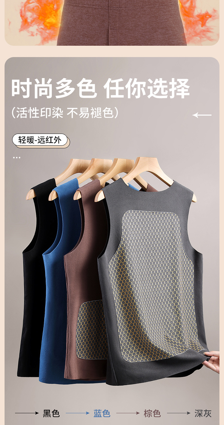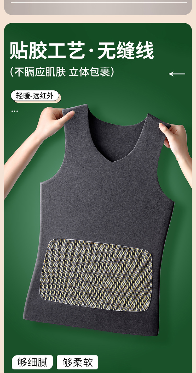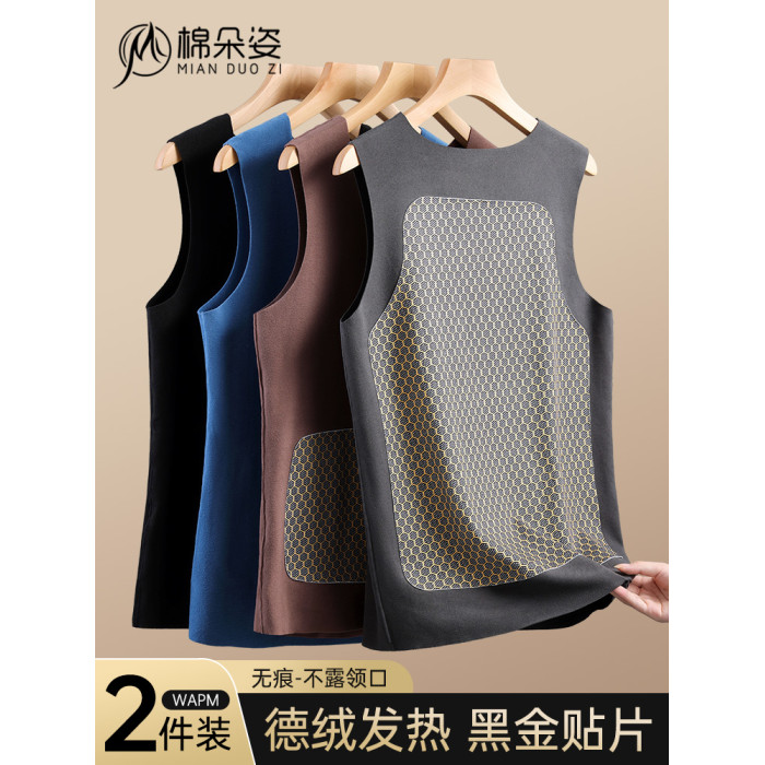 秋冬季德絨保暖背心男士加絨加厚貼片髮熱無痕保暖內衣上衣打底衫