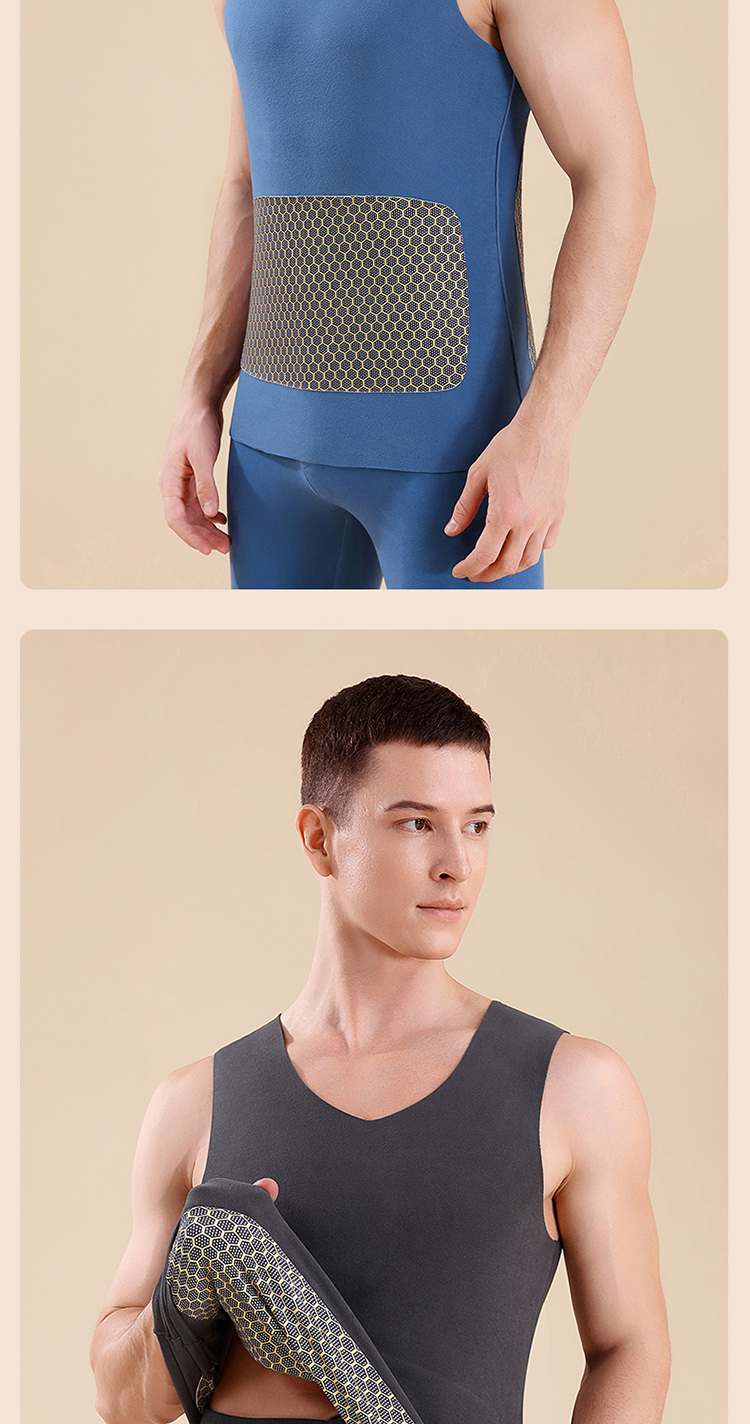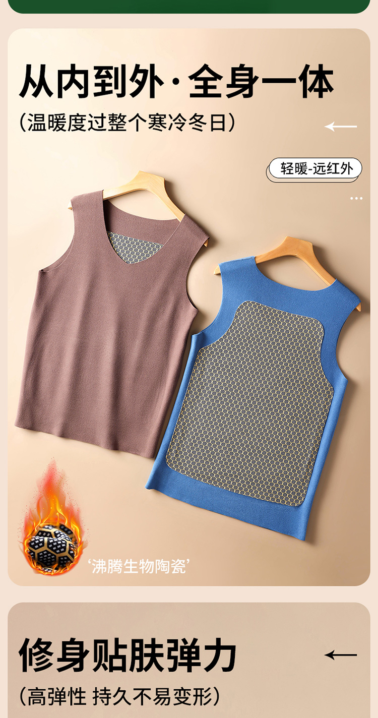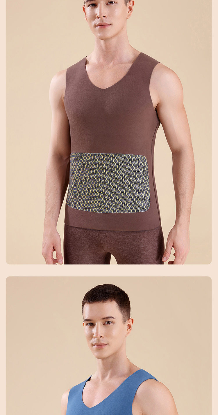 秋冬季德絨保暖背心男士加絨加厚貼片髮熱無痕保暖內衣上衣打底衫