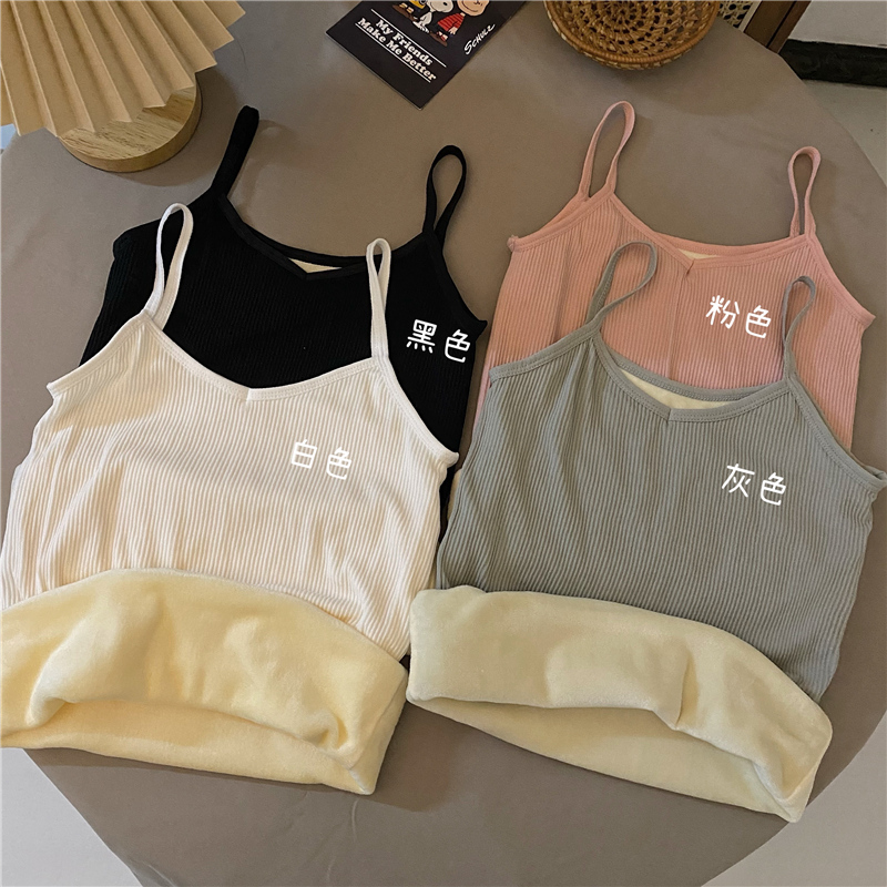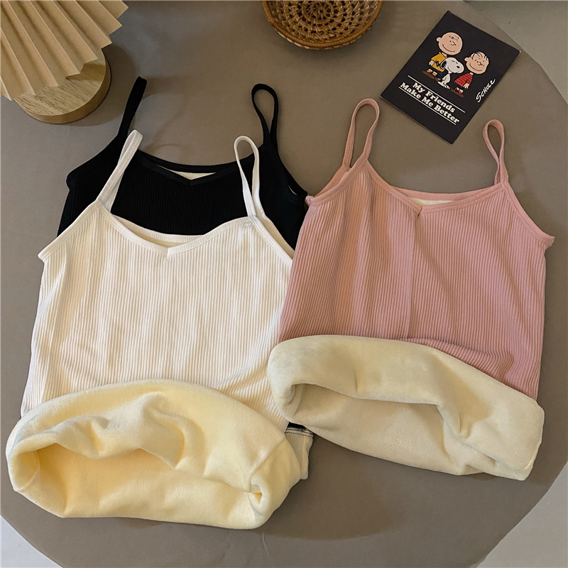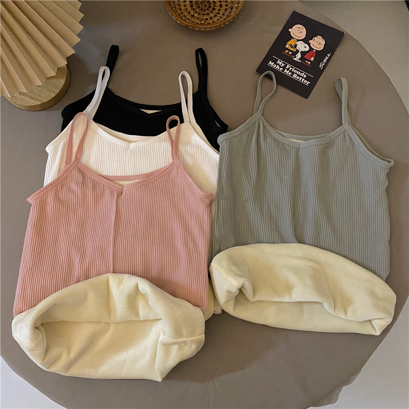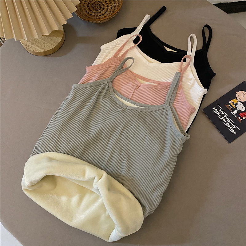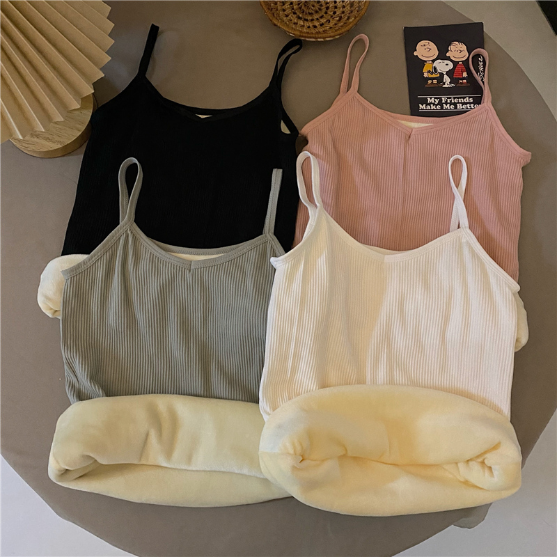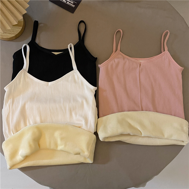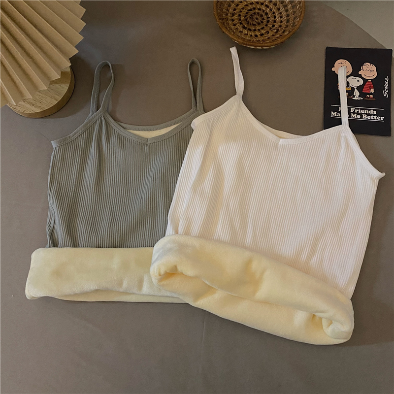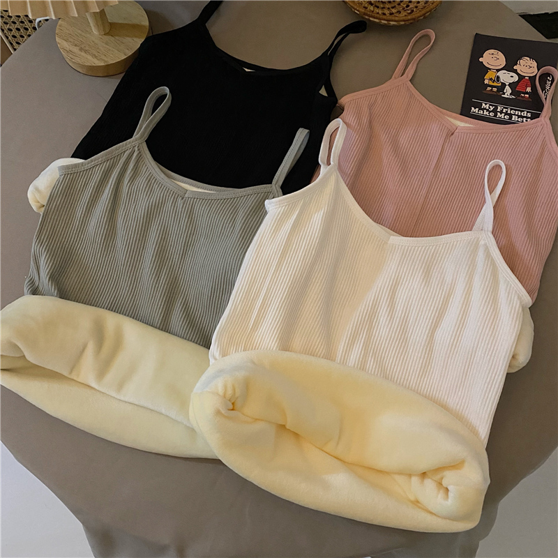 保暖背心女加絨加厚秋冬季內搭小吊帶白色緊身貼身學生打底內衣潮