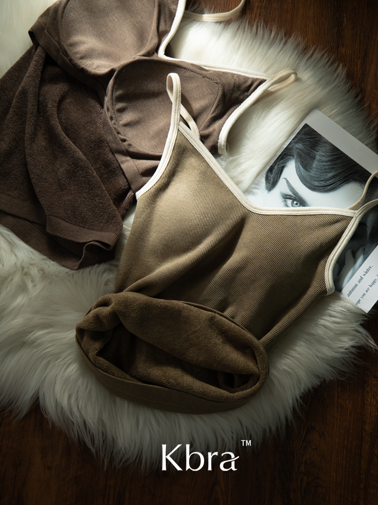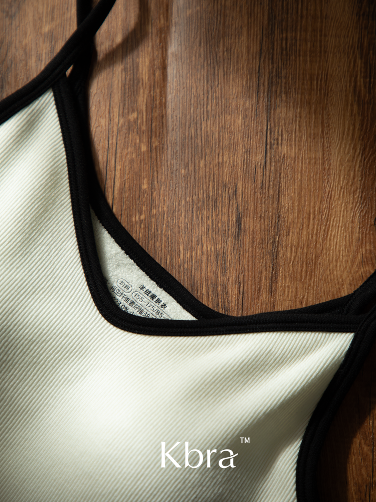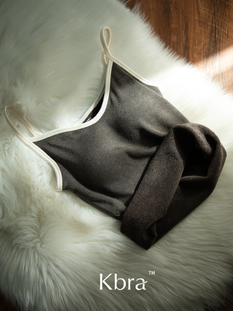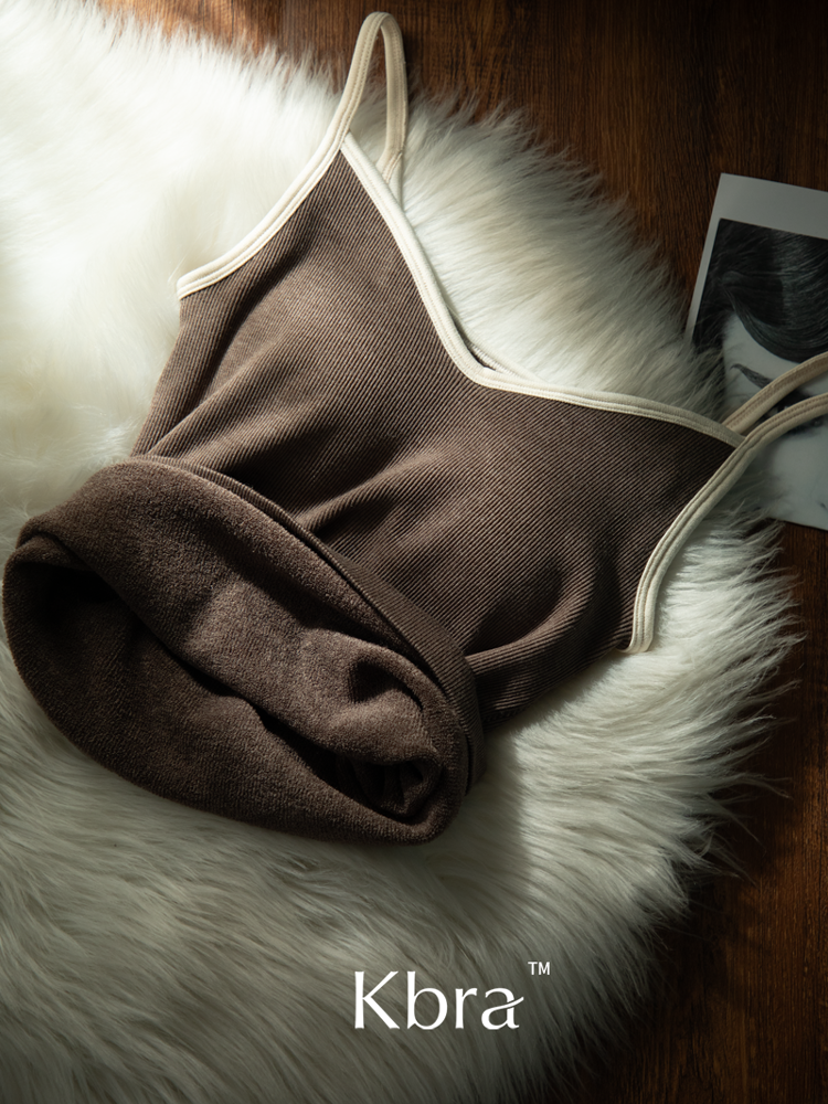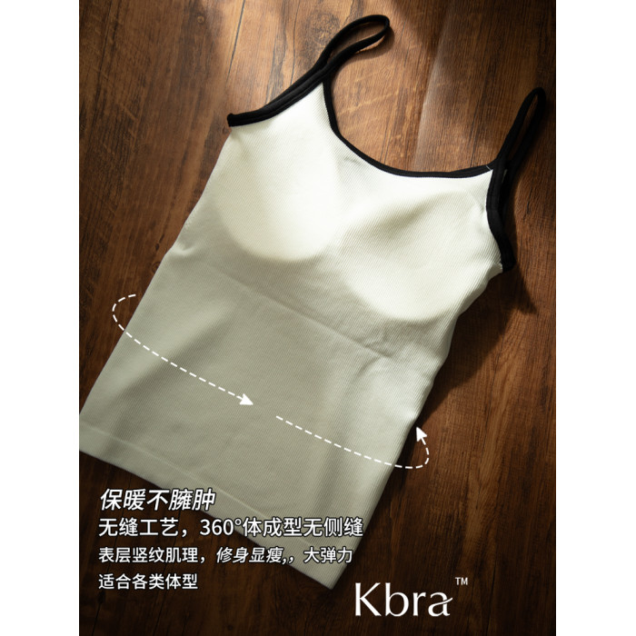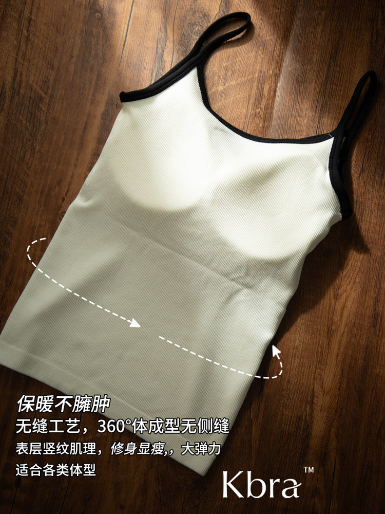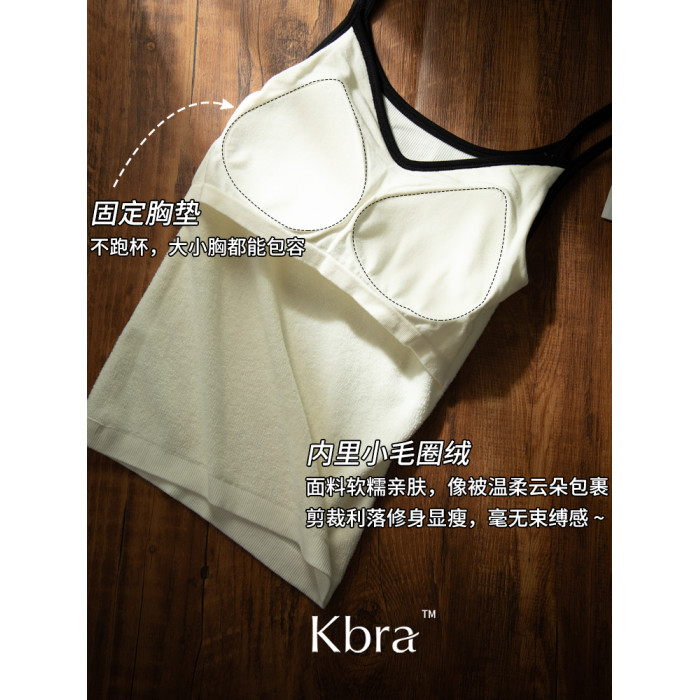 Kbra山羊絨深V保暖背心女士雅單風秋冬季加絨內搭帶胸墊吊帶上衣