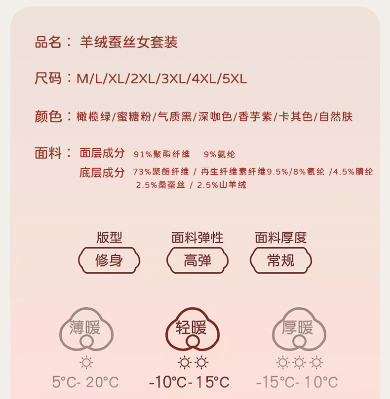 | 裡料材質成分 | 聚酯纖維73% 再生纖維素纖維9.5% 聚氨酯彈性纖維(氨綸)8% 聚丙烯腈纖維(腈綸)4.5% 桑蠶絲2.5% 山羊羢(羊羢)2.5% |