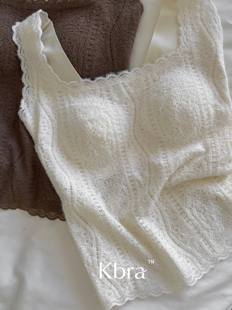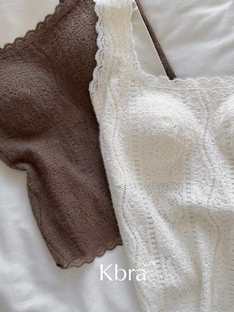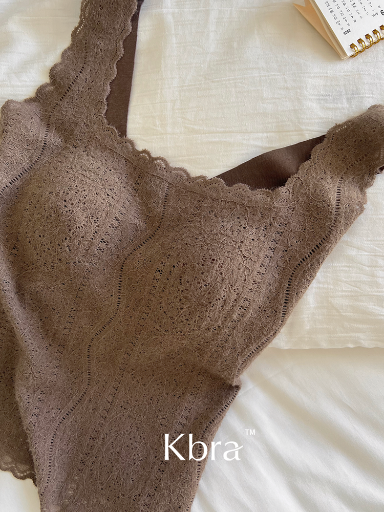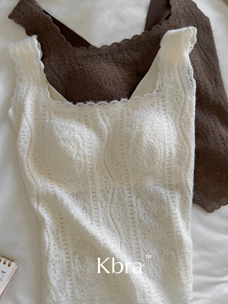 Kbra法式蕾絲保暖吊帶背心女士2025新款冬季帶胸墊內搭可外穿上衣
