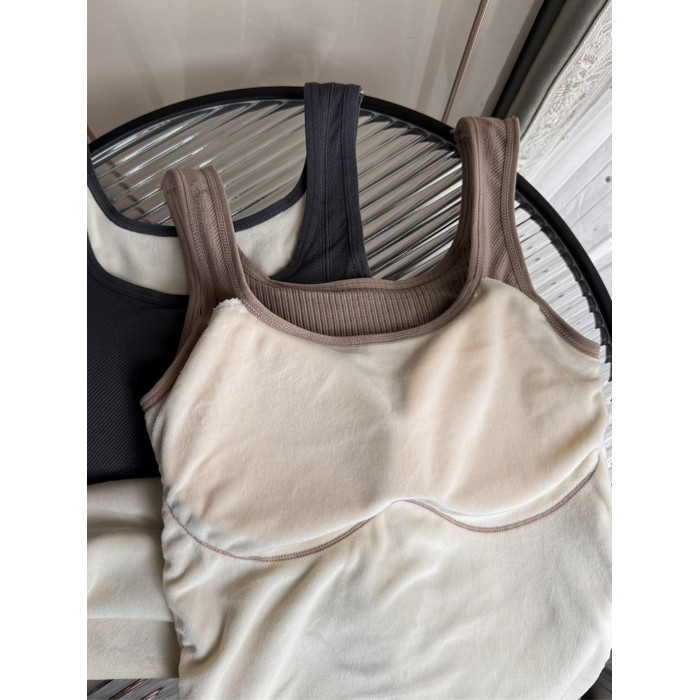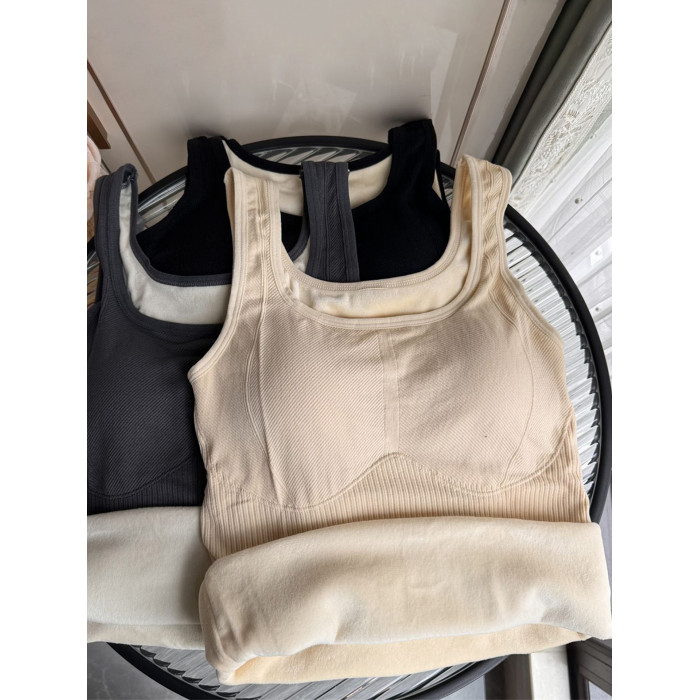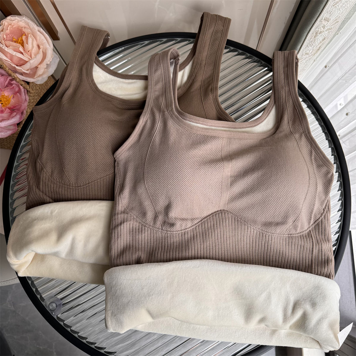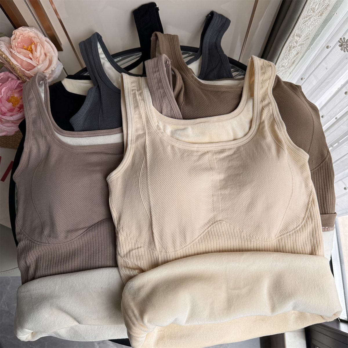 保暖吊帶背心女加絨加厚美背帶胸墊修身顯瘦打底無袖上衣女秋冬季