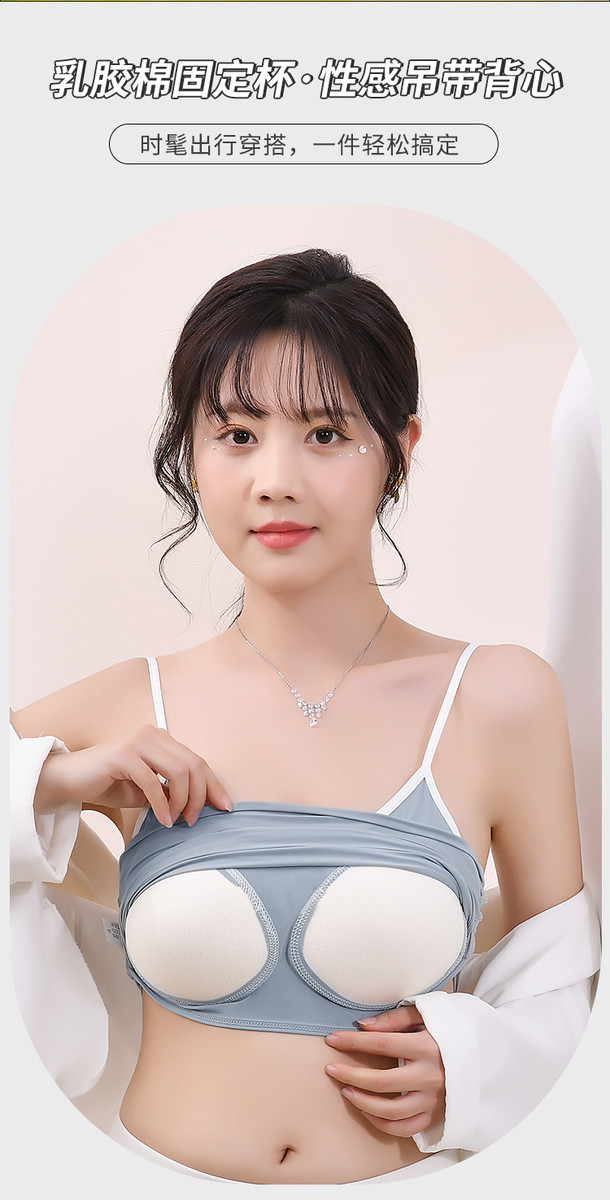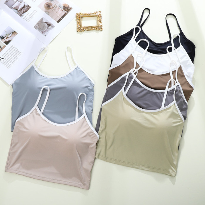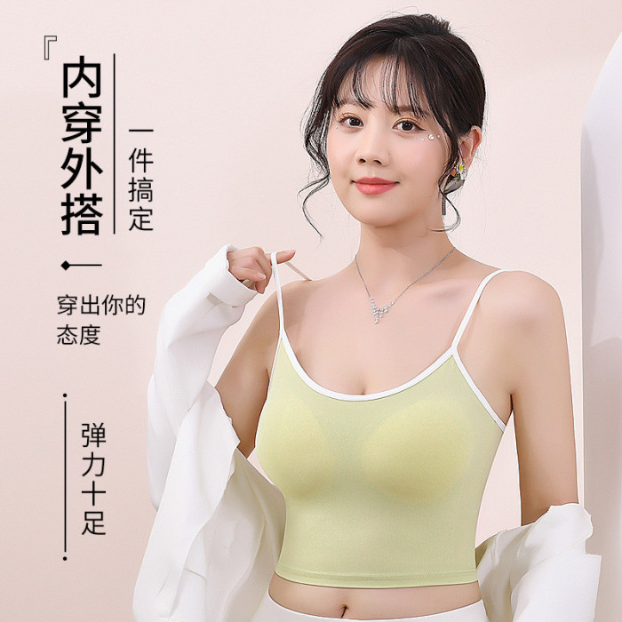 春夏新款冰絲帶胸墊美背文胸女運動打底內衣吊帶背心裹胸
