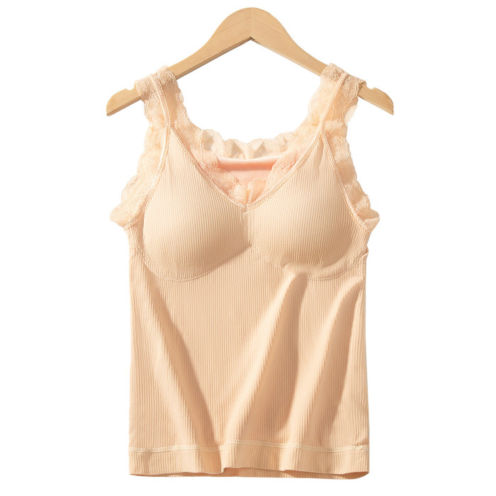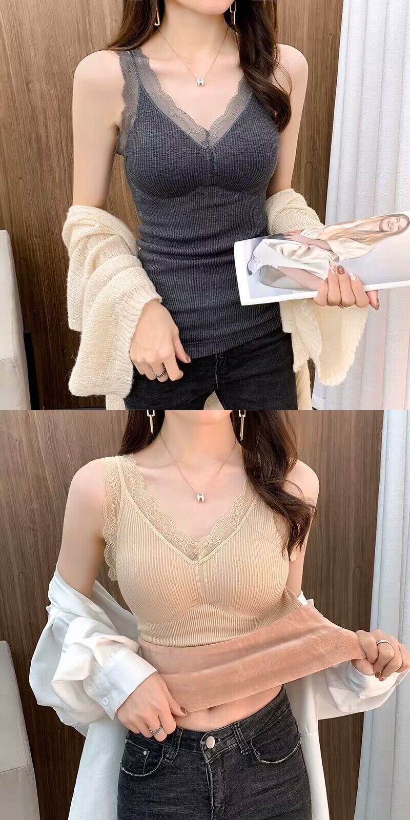 秋冬小熊蕾絲保暖背心吊帶女帶胸墊百搭加絨加厚修身保暖內衣