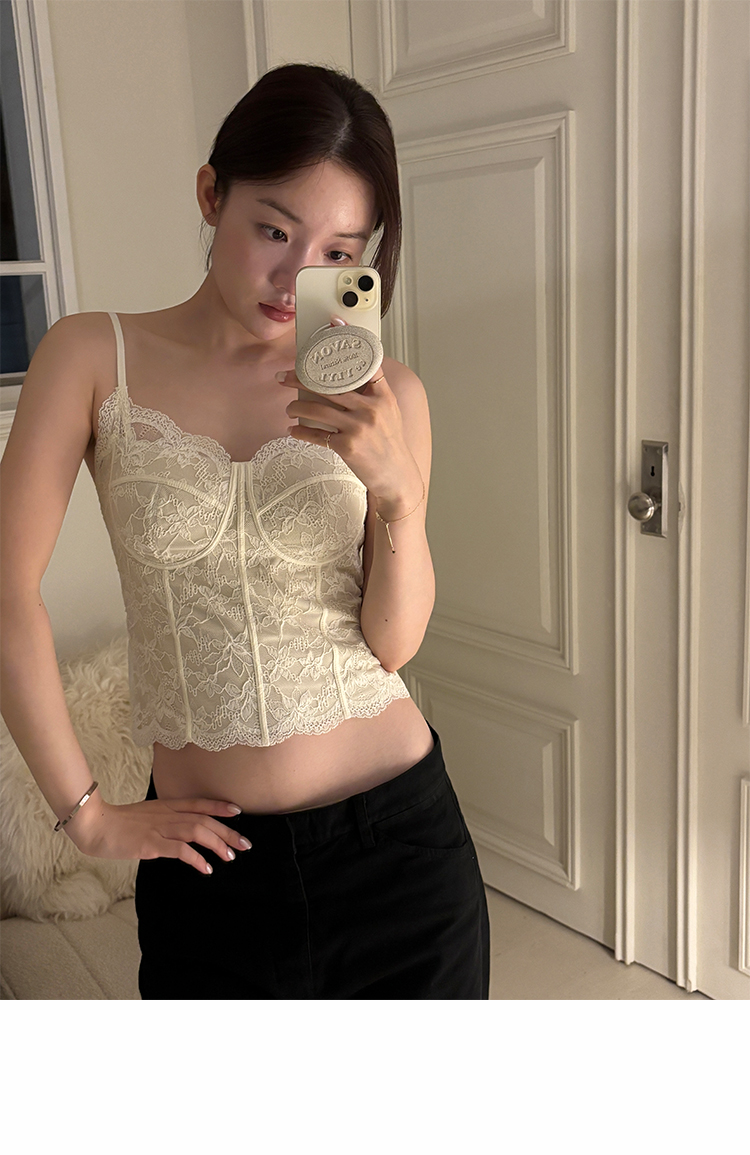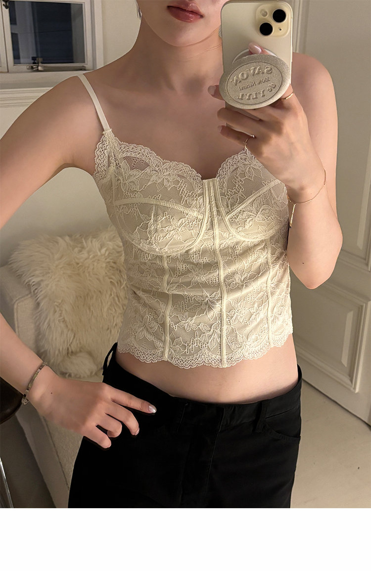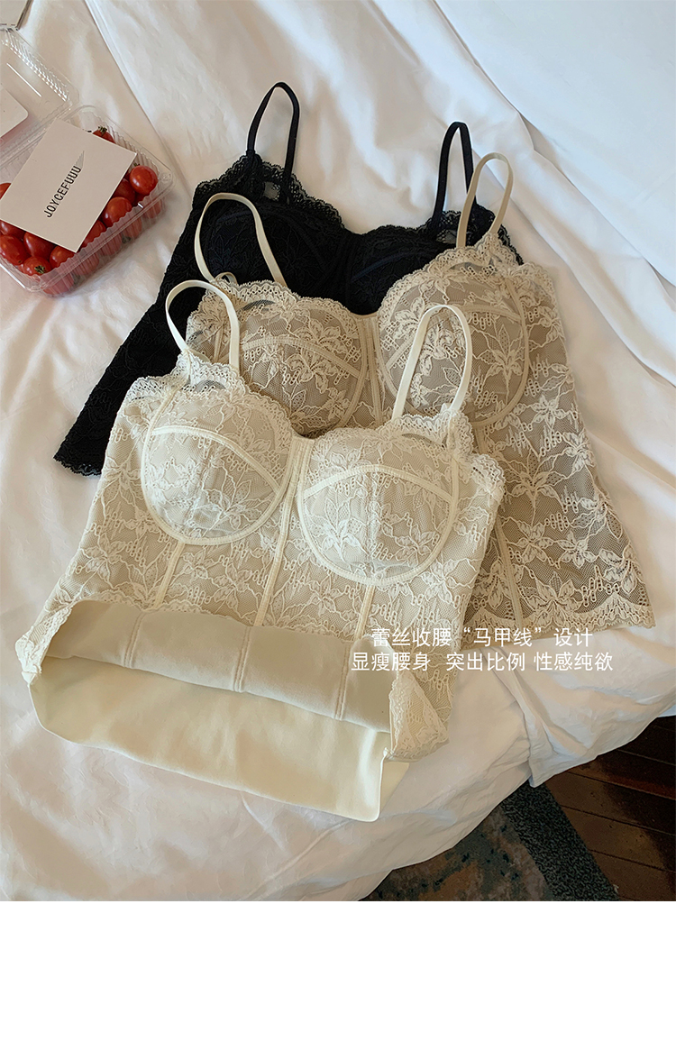 JoyceBra 純欲風蕾絲保暖背心女帶胸墊修身吊帶內搭外穿打底上衣