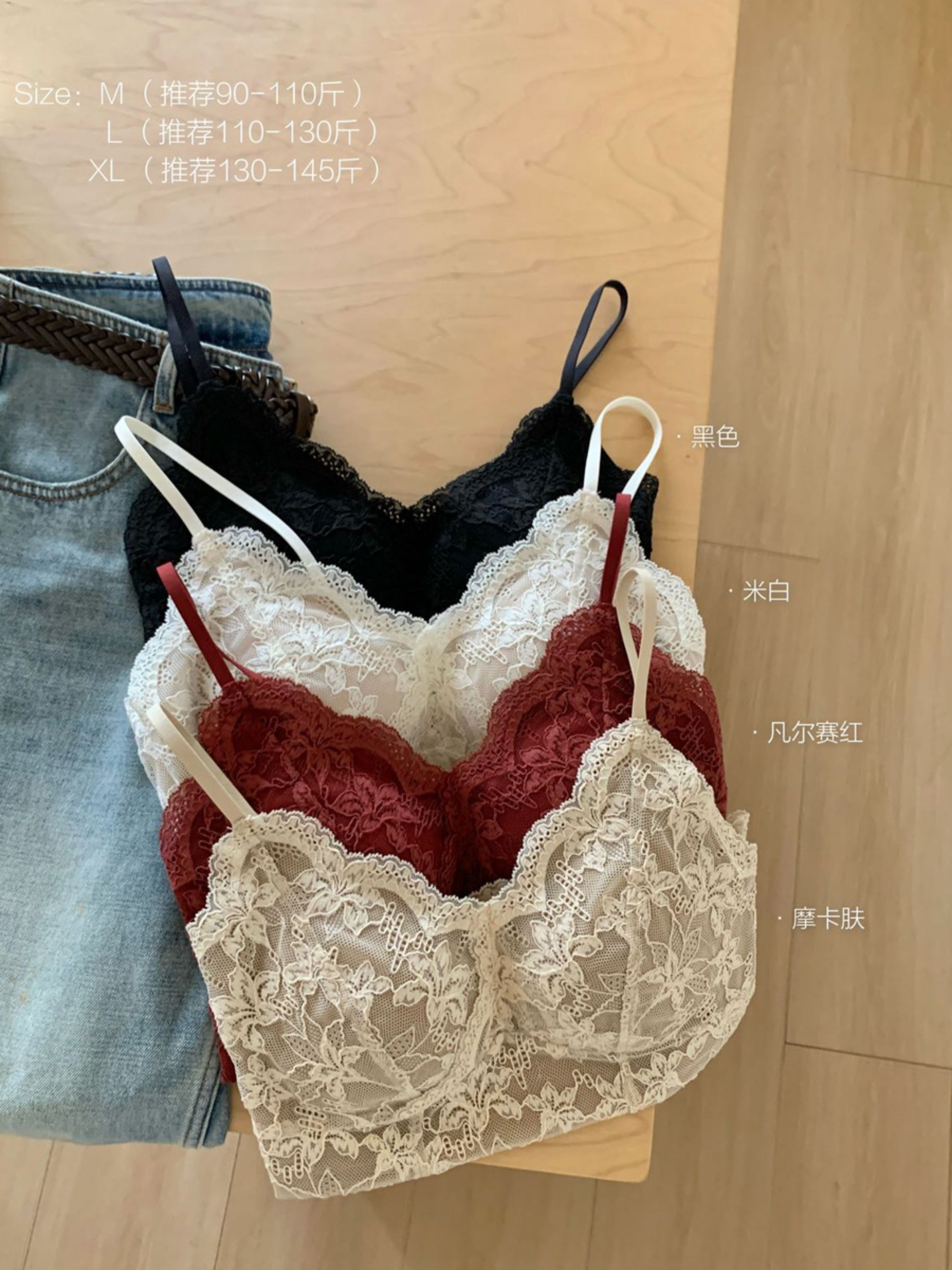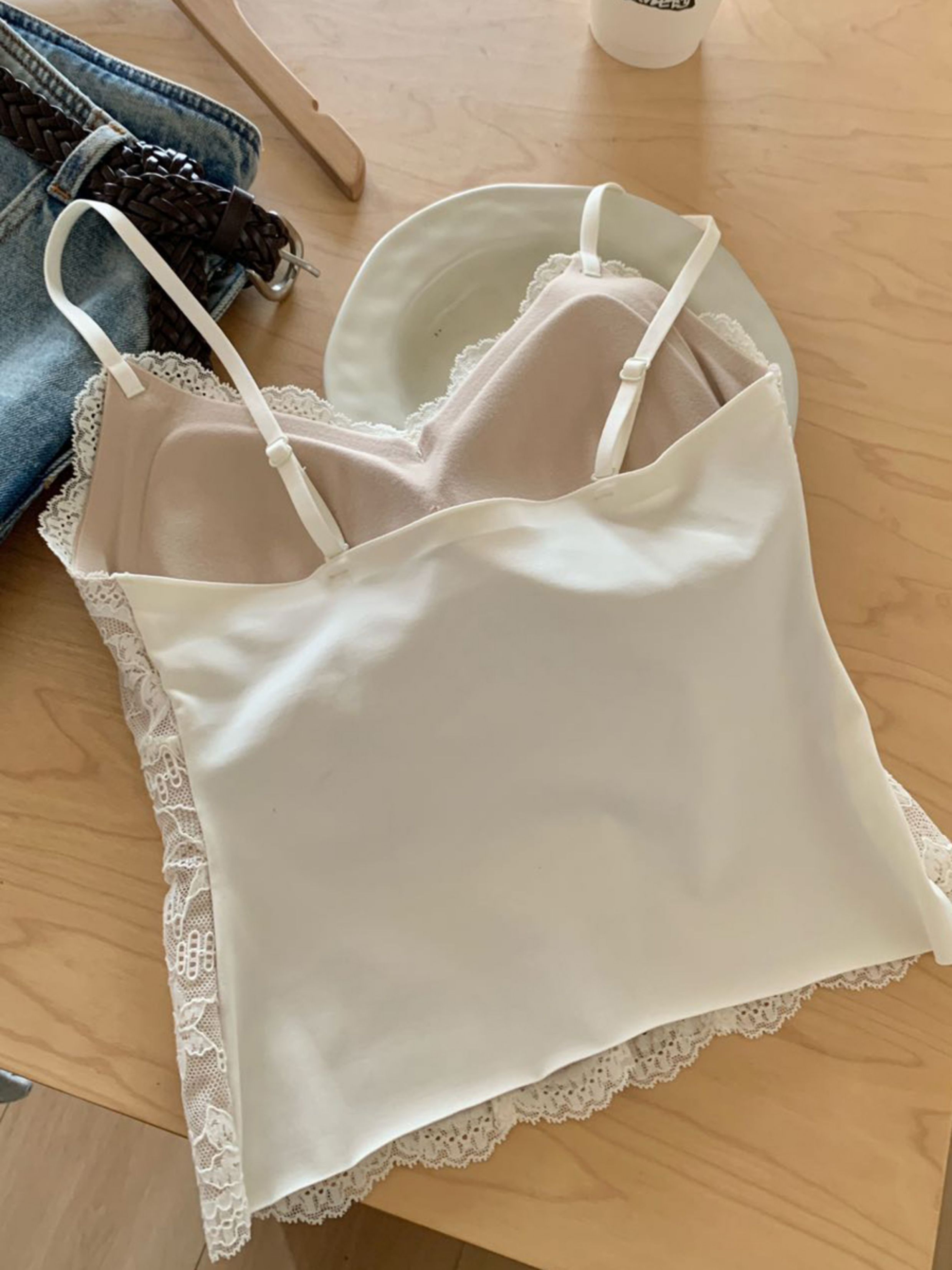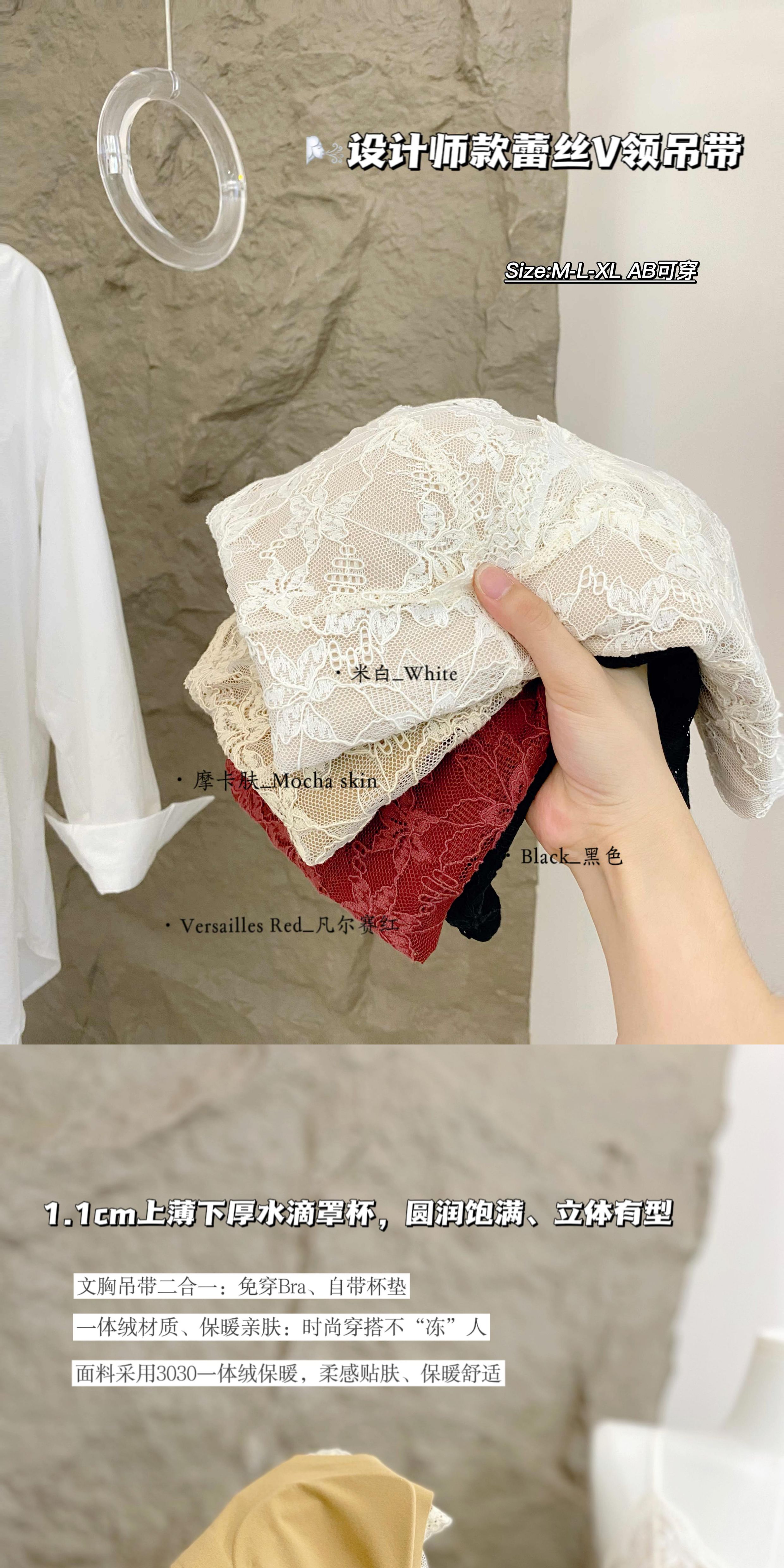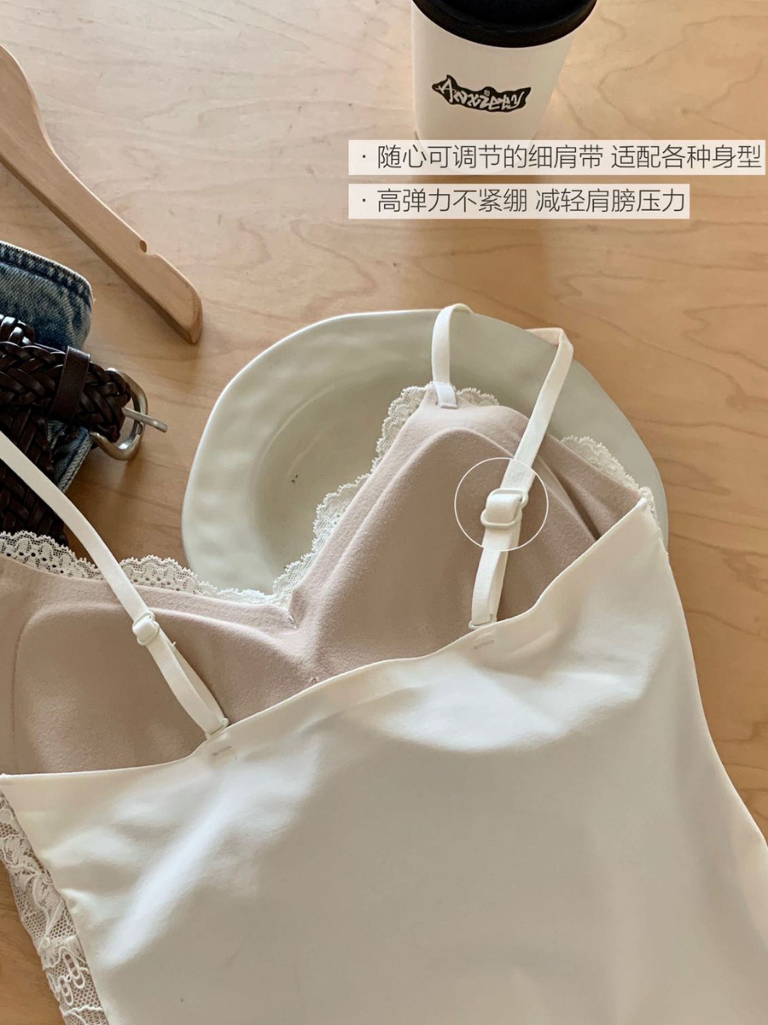 蕾絲花邊帶胸墊美背內搭背心吊帶女磨毛保暖純欲修身顯瘦打底上衣