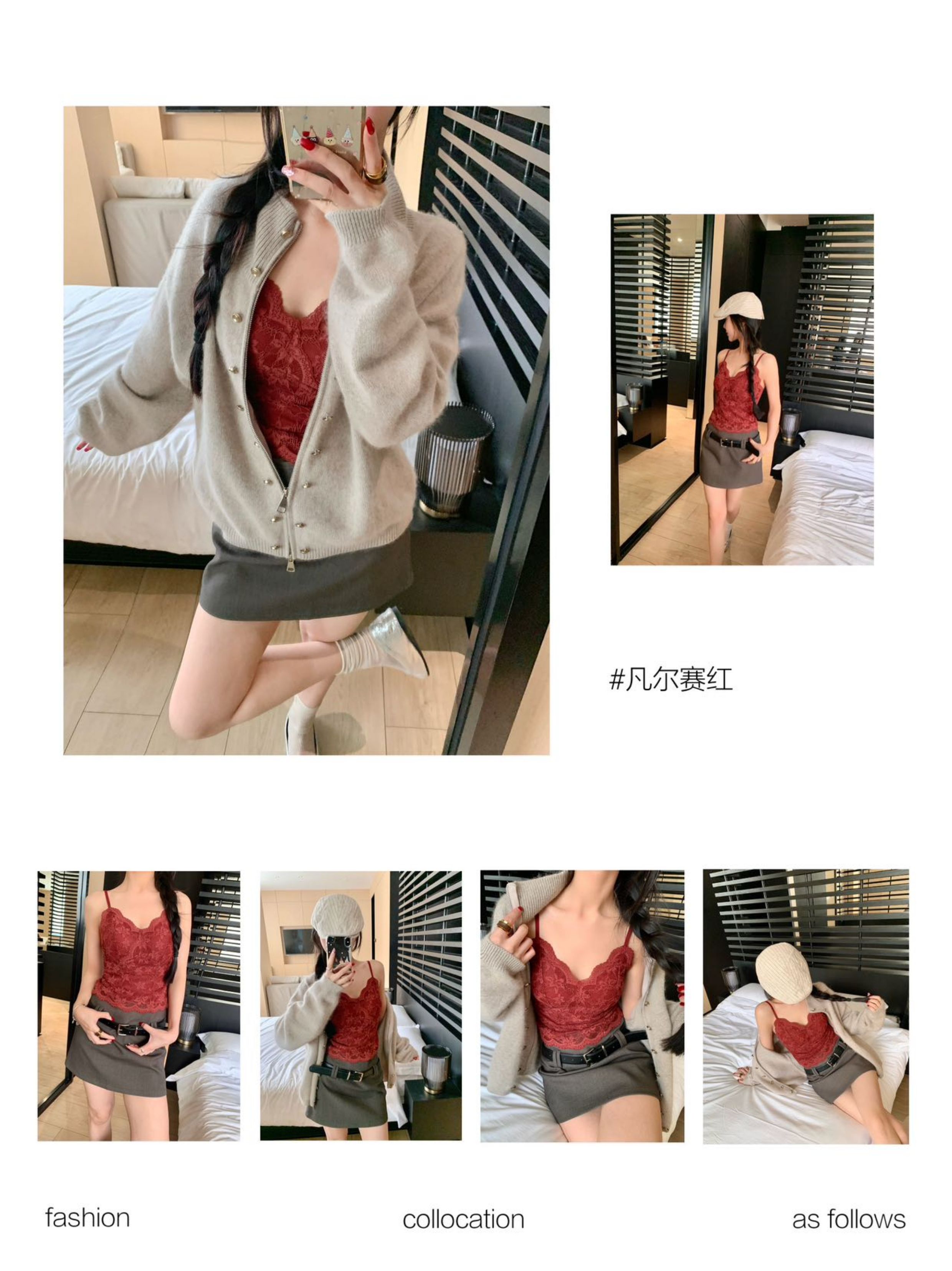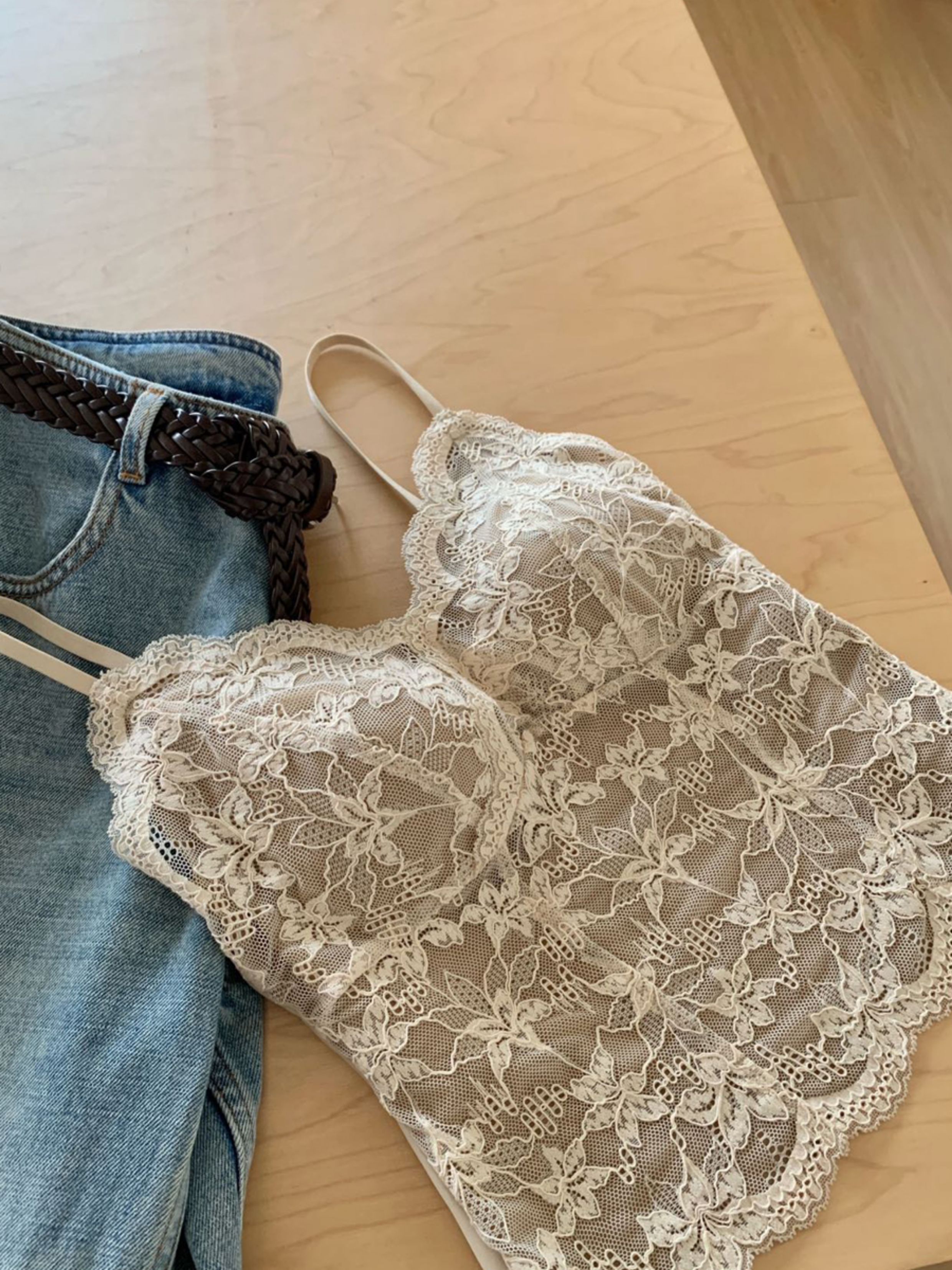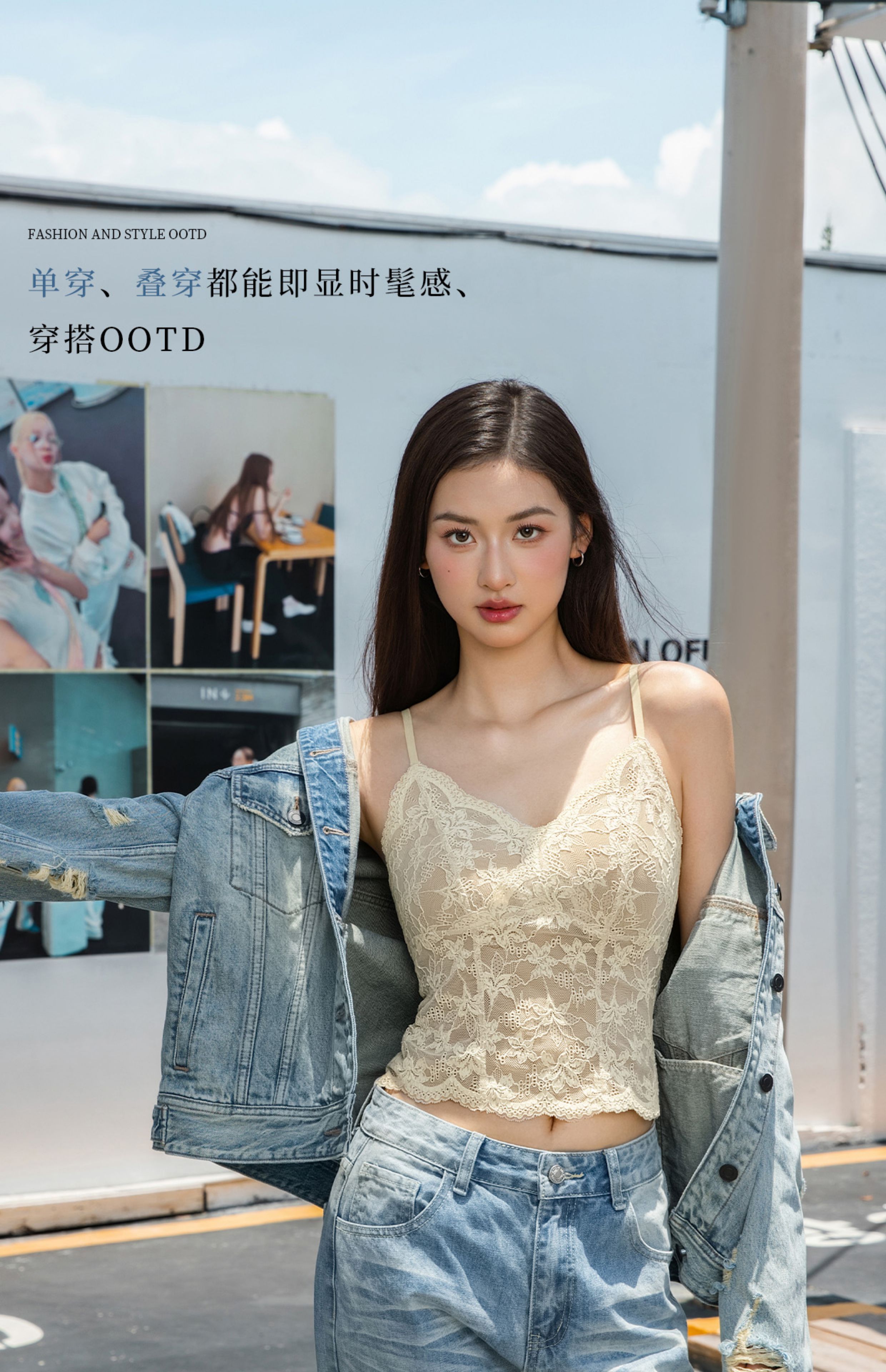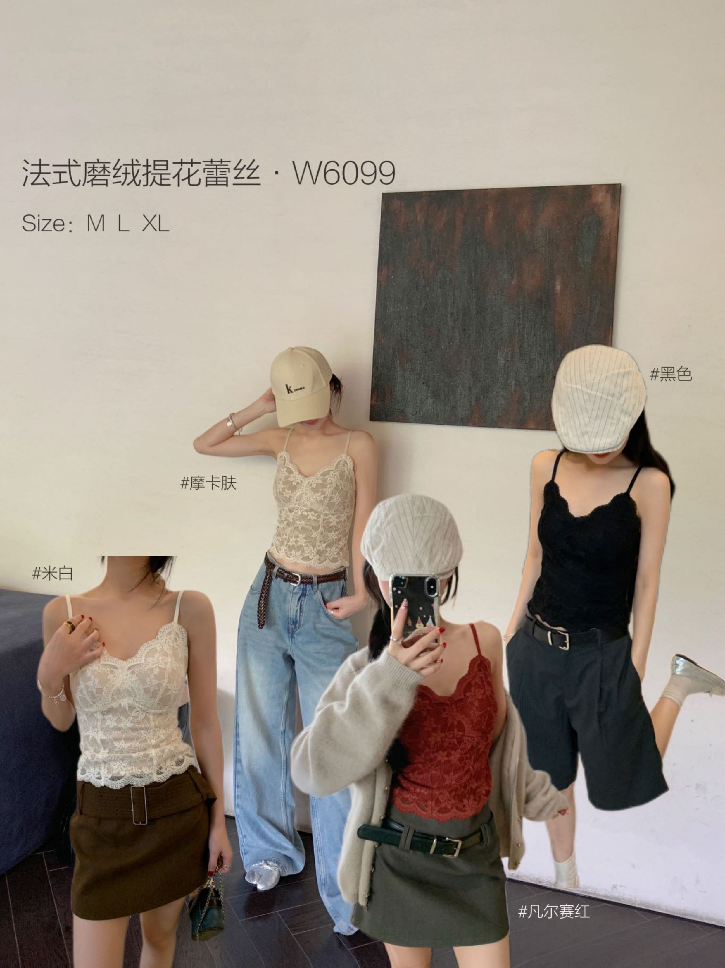 蕾絲花邊帶胸墊美背內搭背心吊帶女磨毛保暖純欲修身顯瘦打底上衣