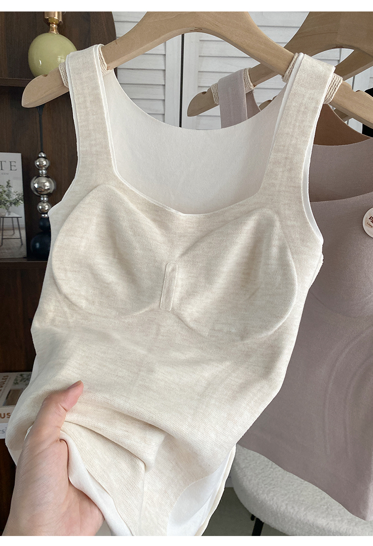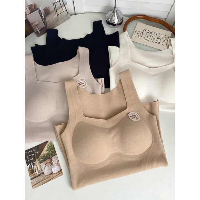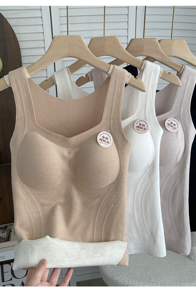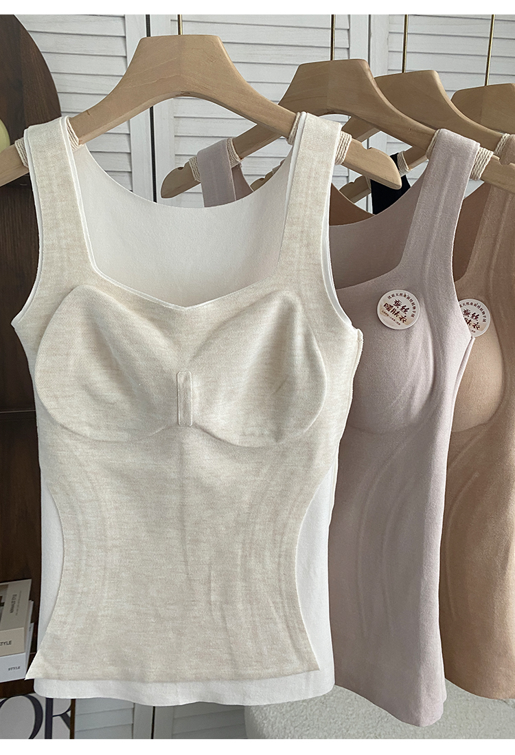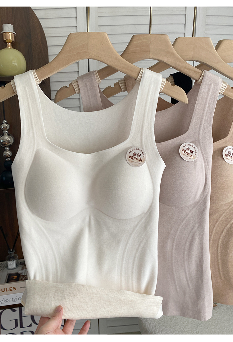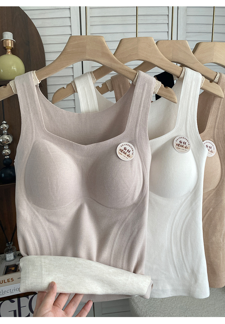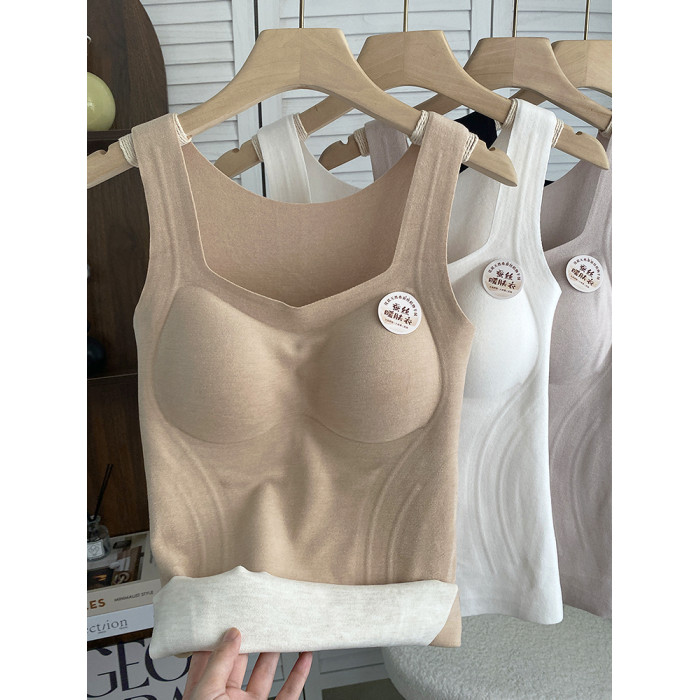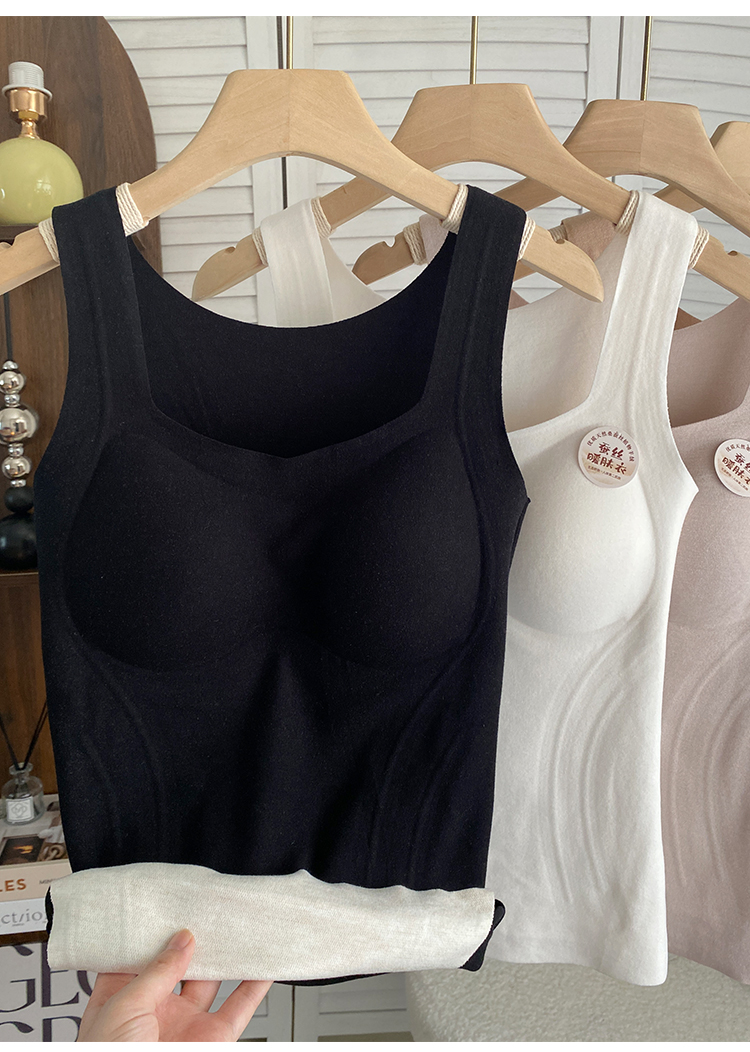 無痕磨毛保暖背心女內搭加厚貼片暖膚衣冬季加絨帶胸墊內衣打底