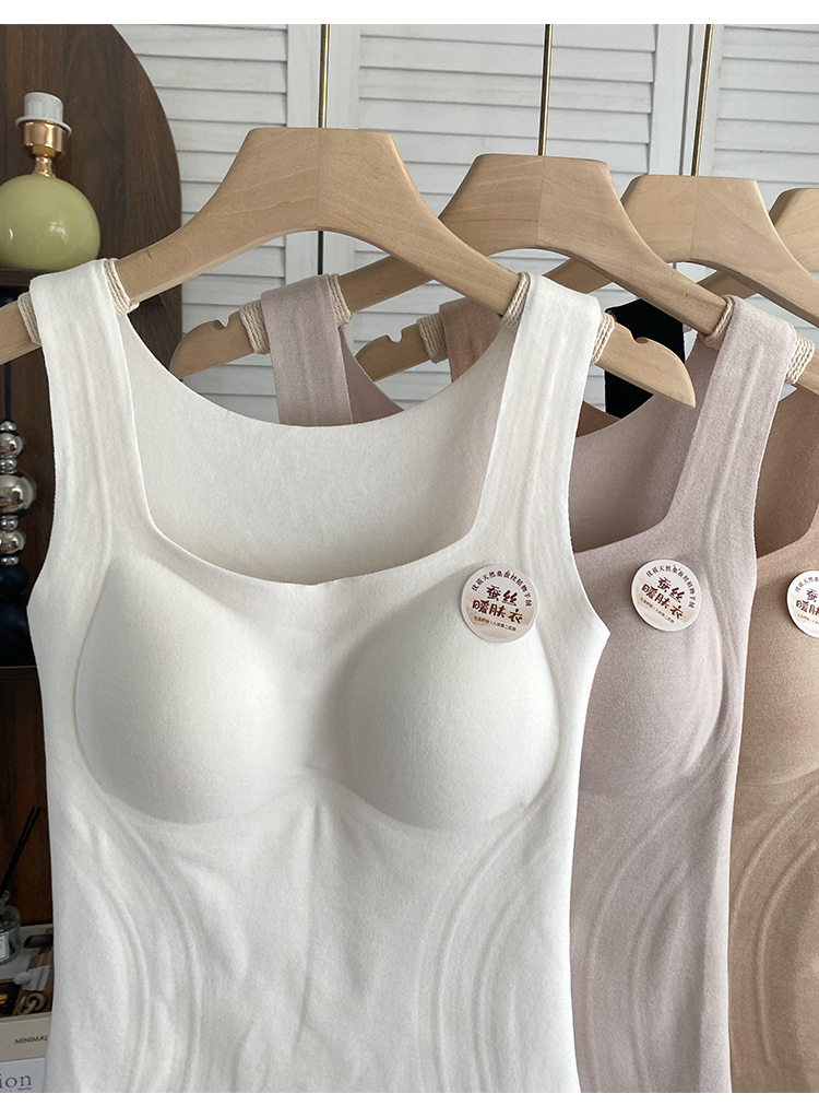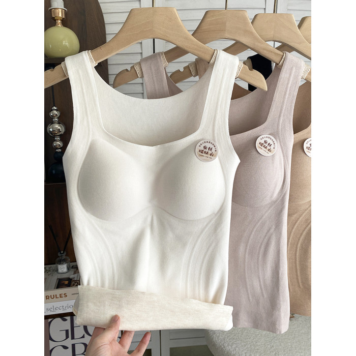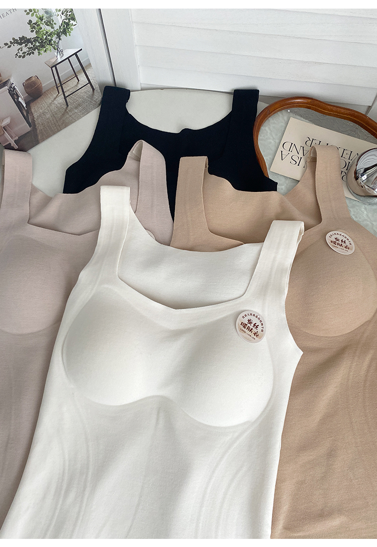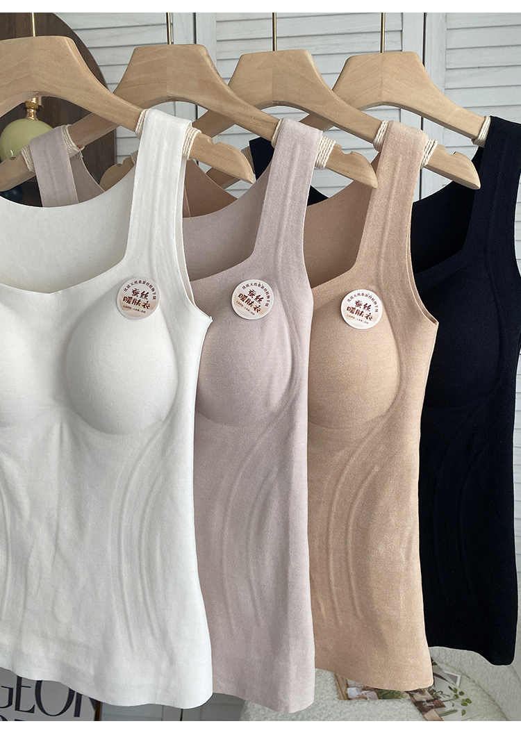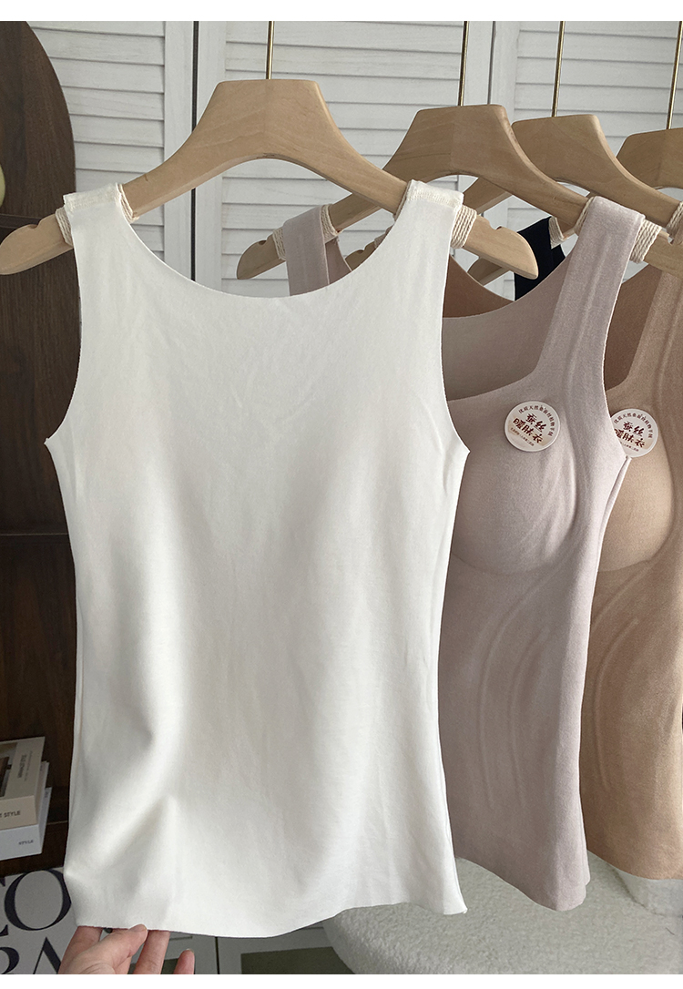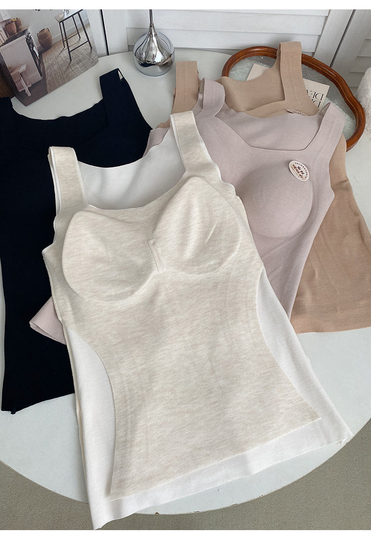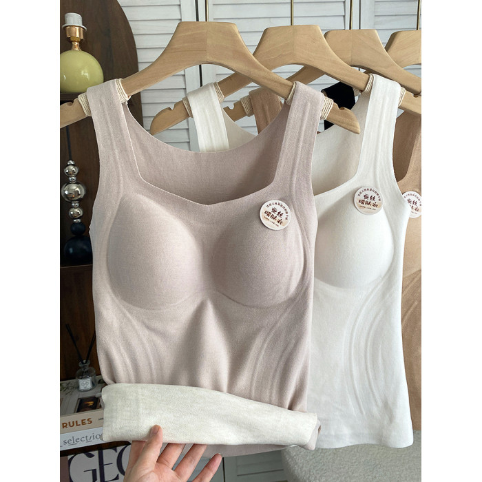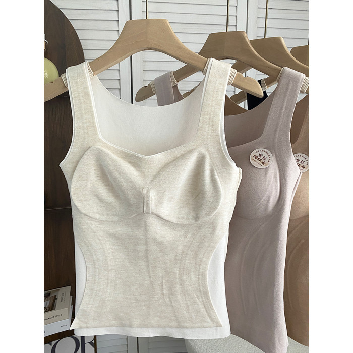 無痕磨毛保暖背心女內搭加厚貼片暖膚衣冬季加絨帶胸墊內衣打底