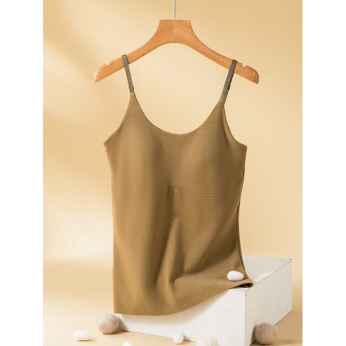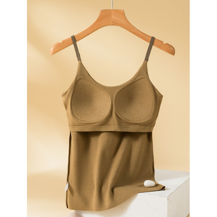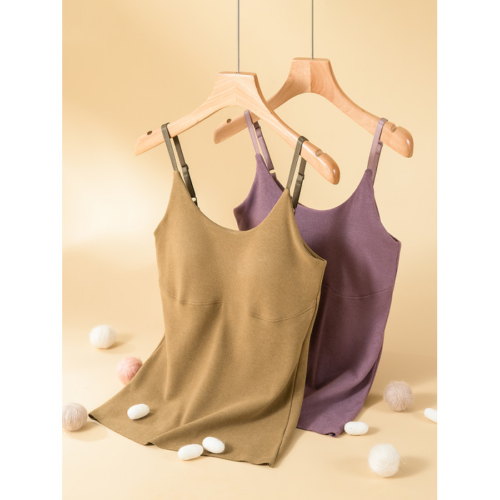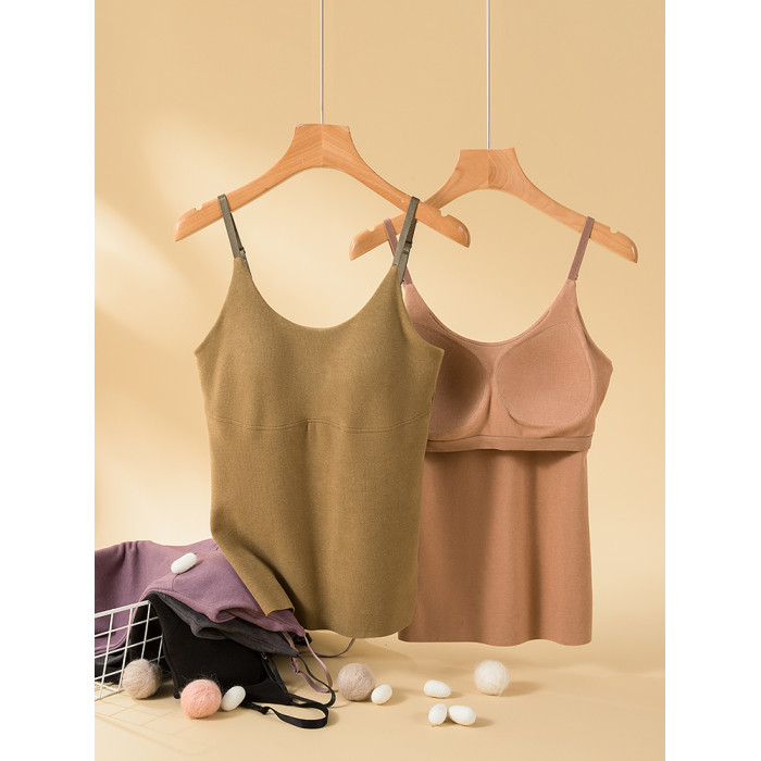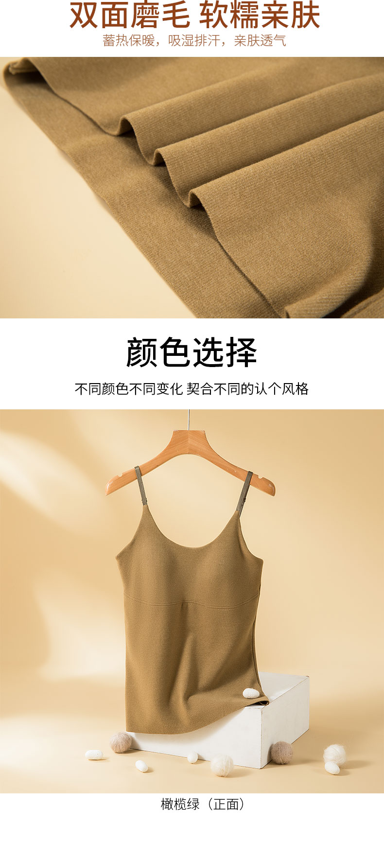 德絨保暖內衣女冬加絨加厚背心內搭秋衣無痕帶胸墊吊帶上衣打底衫