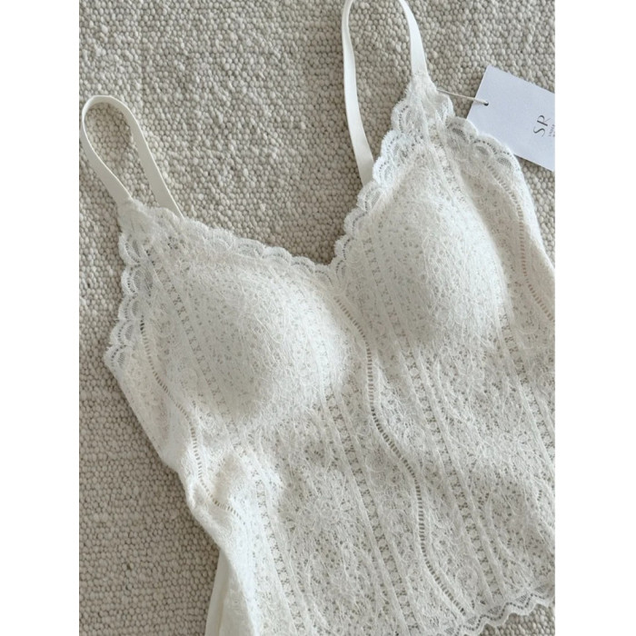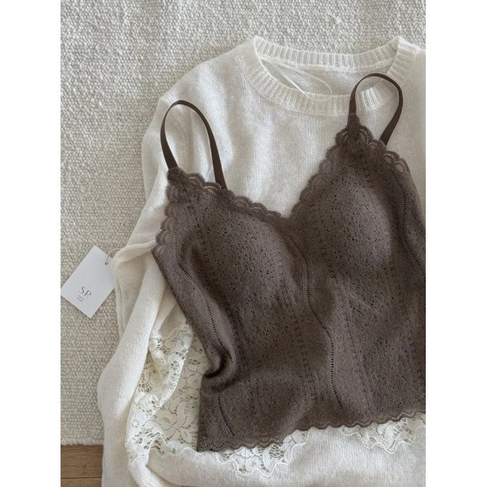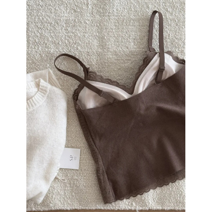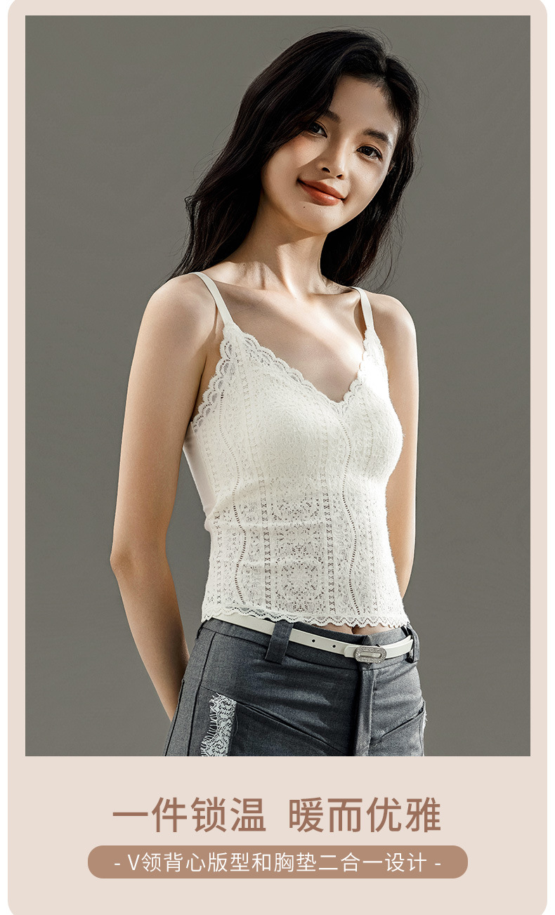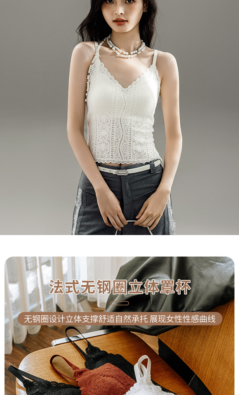毛絨絨蕾絲法式內搭美背內衣女帶胸墊顯瘦吊帶背心可外穿保暖打底
