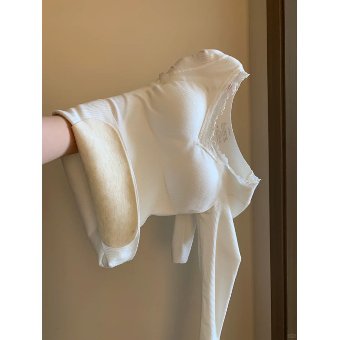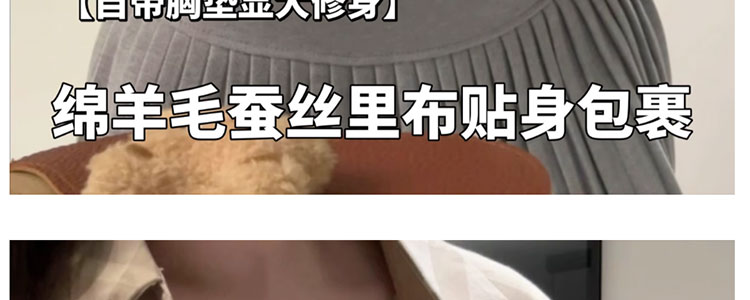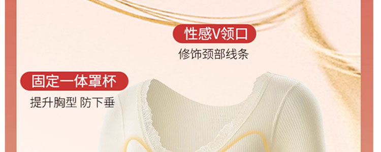 羊絨蠶絲保暖內衣女加絨加厚秋衣秋褲套裝秋冬季帶胸墊打底內搭衫