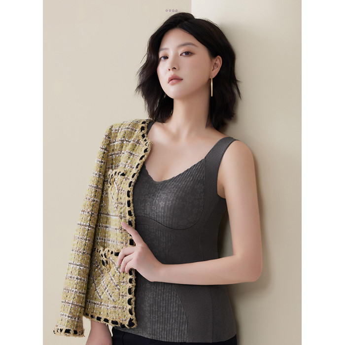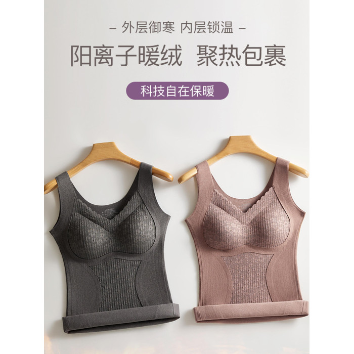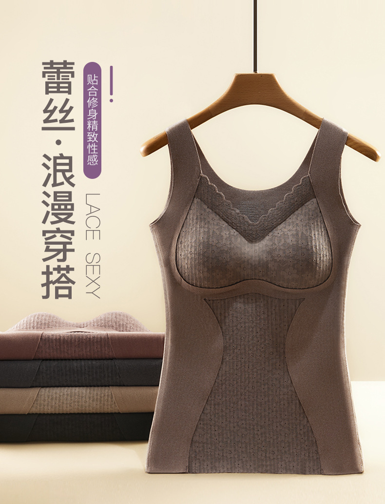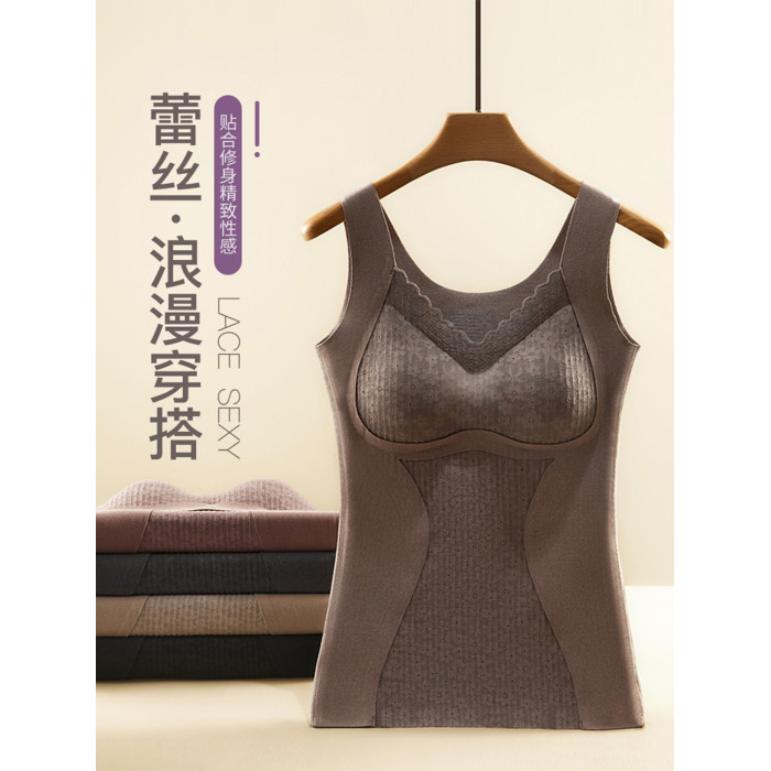 蕾絲髮熱保暖背心女帶胸墊2025年秋冬一體式內搭吊帶內衣收腹打底