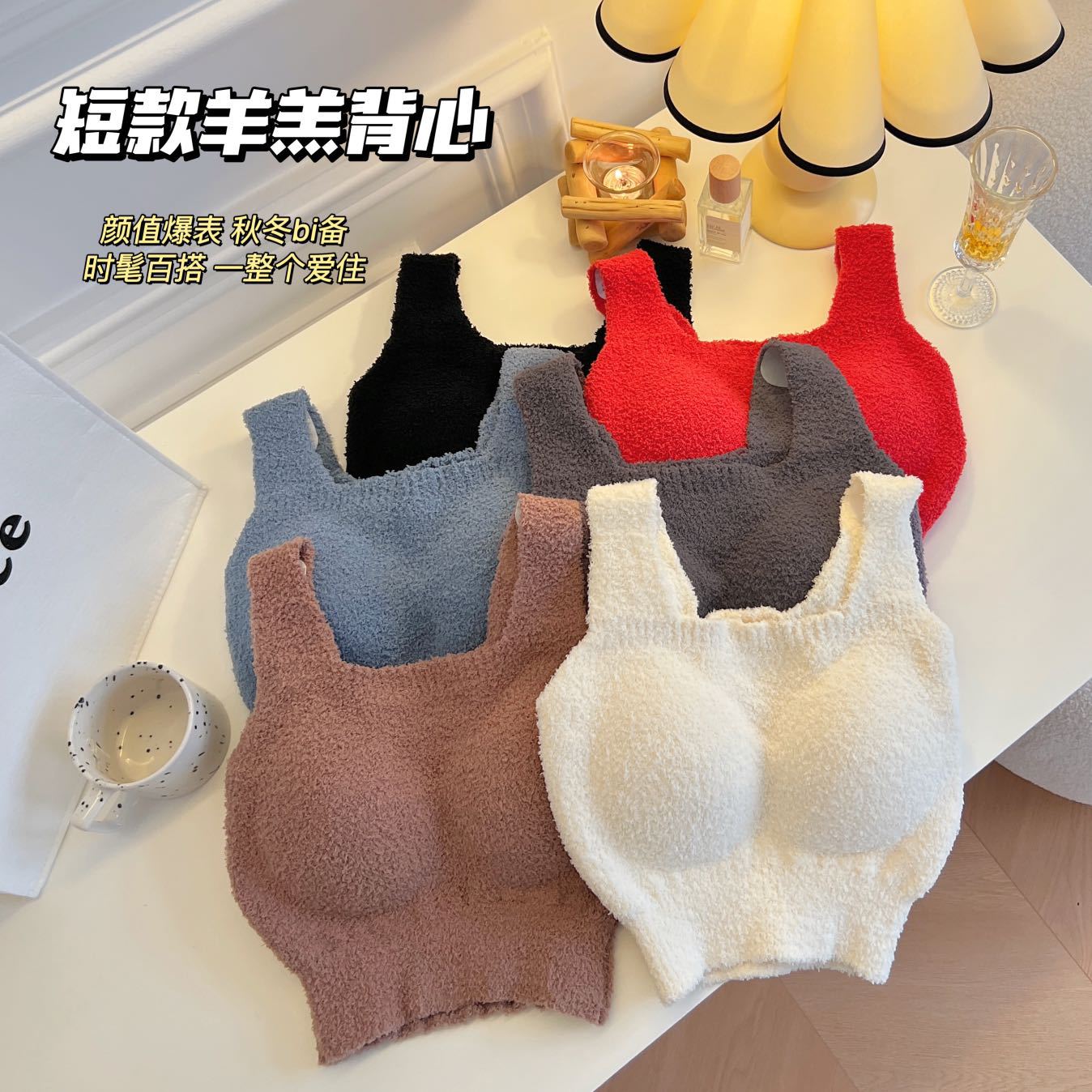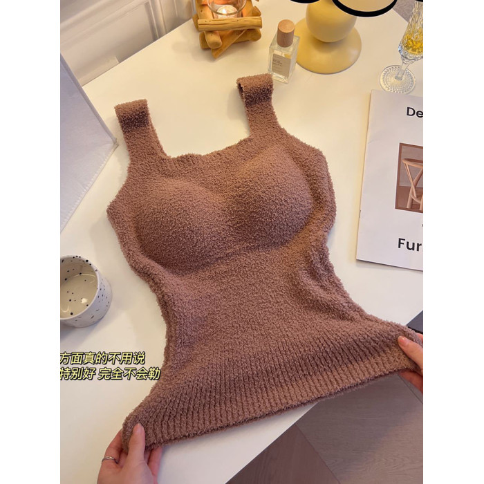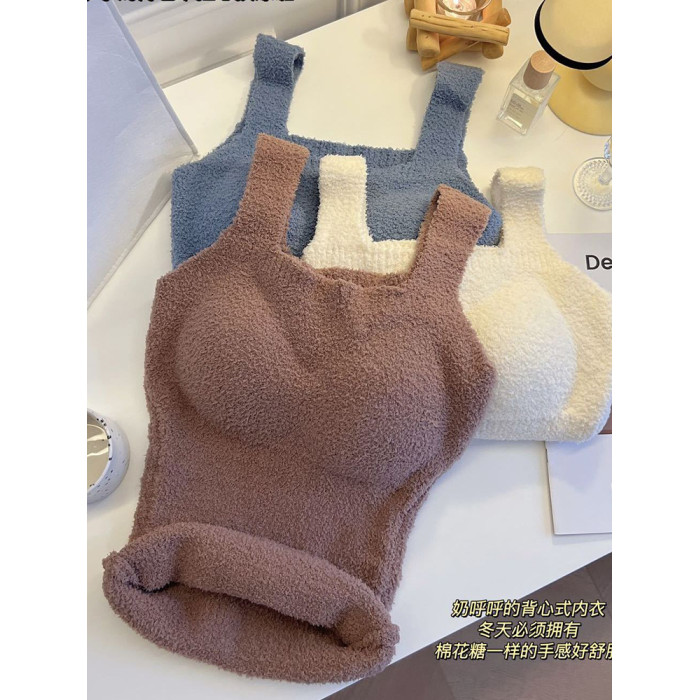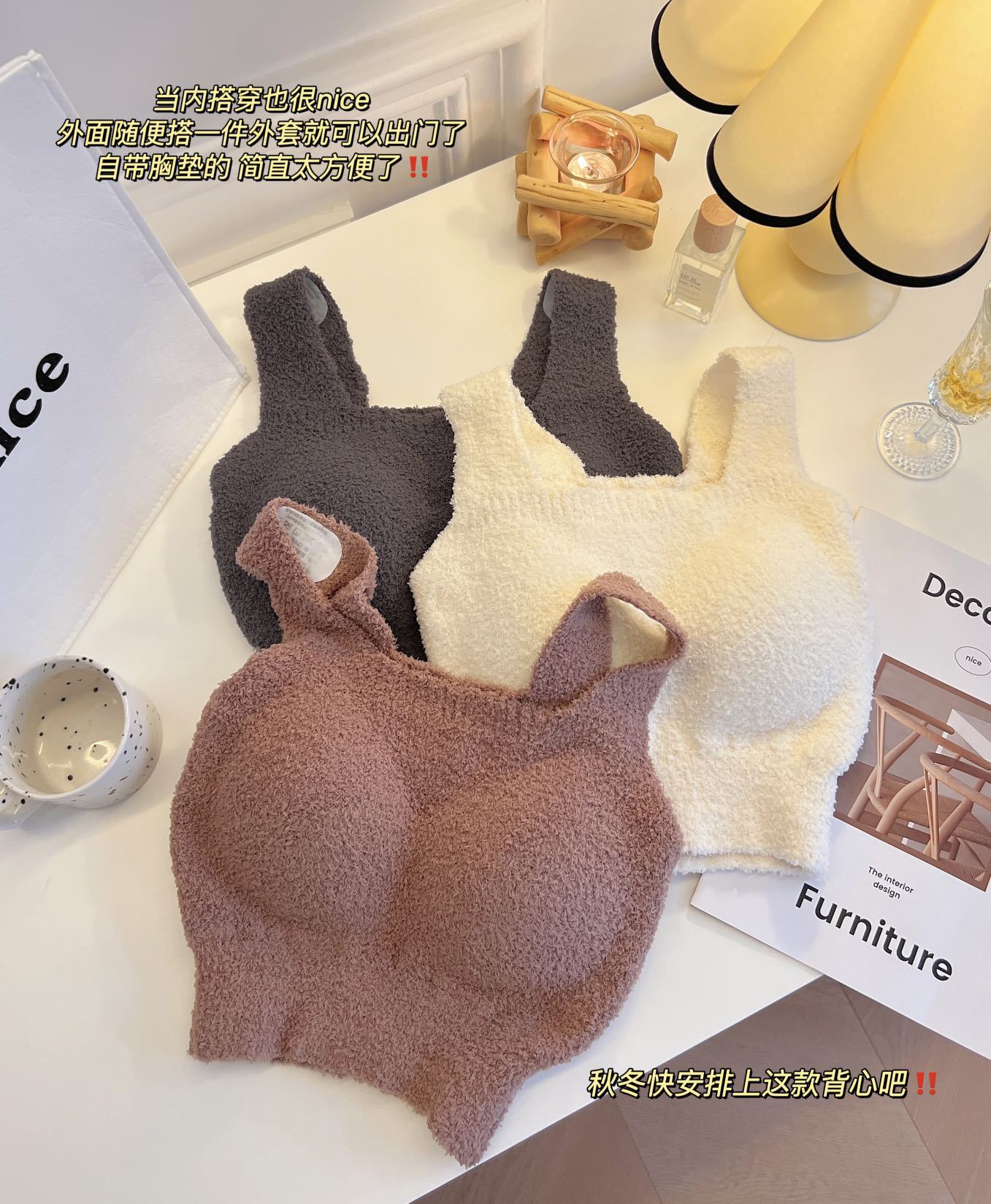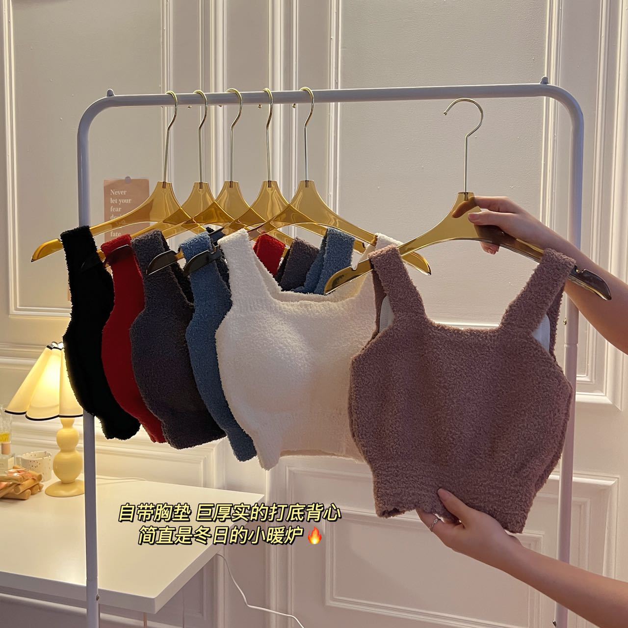 加絨吊帶背心帶胸墊羊羔絨毛絨保暖打底衫秋冬免穿文胸一體式內搭