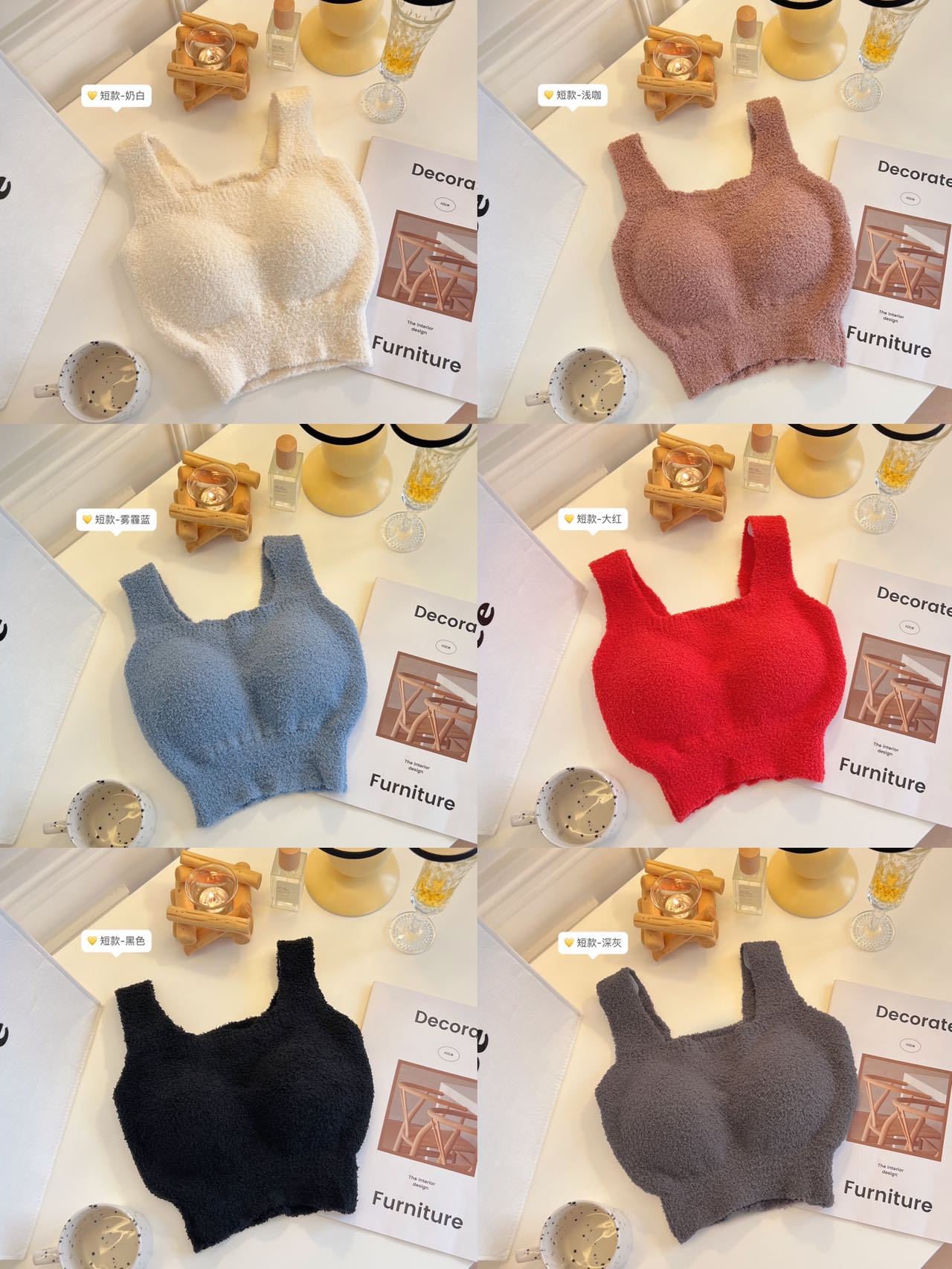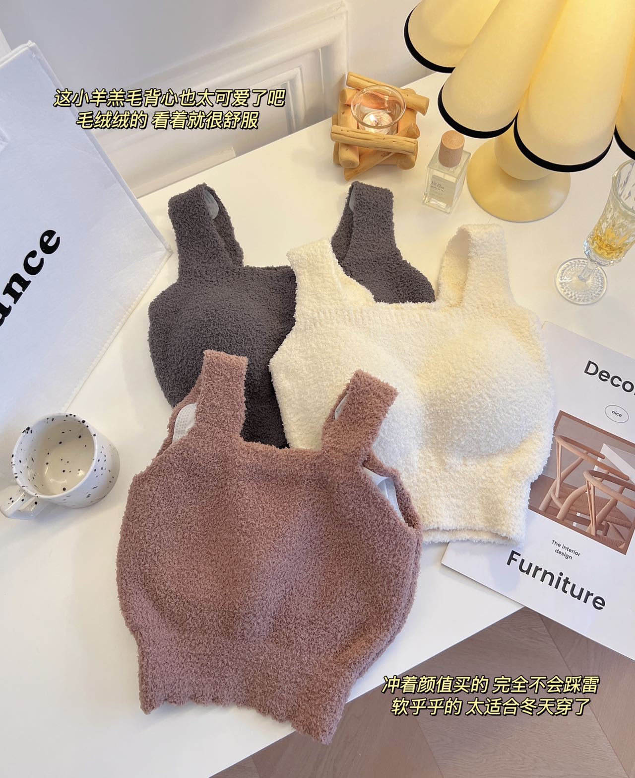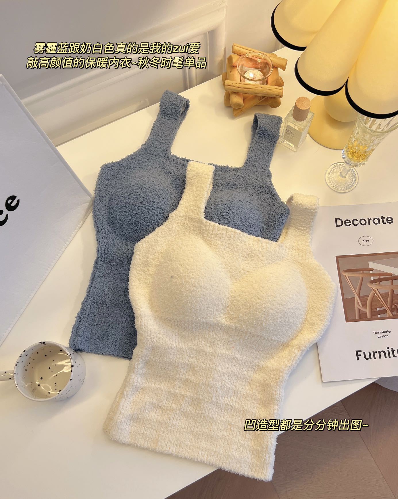 加絨吊帶背心帶胸墊羊羔絨毛絨保暖打底衫秋冬免穿文胸一體式內搭