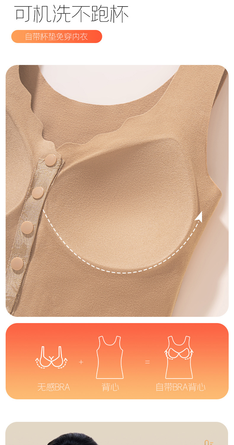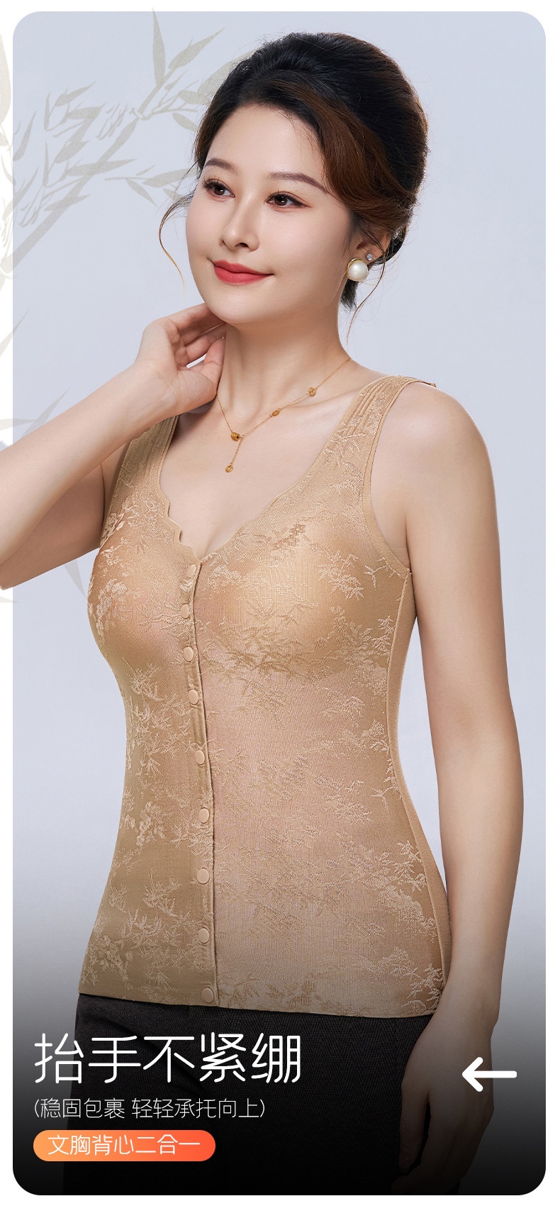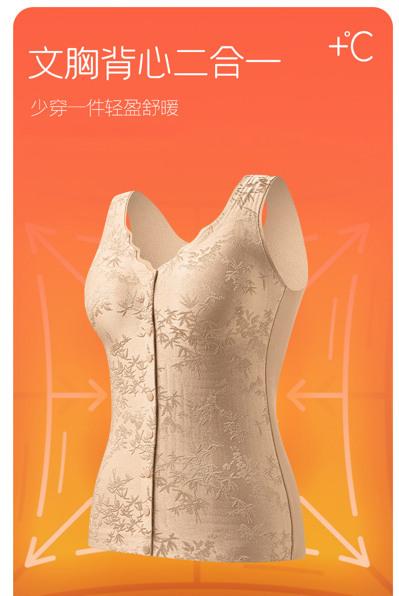 帶胸墊德絨保暖背心女秋冬加絨前開釦內穿馬甲中老年媽媽文胸一體