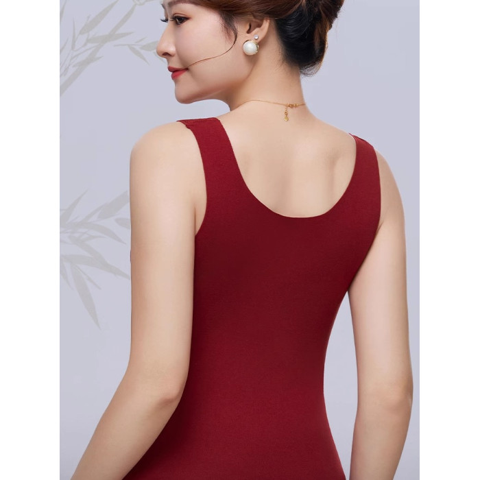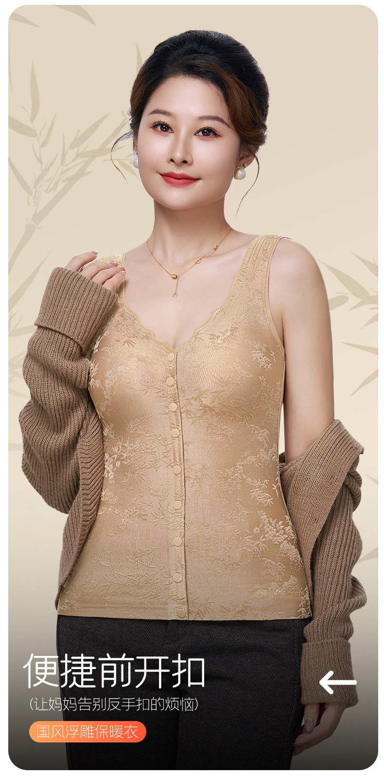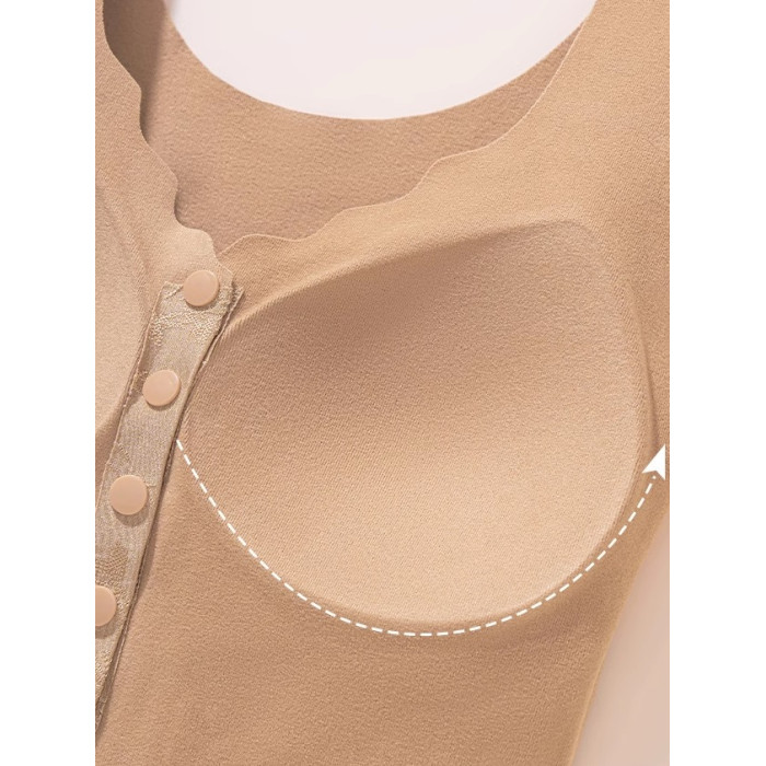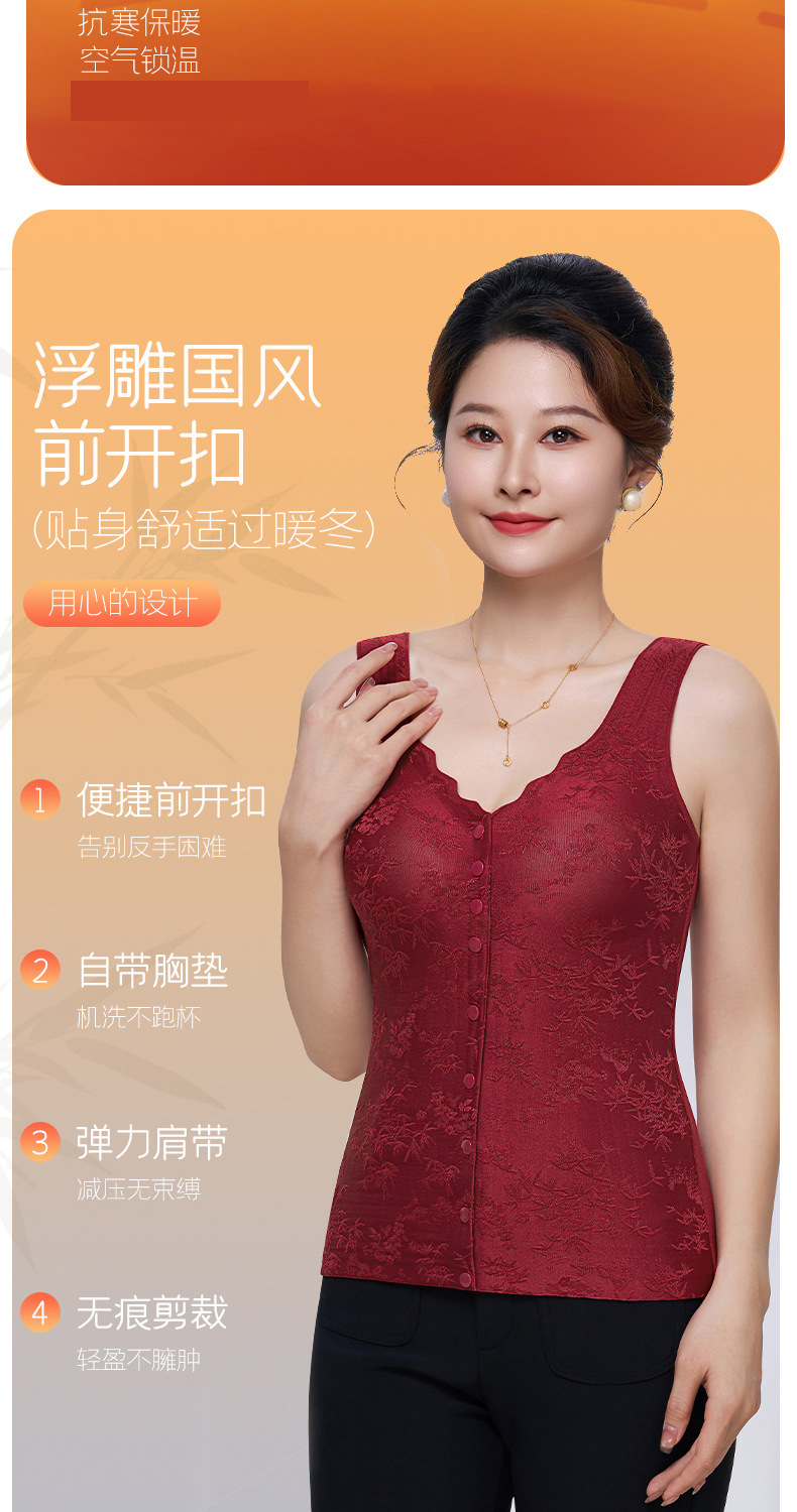 帶胸墊德絨保暖背心女秋冬加絨前開釦內穿馬甲中老年媽媽文胸一體