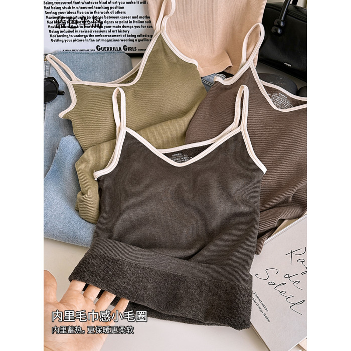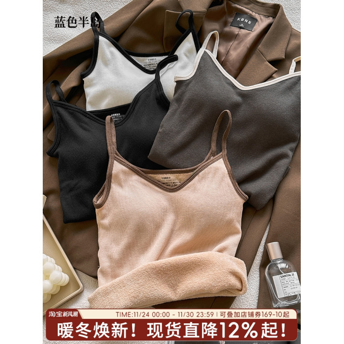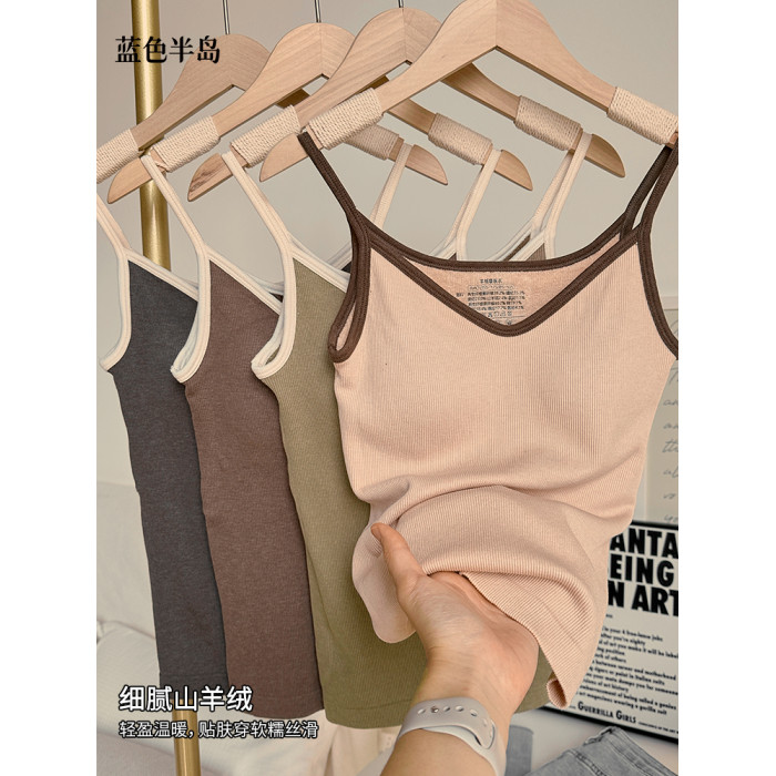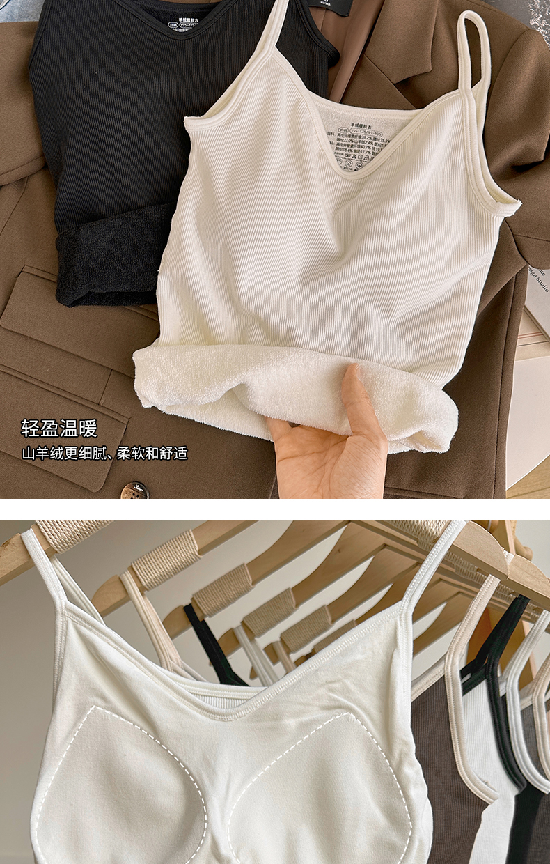 保暖背心女秋冬無痕打底羊絨高彈女士打底秋衣親膚透氣帶罩杯女生