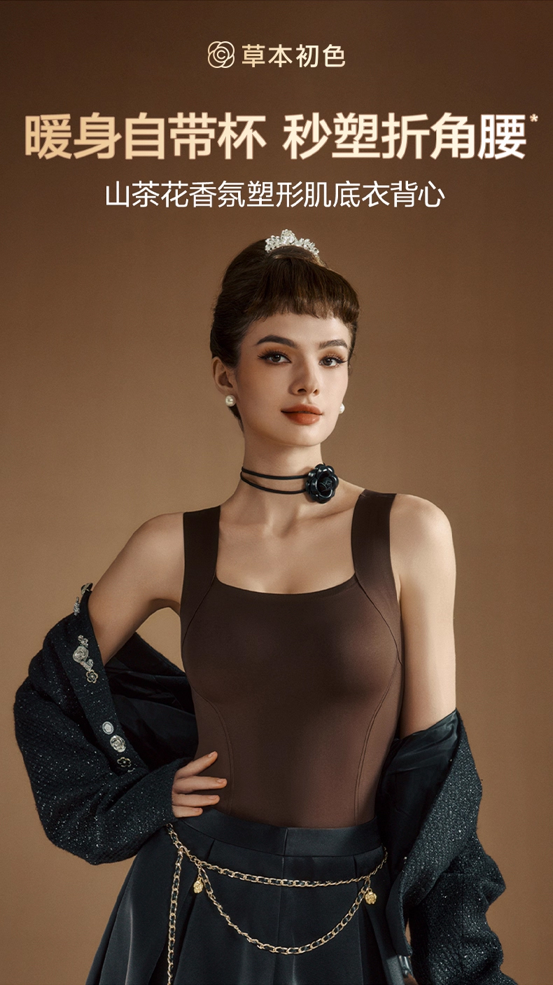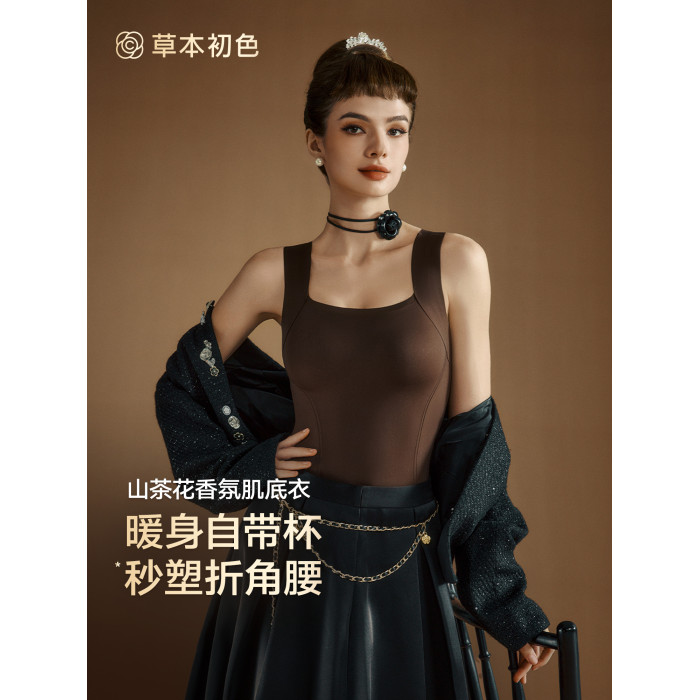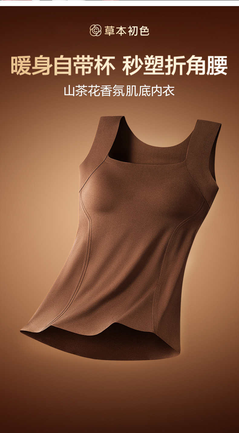 草本初色保暖內衣女士2025新款秋冬背心帶胸墊內搭打底香氛肌底衣