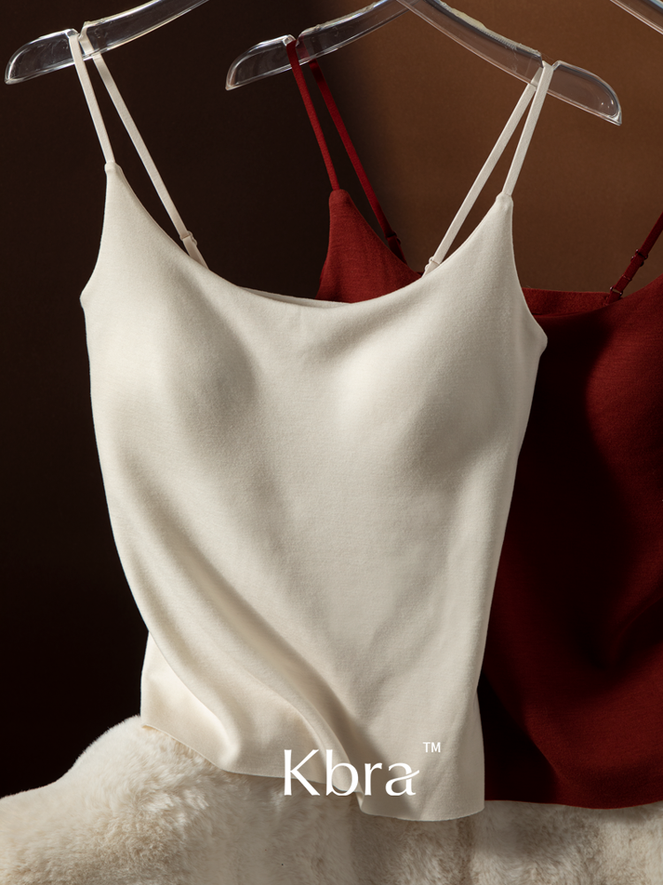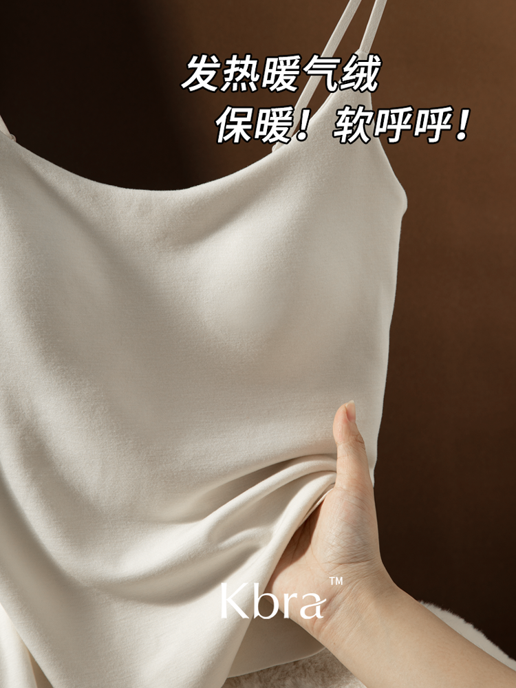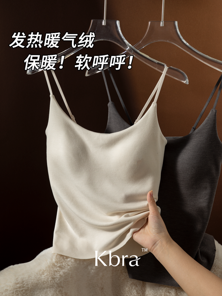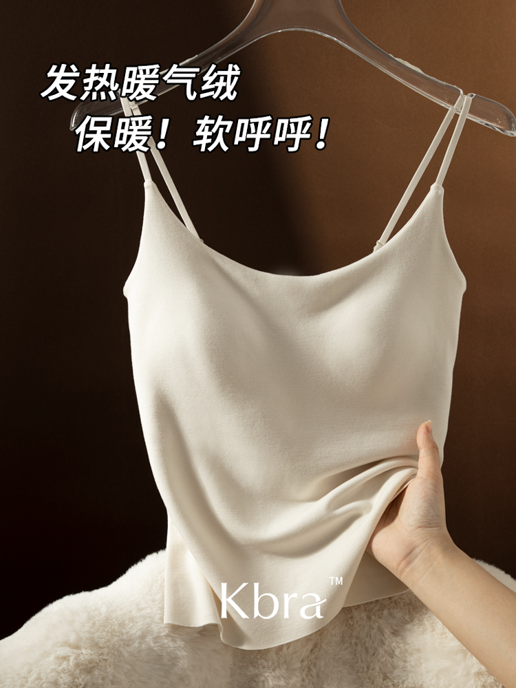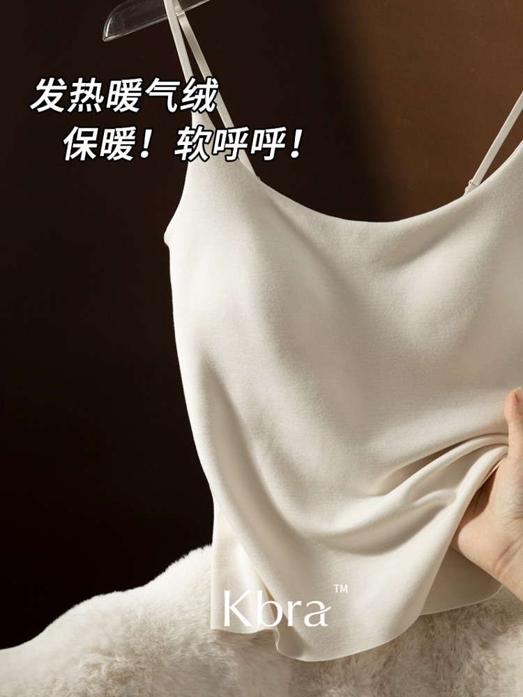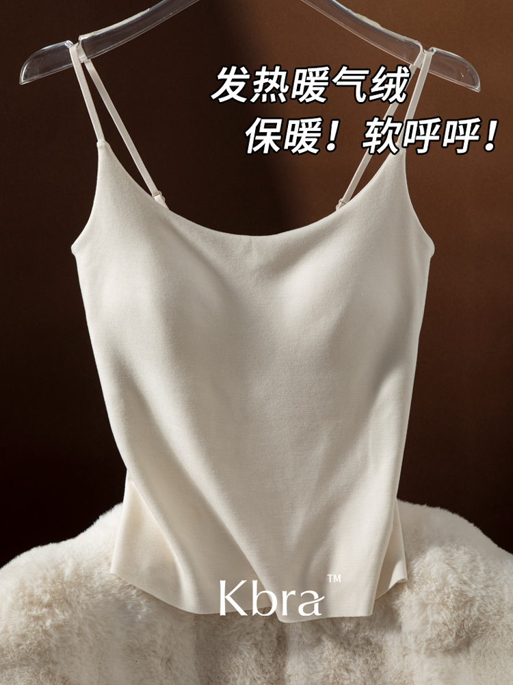 Kbra磨毛保暖吊帶背心女士2025新款冬季帶胸墊打底內搭可外穿上衣