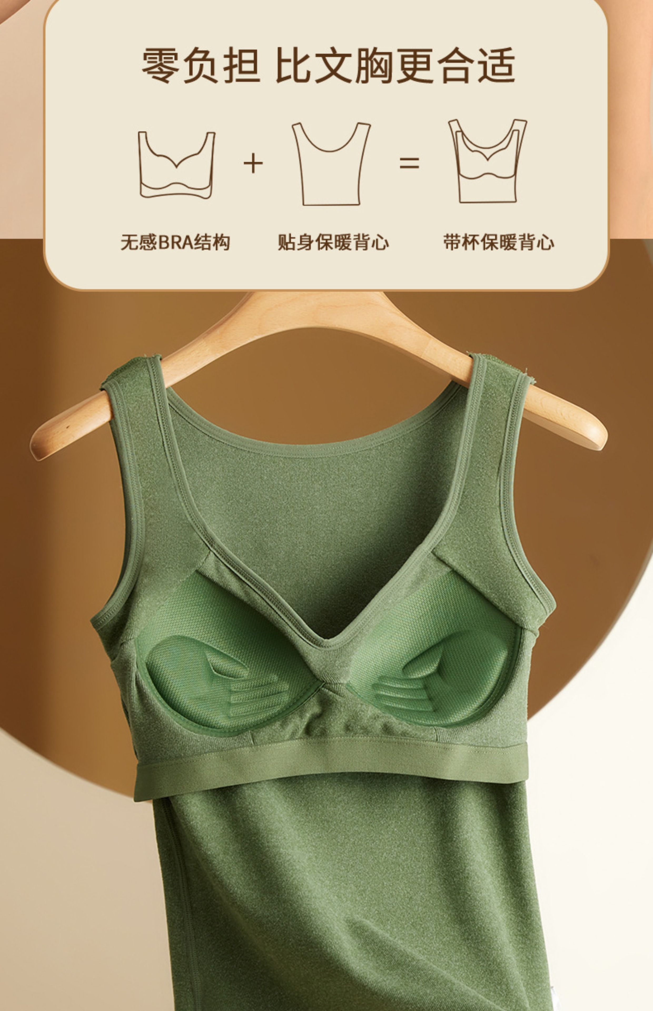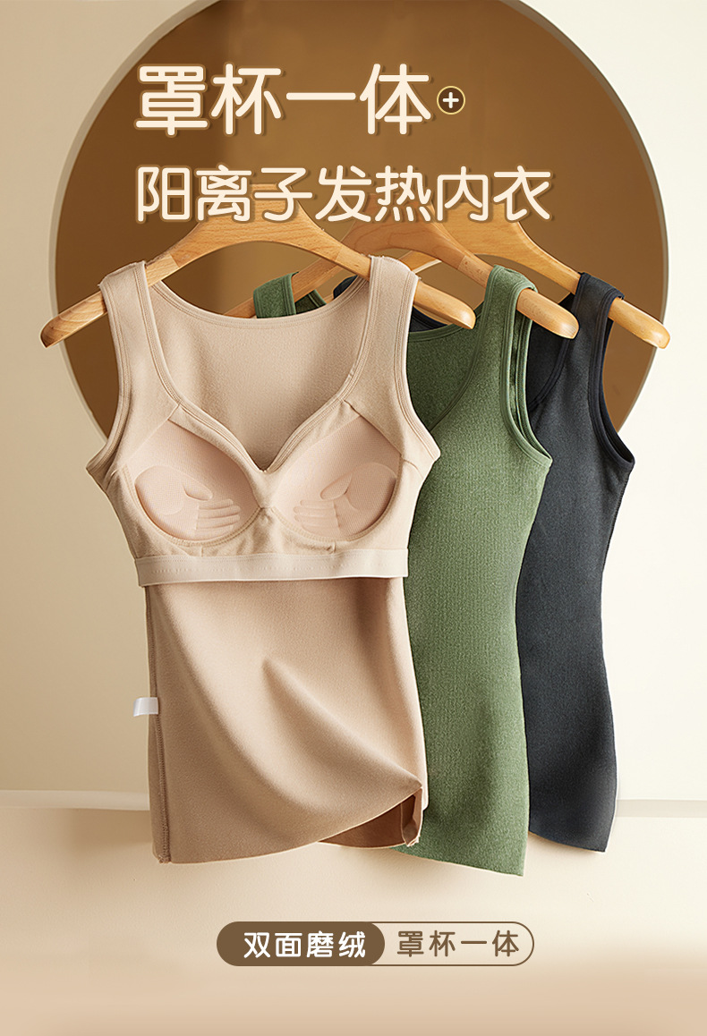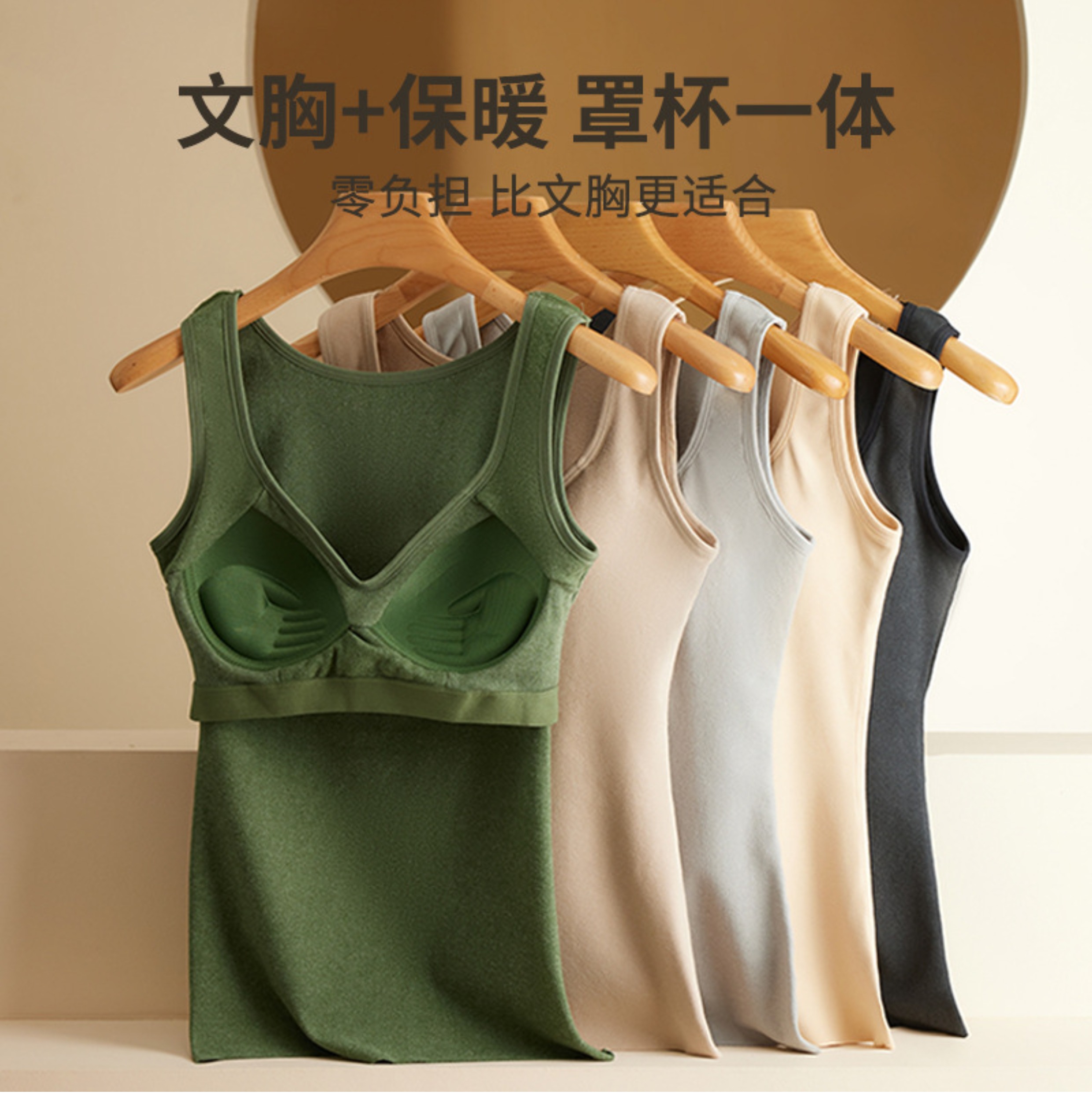 帶胸墊保暖背心女秋冬季德絨陽離子軟糯文胸內衣打底加絨內搭秋衣