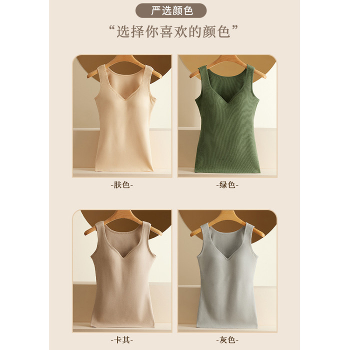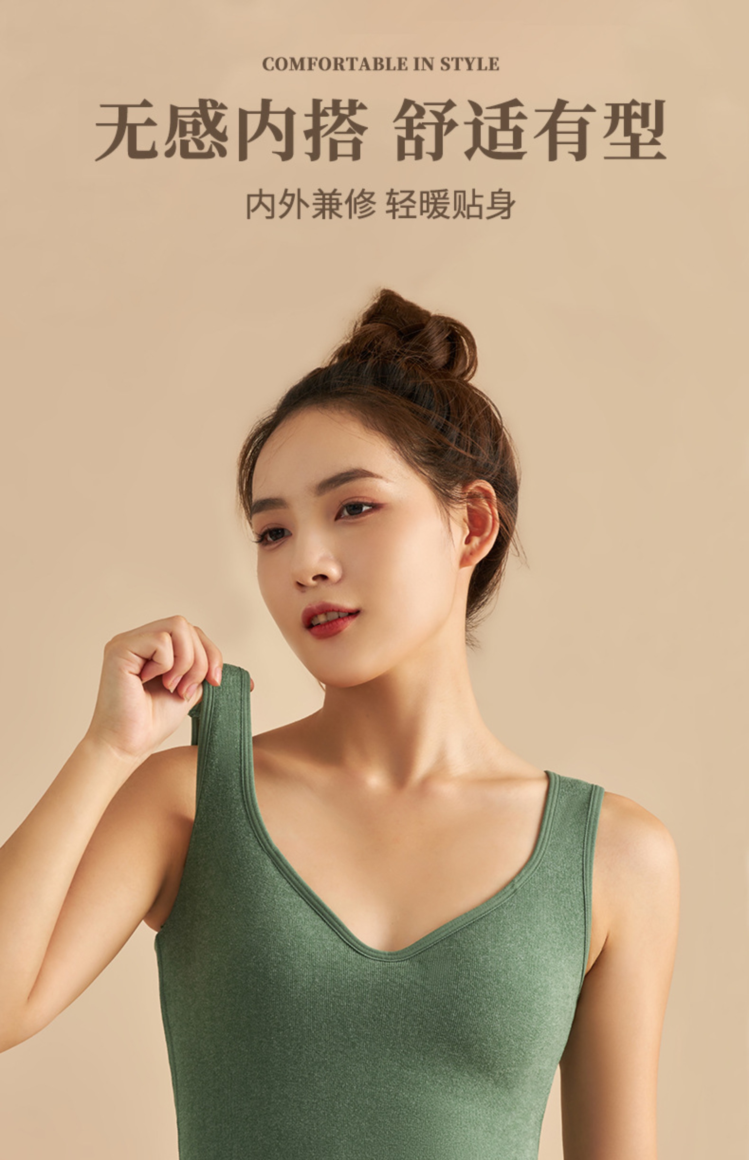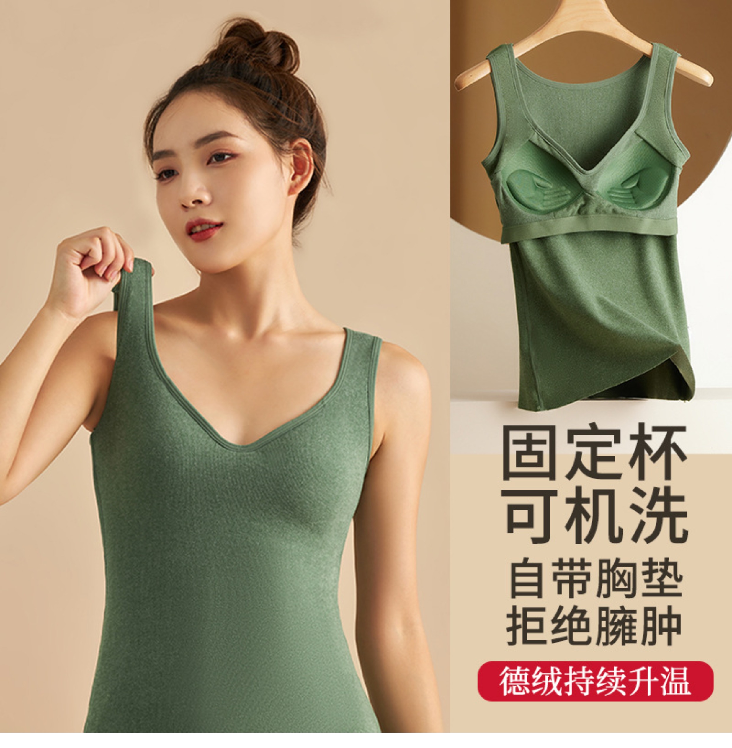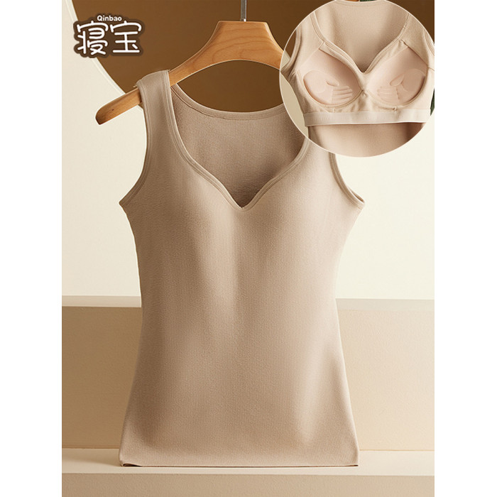 帶胸墊保暖背心女秋冬季德絨陽離子軟糯文胸內衣打底加絨內搭秋衣
