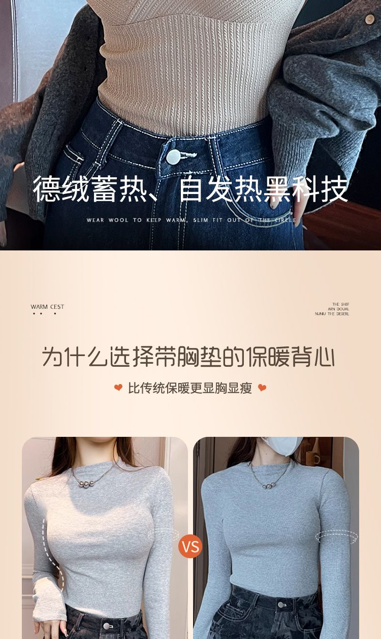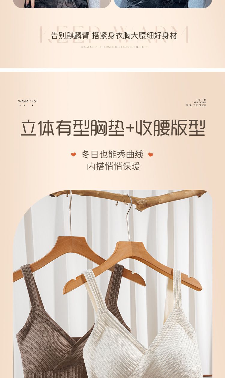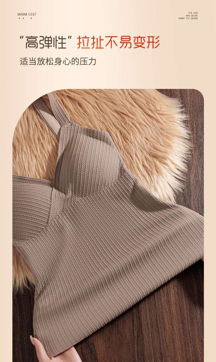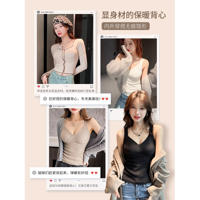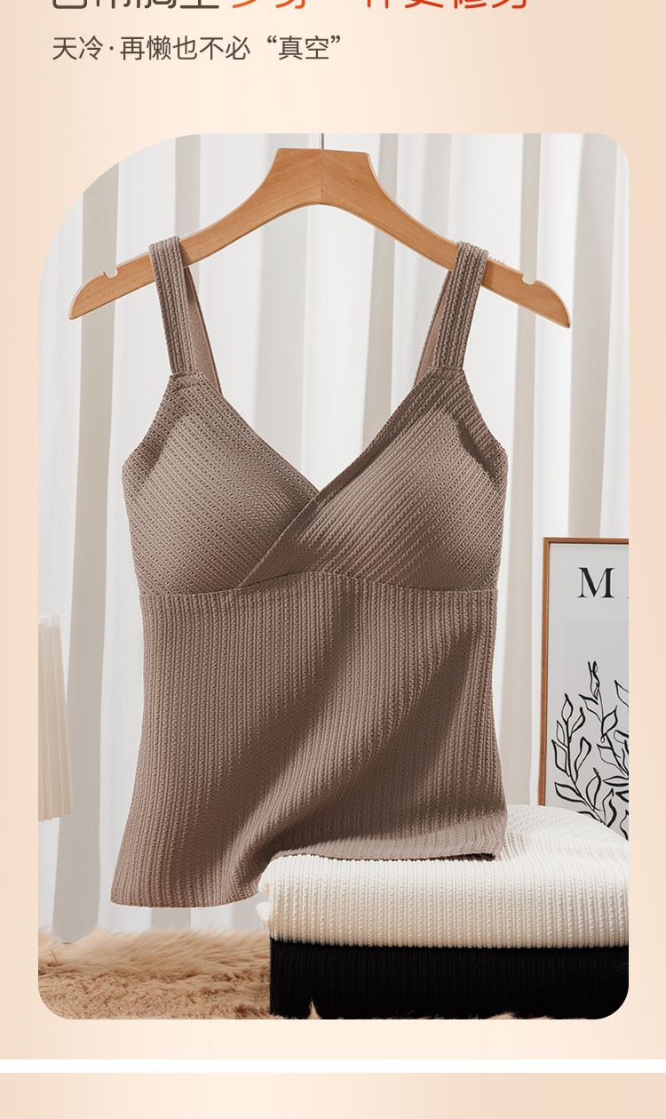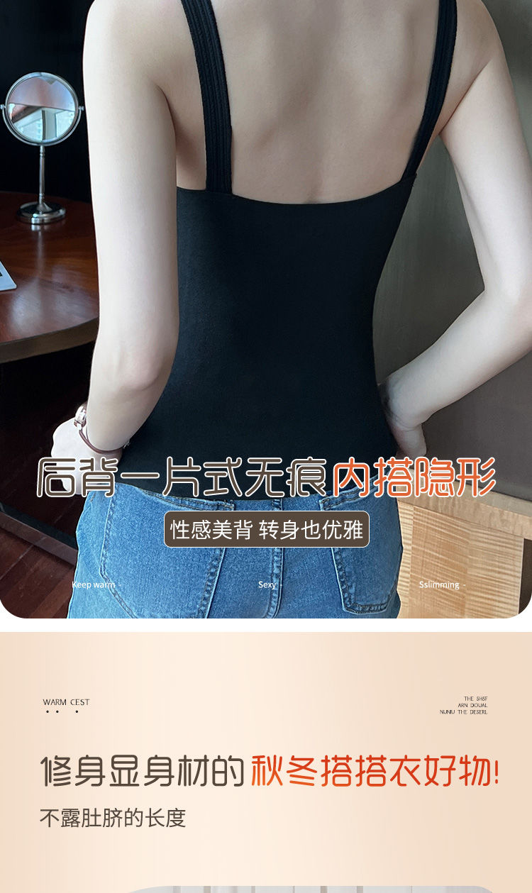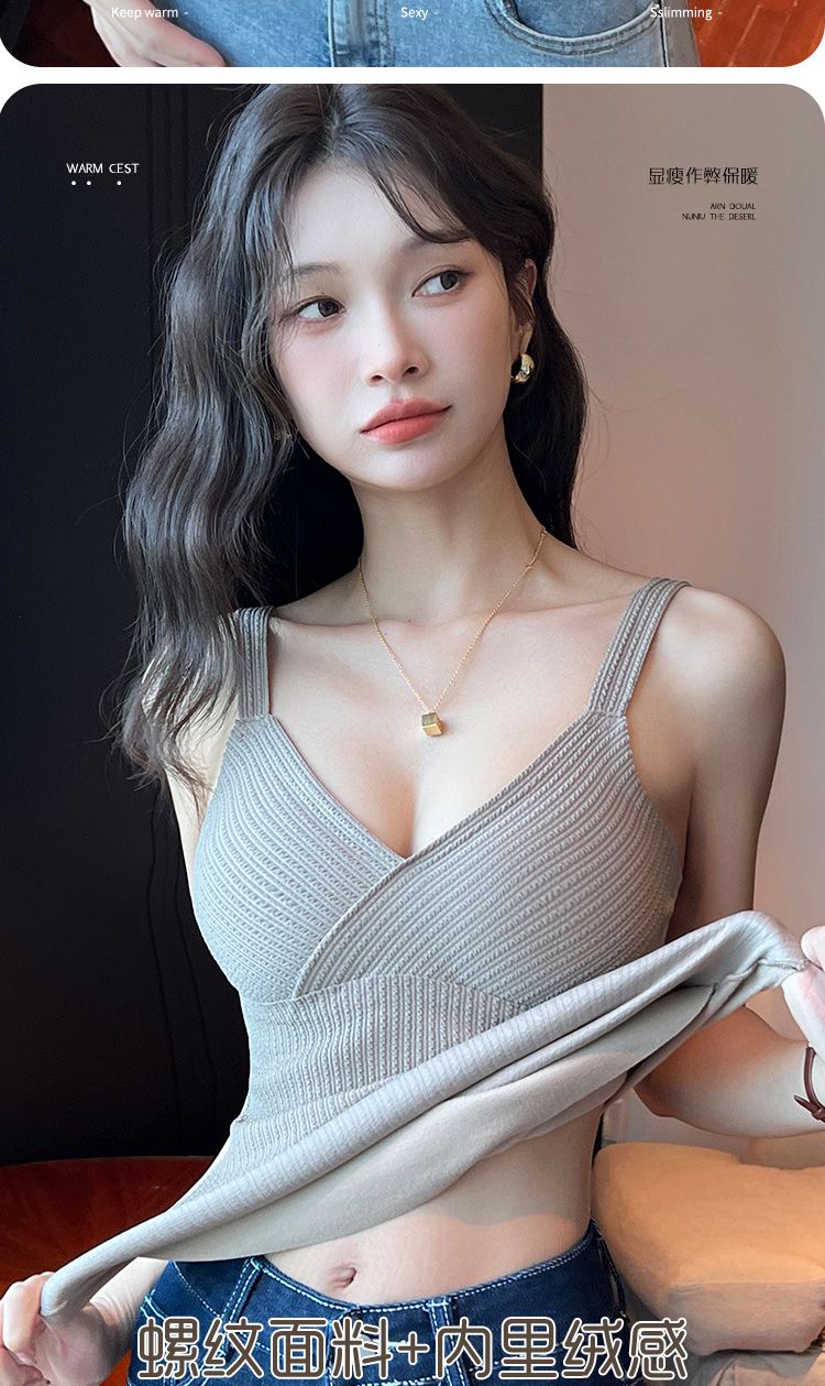 秋冬磨毛德絨保暖V領背心女士自髮熱防寒修身帶胸墊打底無痕吊帶
