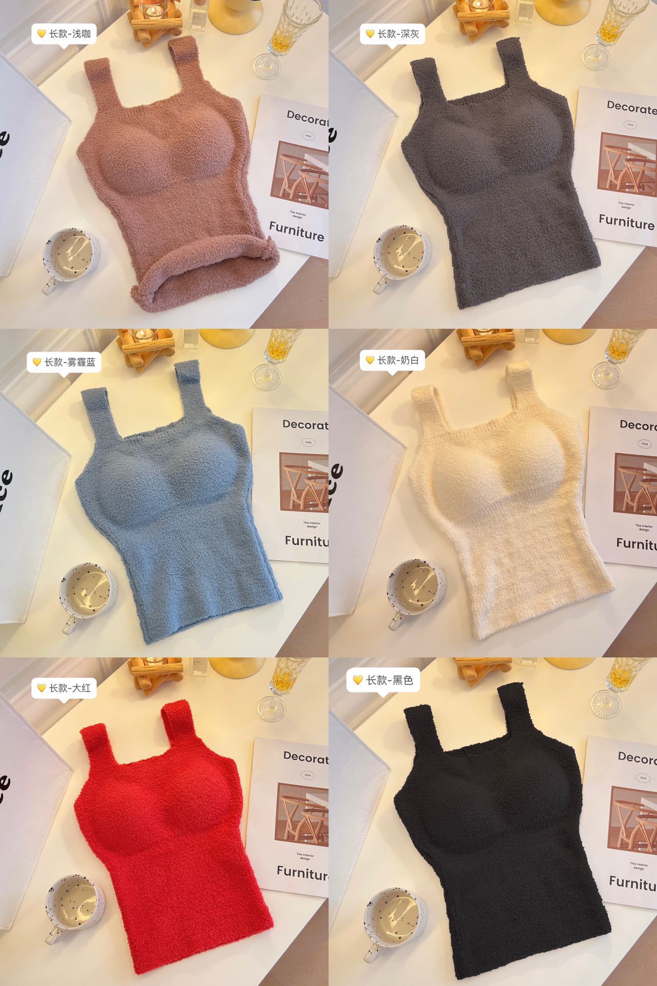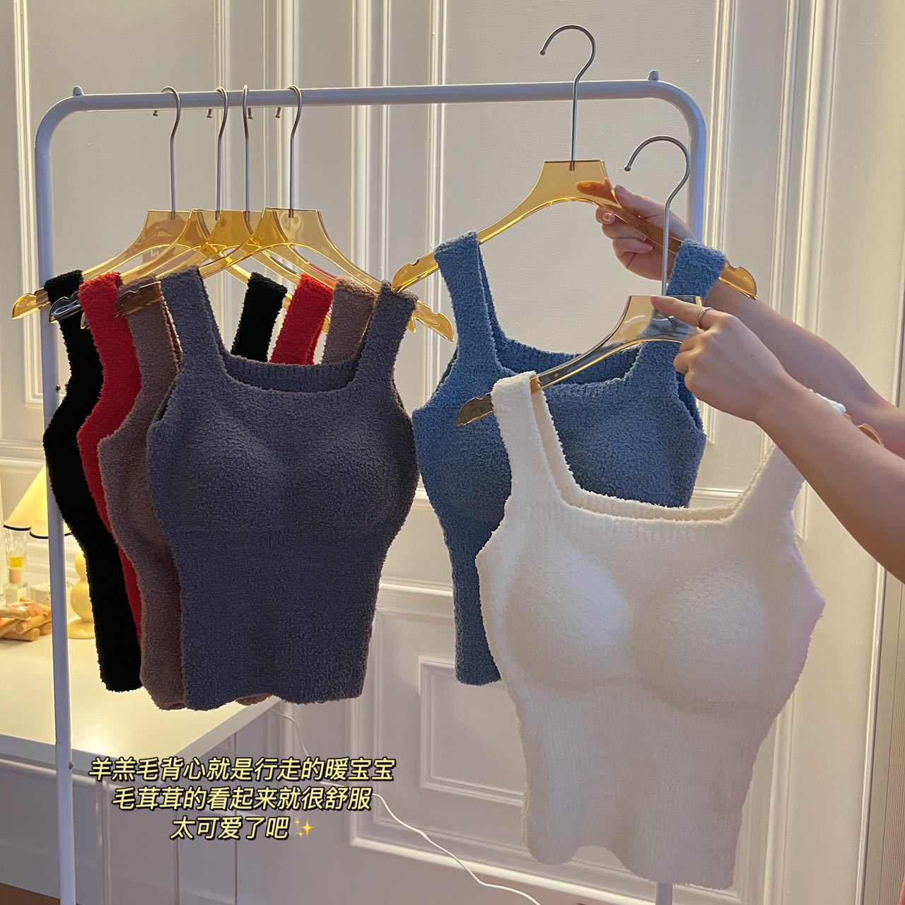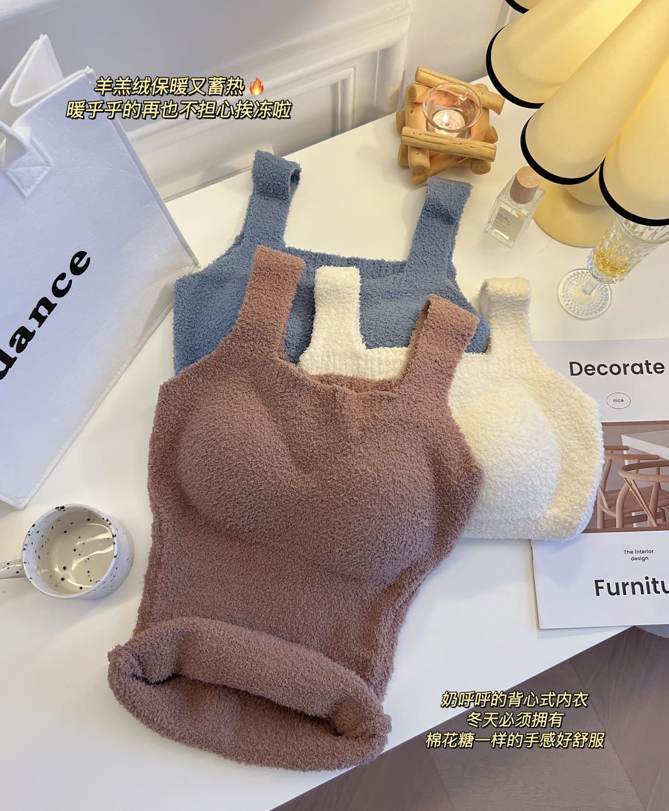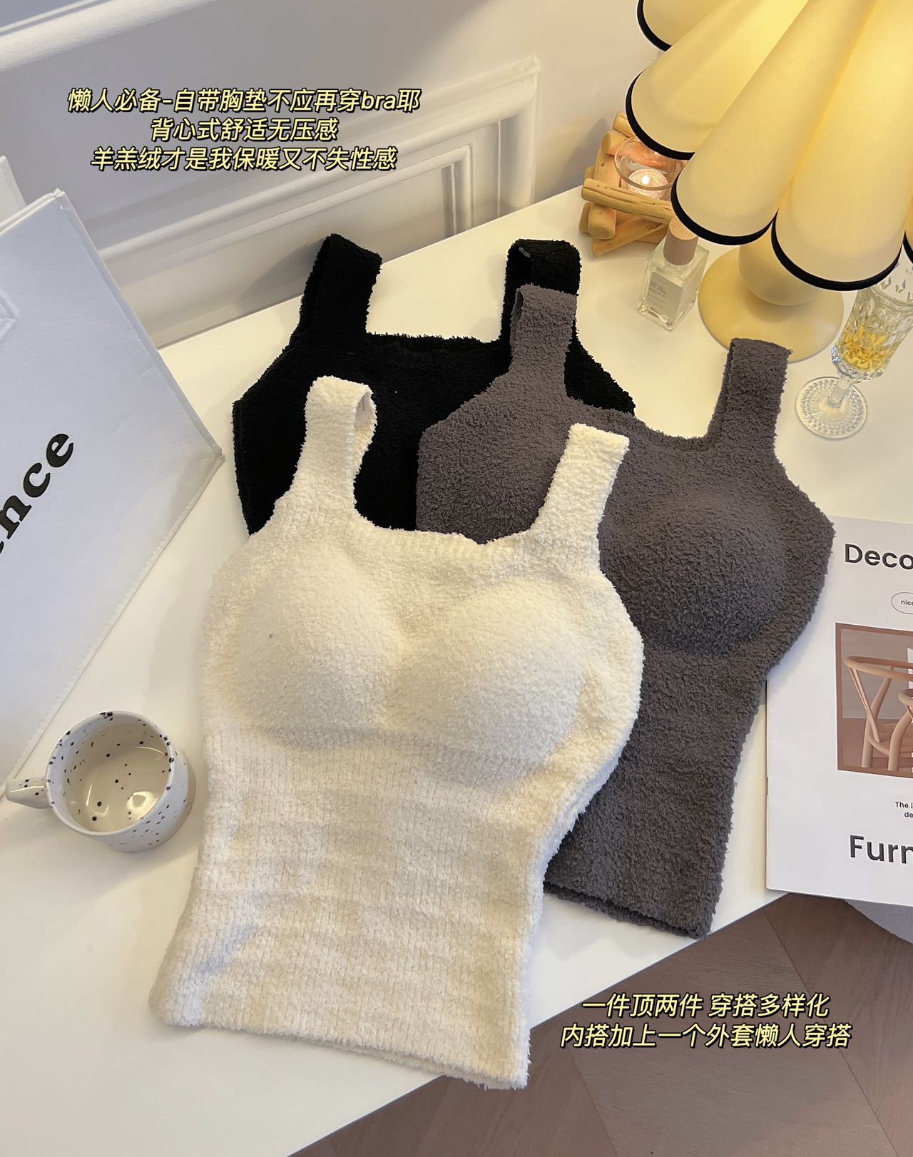 帶胸墊加絨吊帶背心羊羔絨毛絨保暖打底衫秋冬免穿文胸一體式內搭