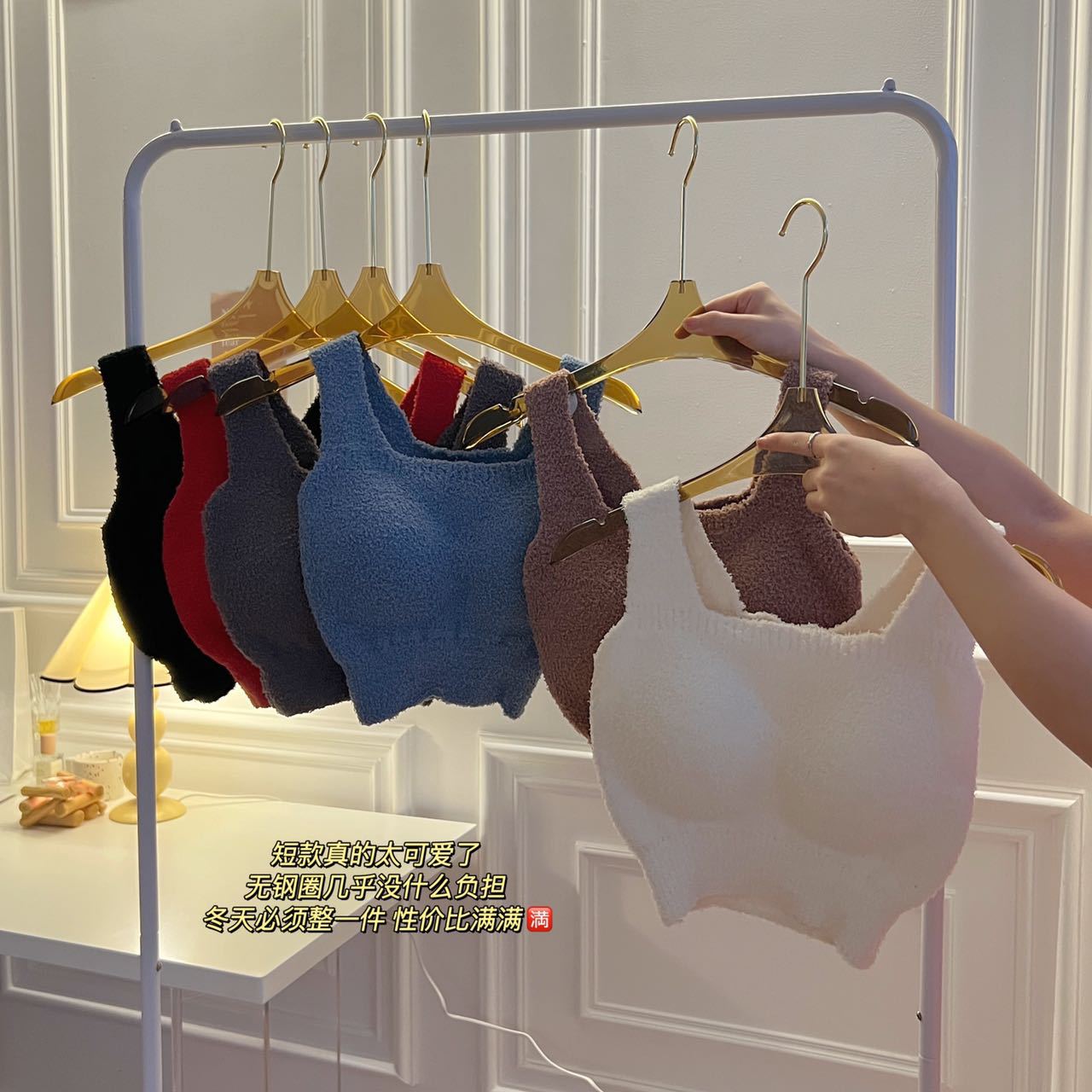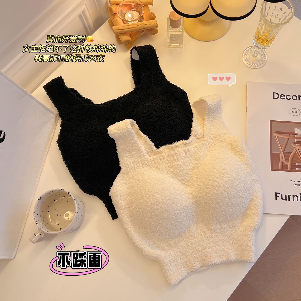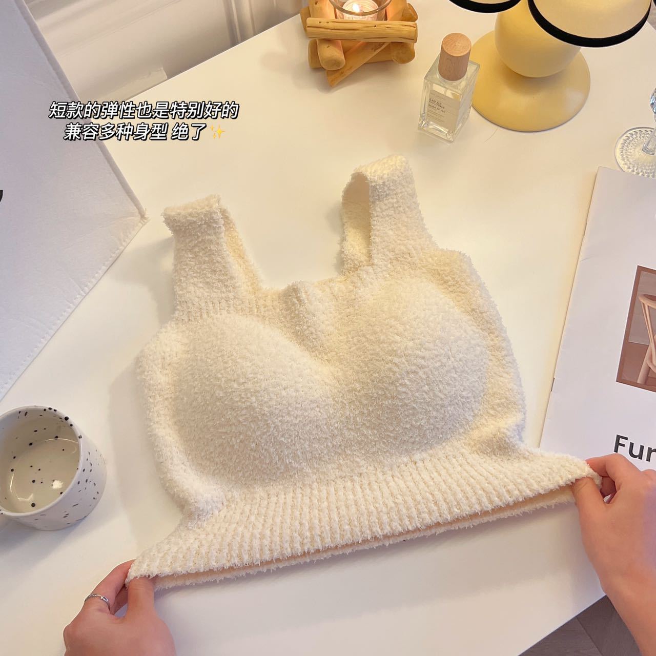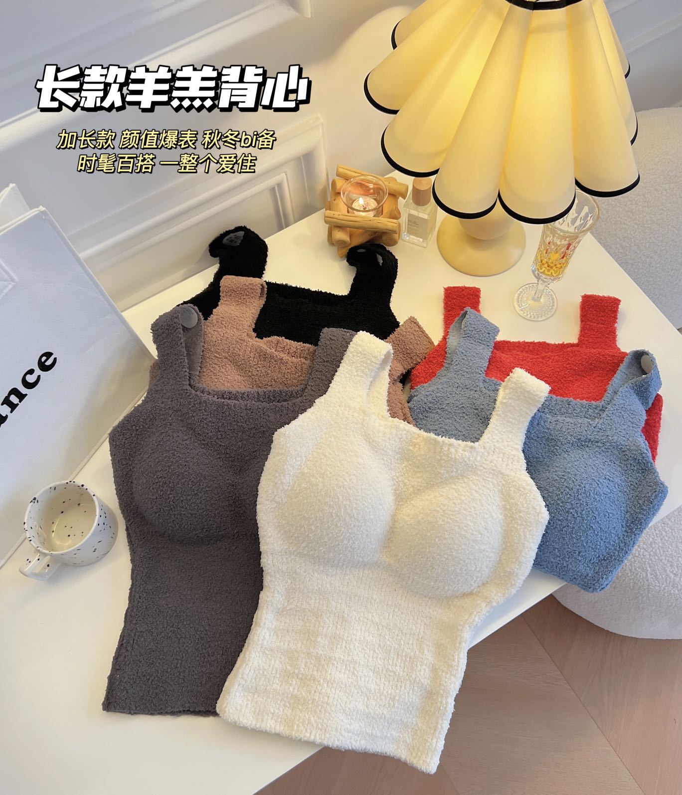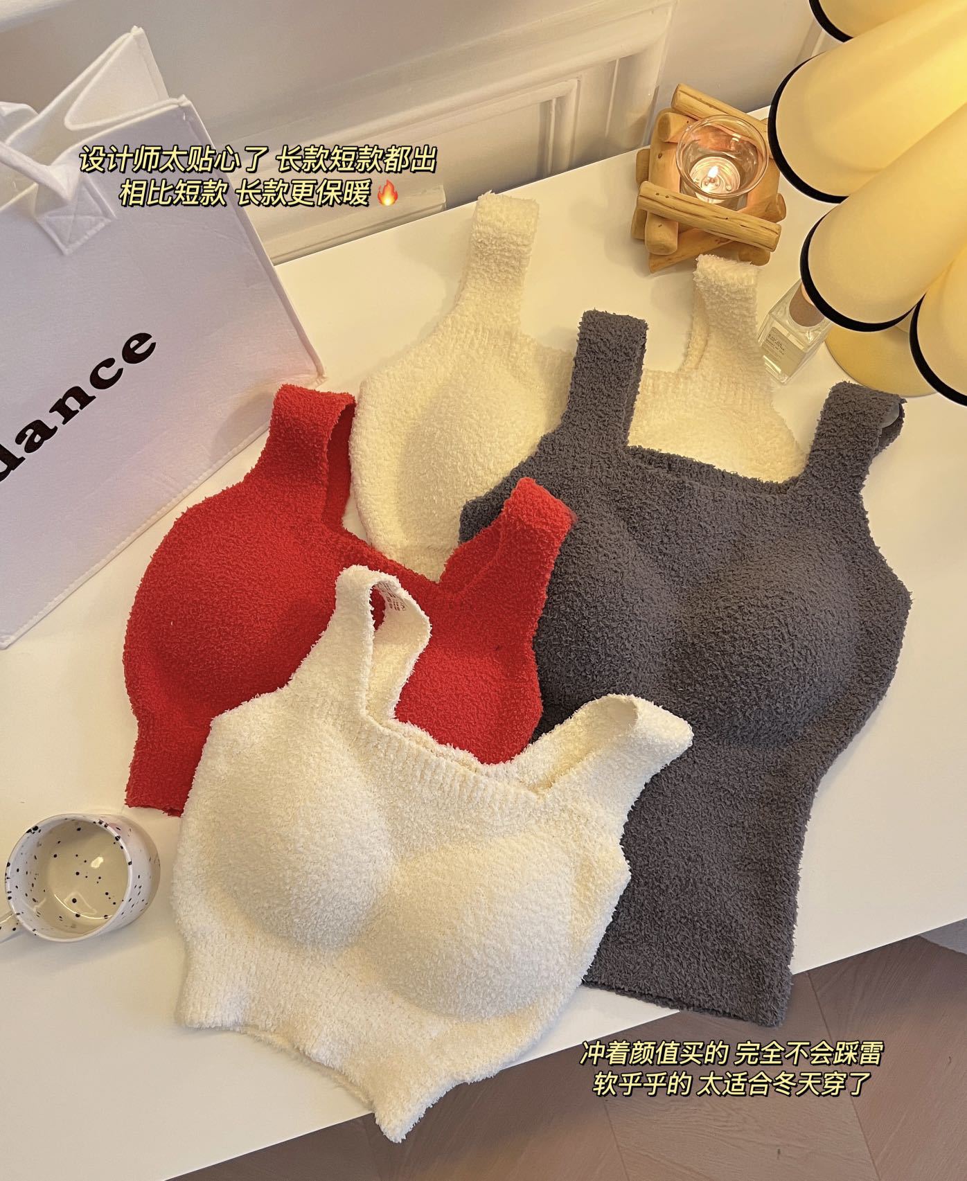 帶胸墊加絨吊帶背心羊羔絨毛絨保暖打底衫秋冬免穿文胸一體式內搭