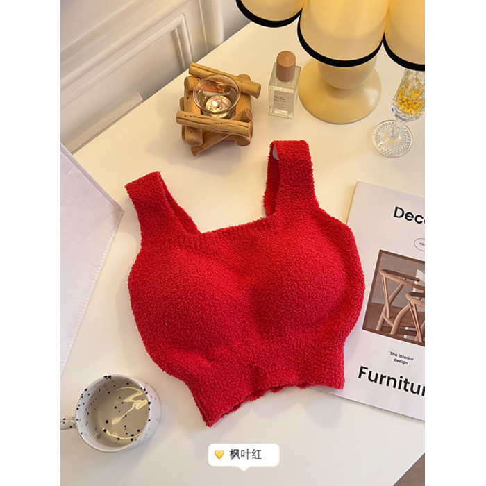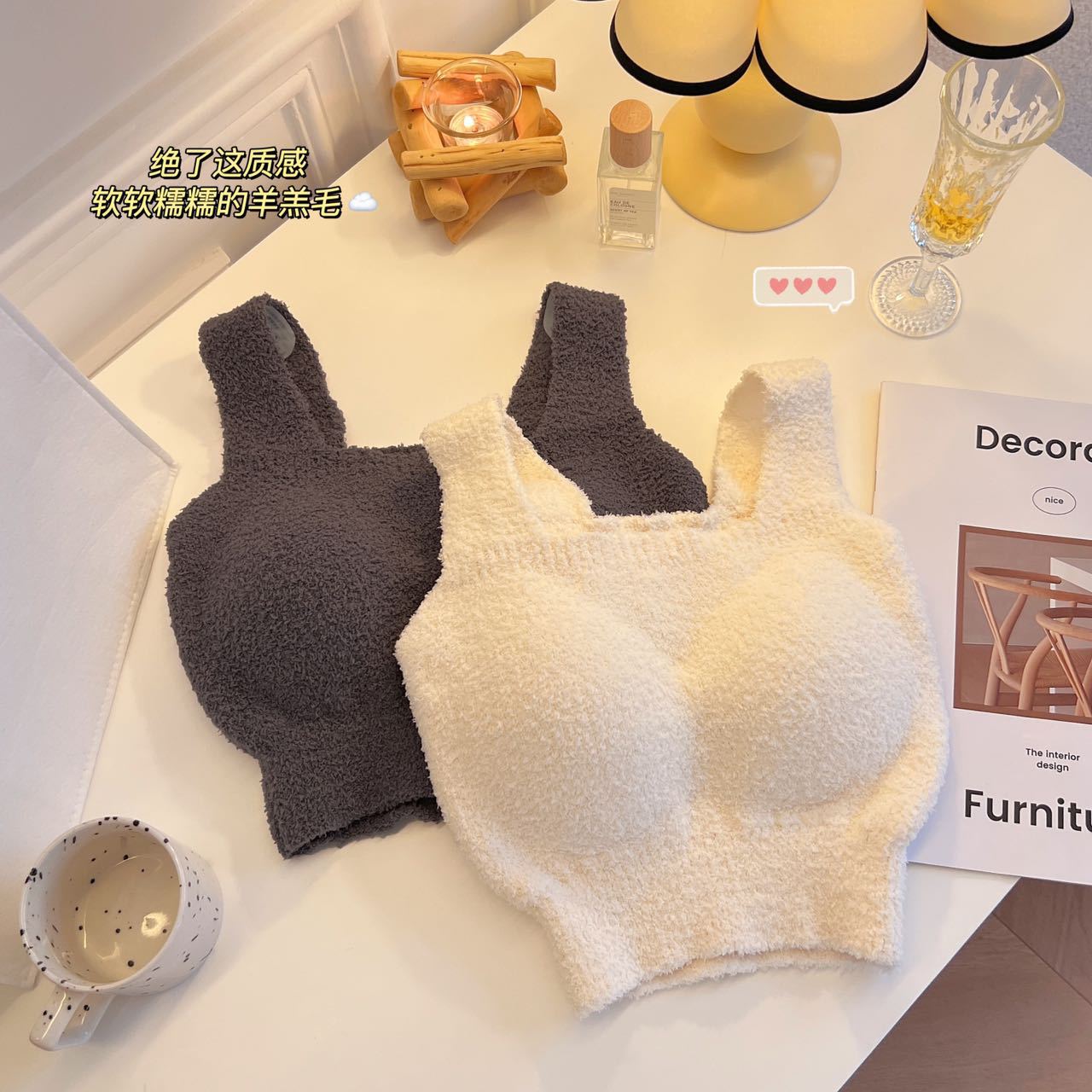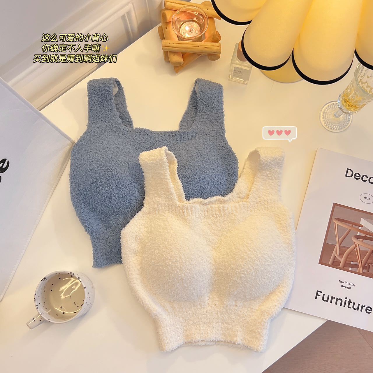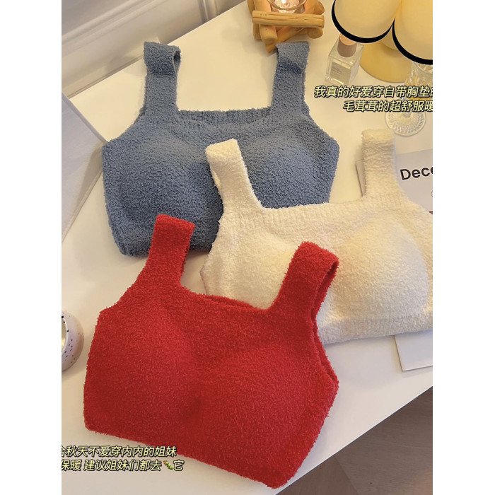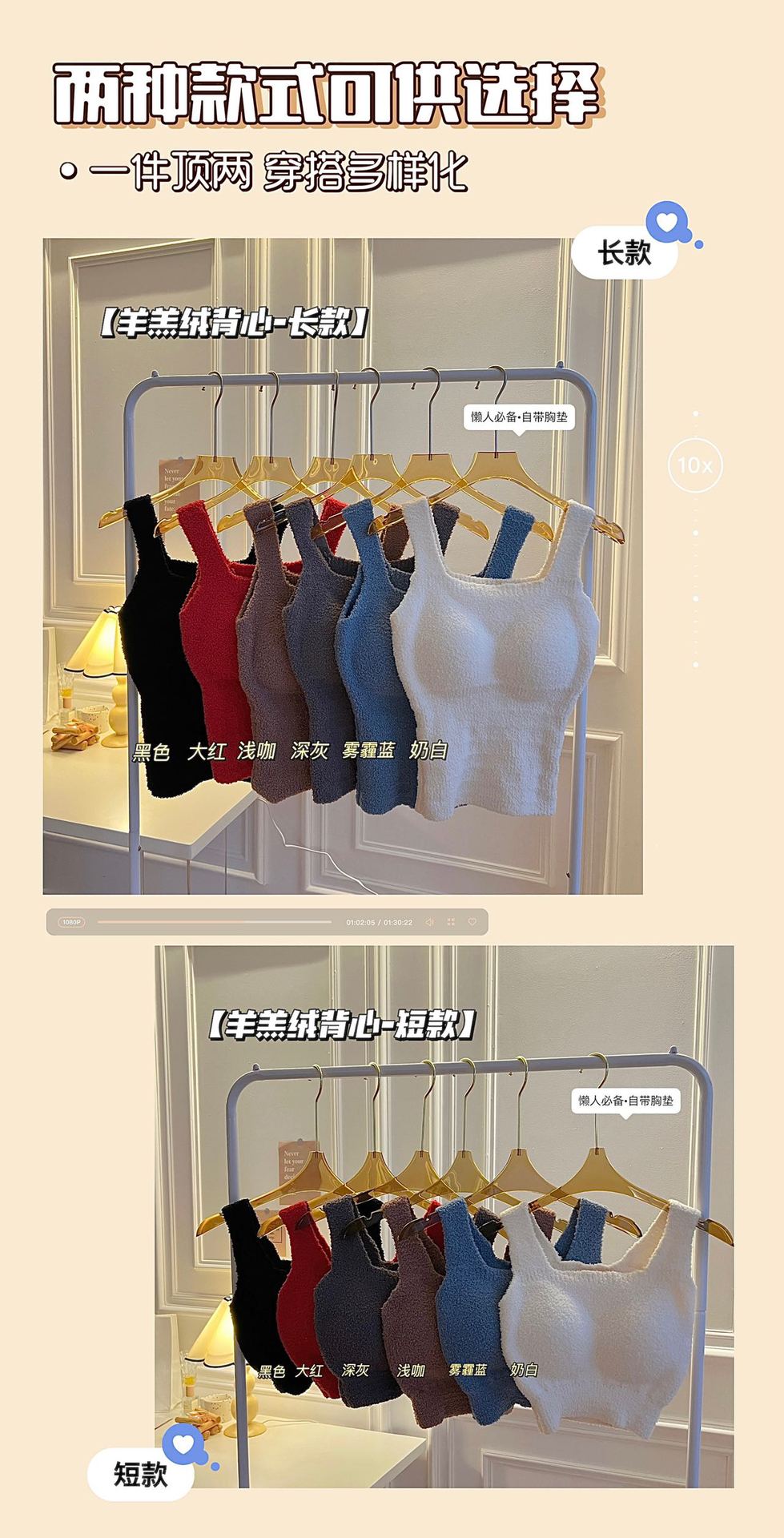 帶胸墊加絨吊帶背心羊羔絨毛絨保暖打底衫秋冬免穿文胸一體式內搭