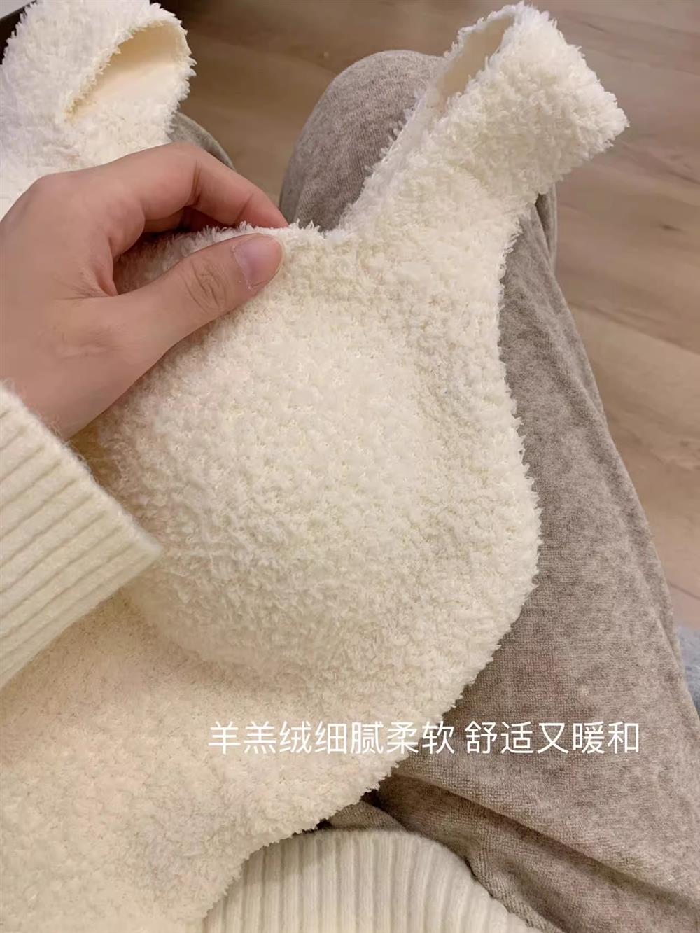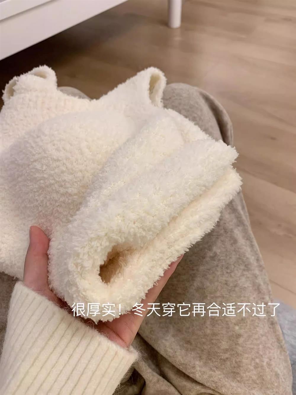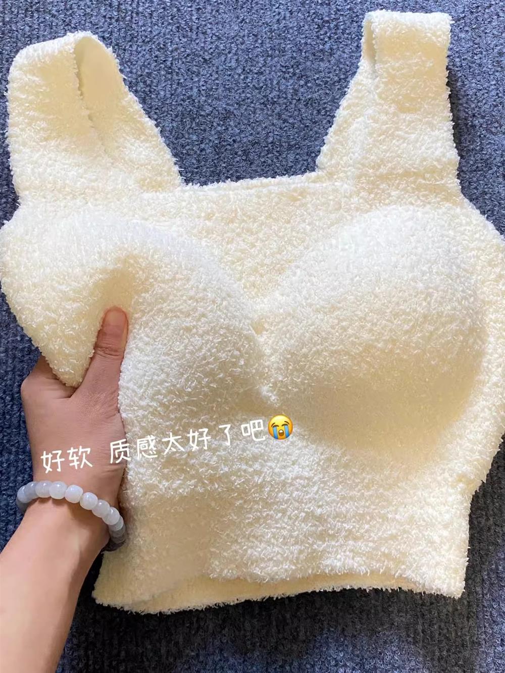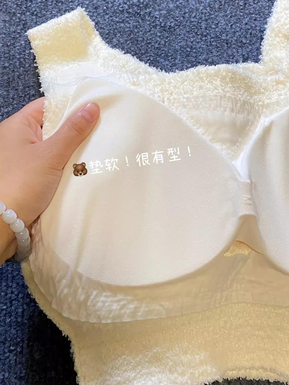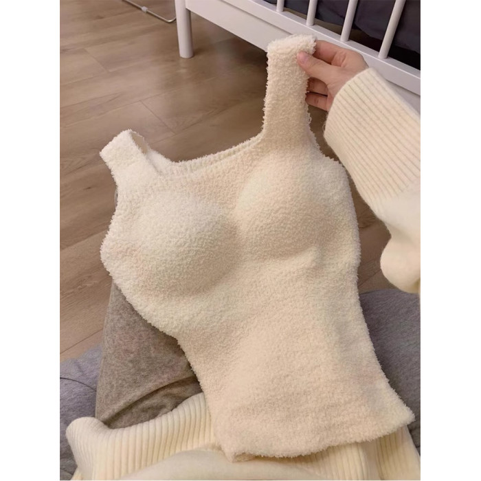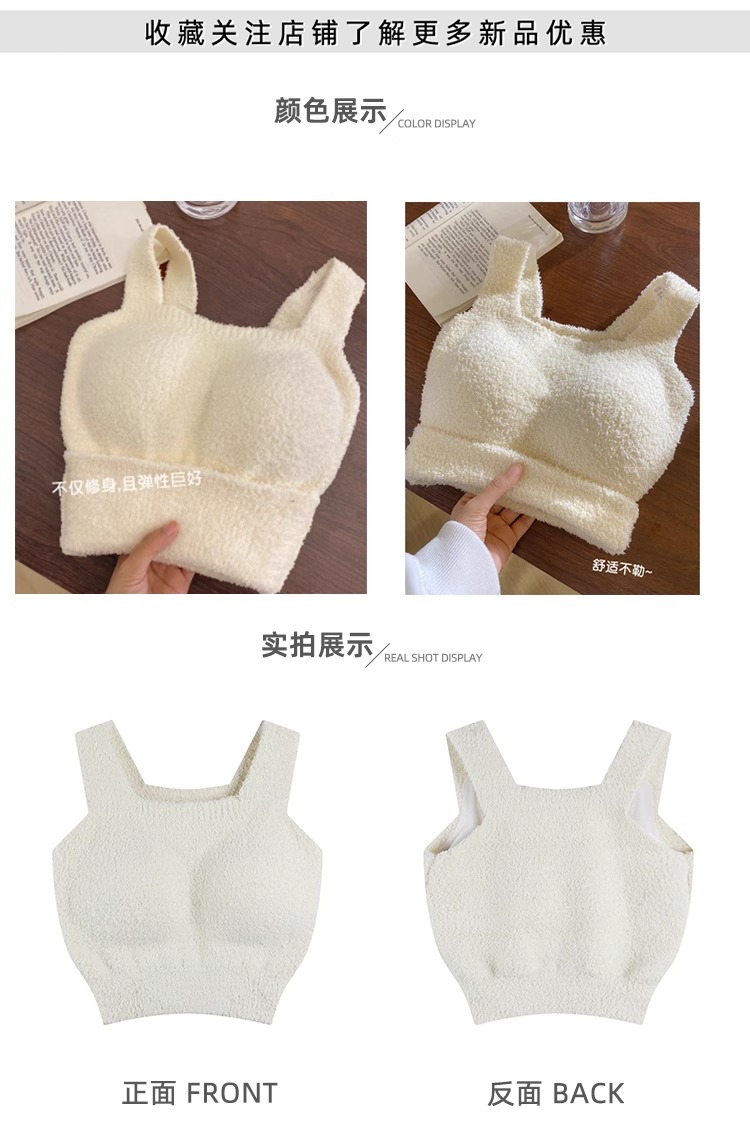 帶胸墊毛絨保暖背心秋冬免穿文胸加絨羊羔絨打底衫一體式內搭上衣
