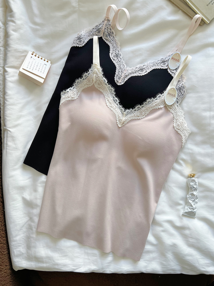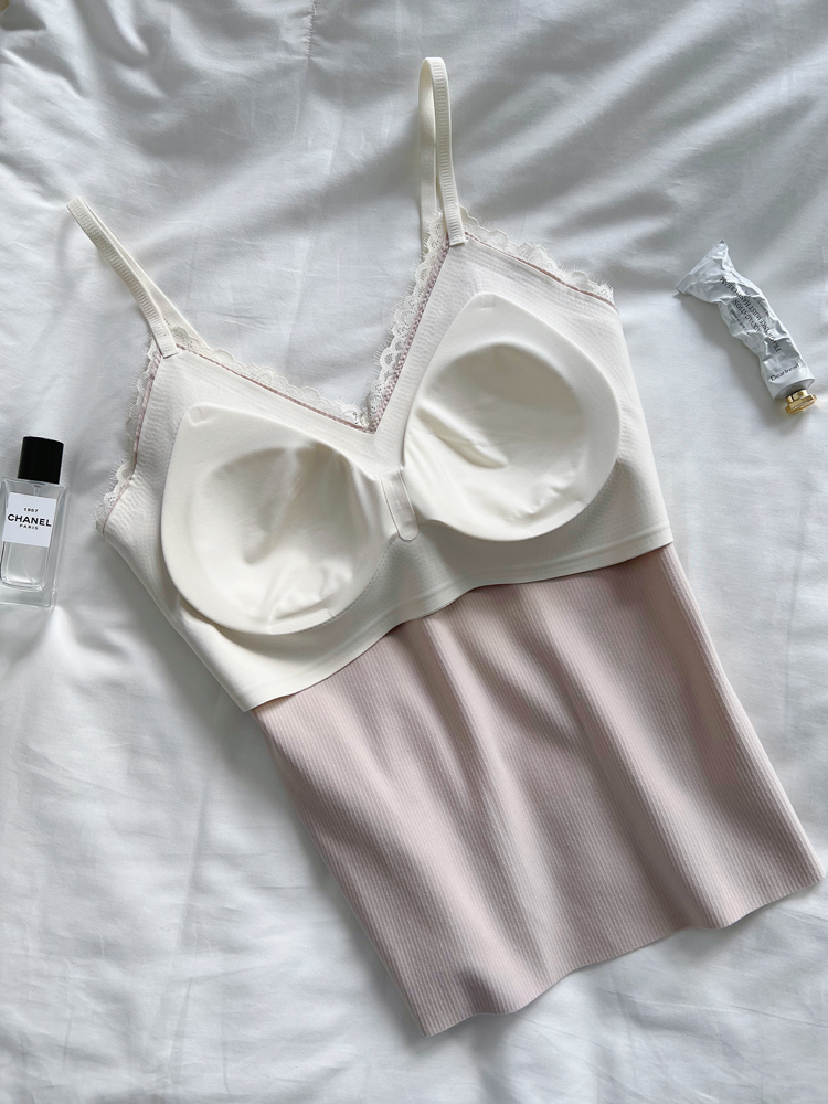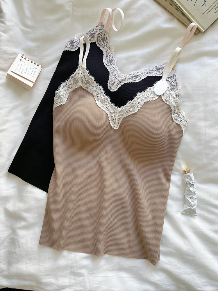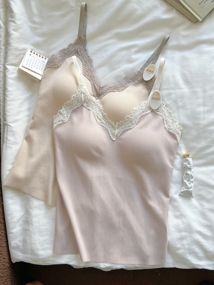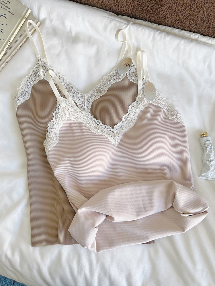 Kbra秋冬磨毛保暖蕾絲深V吊帶背心女帶胸墊聚攏內搭外穿打底上衣